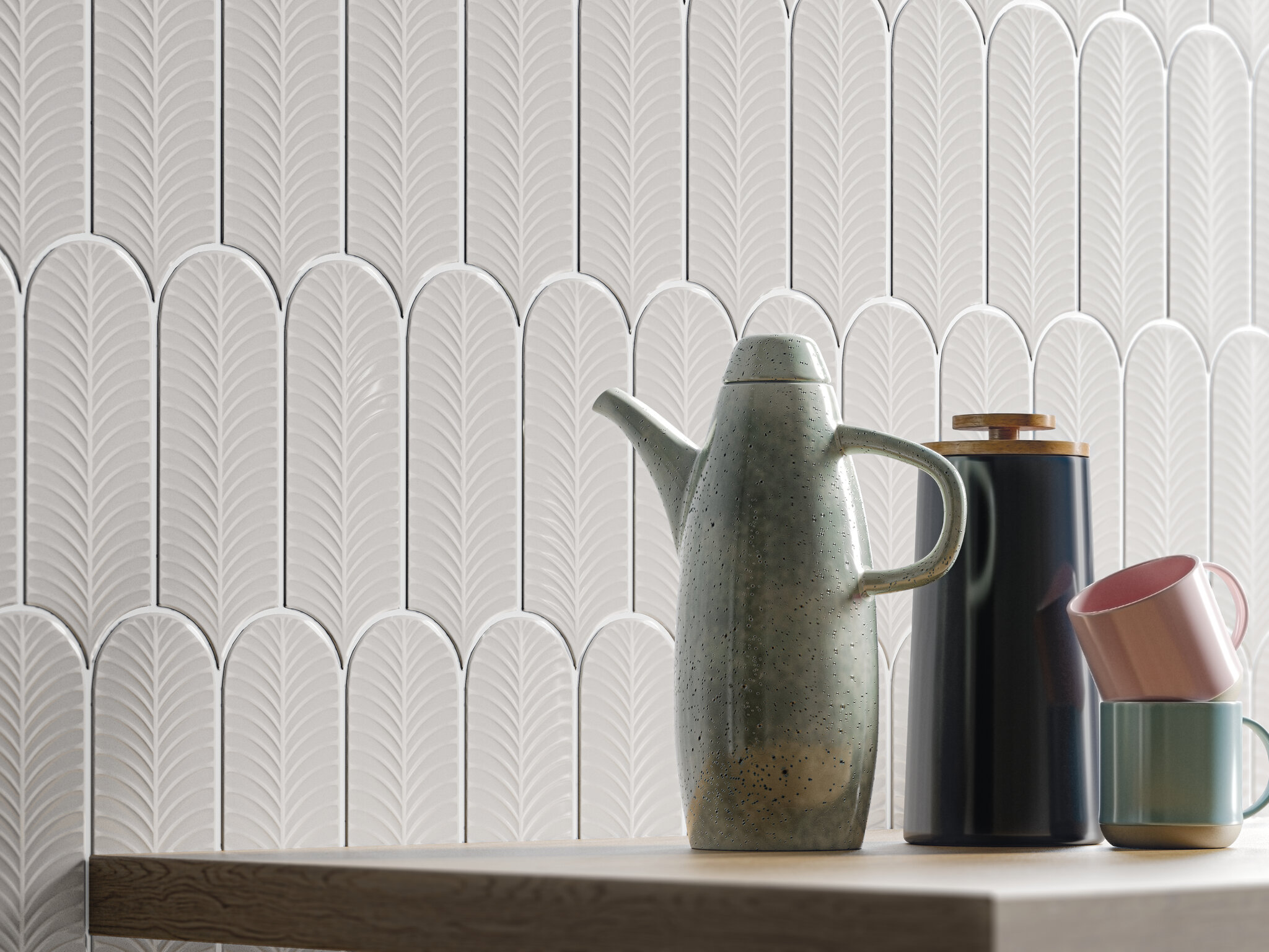 Alma se metamorfosea en elementos propios de la naturaleza, casi como si de las hojas del árbol o si de las plumas del pájaro se tratase. Su formato alargado, terminado en punta por un extremo y redondeado por el otro, así como los relieves que recorren la pieza, son muestra de ello. Una innovadora colección de revestimiento destinada a proyectos con identidad propia y diseñada para destacar con su acabado brillo y sus cinco tonalidades.