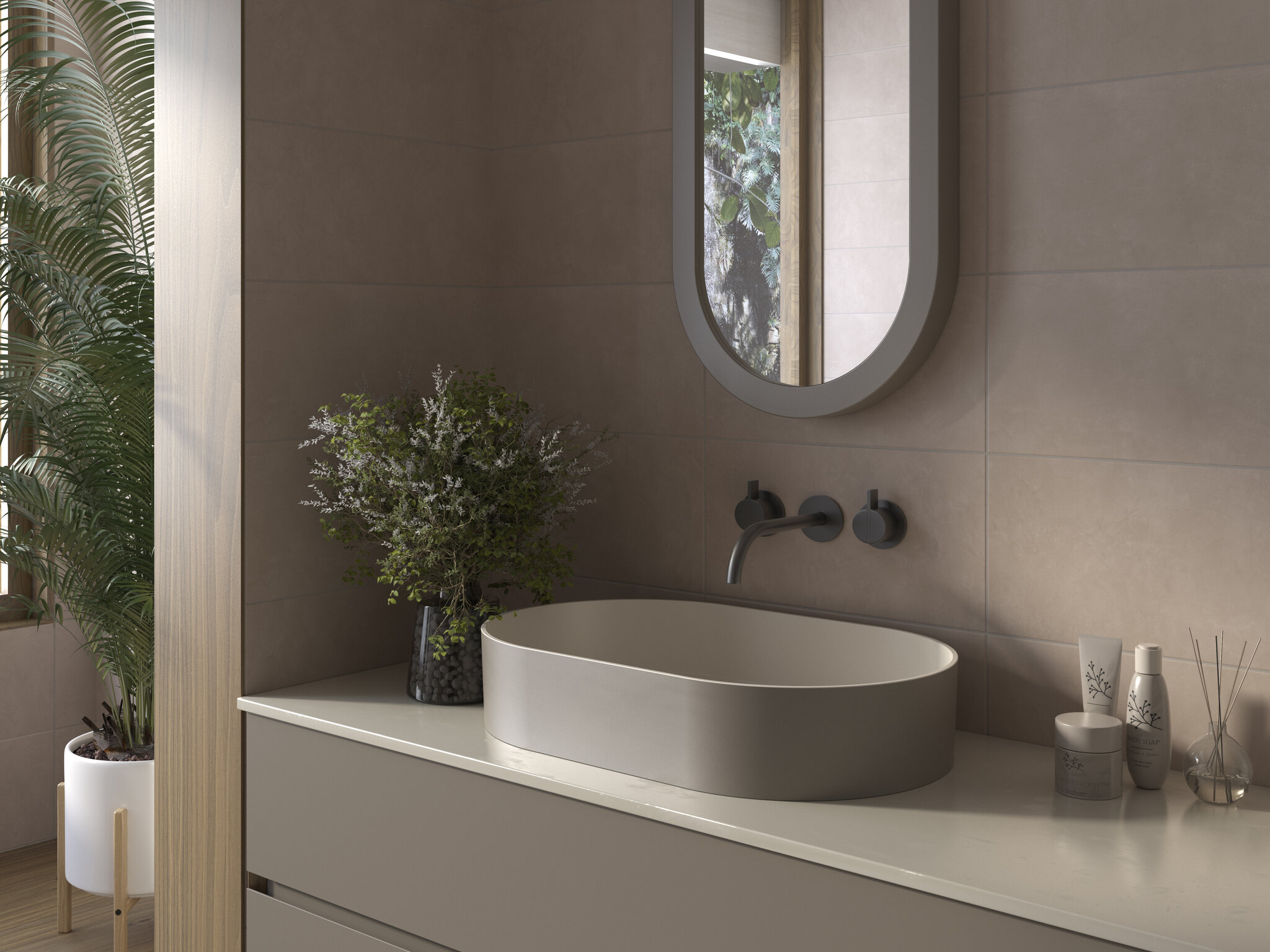 Sutileza cromática refinada, para interiores y exteriores de estilo contemporáneo.