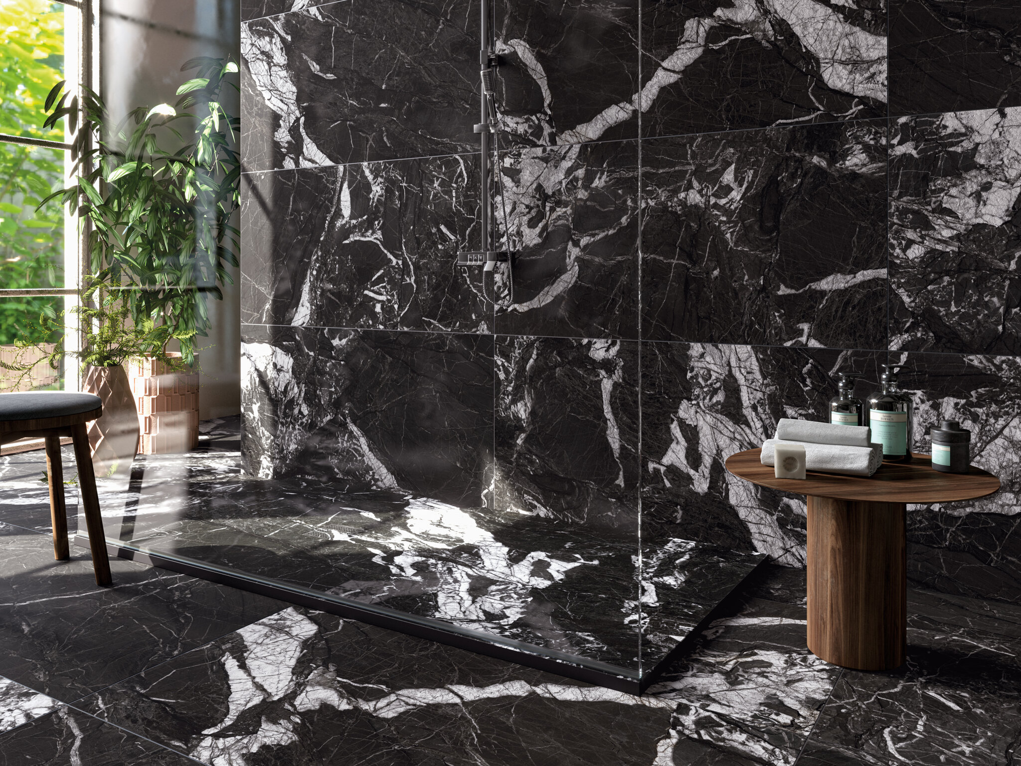 Arvora parte de la tecnología Artech, que permite alcanzar un mayor nivel de detalle y realismo en los acabados superficiales gracias al relieve de sus piezas. El trazo de las vetas y la intensidad del color están cuidadosamente estudiados para emular, con todo lujo de detalle, las texturas del mármol negro. Esta serie de baldosas porcelánicas cuenta con acabado rectificado. Además, está disponible en dos acabados, pulido con un ligero brillo y mate, para adaptarse a las preferencias de cada proyecto.