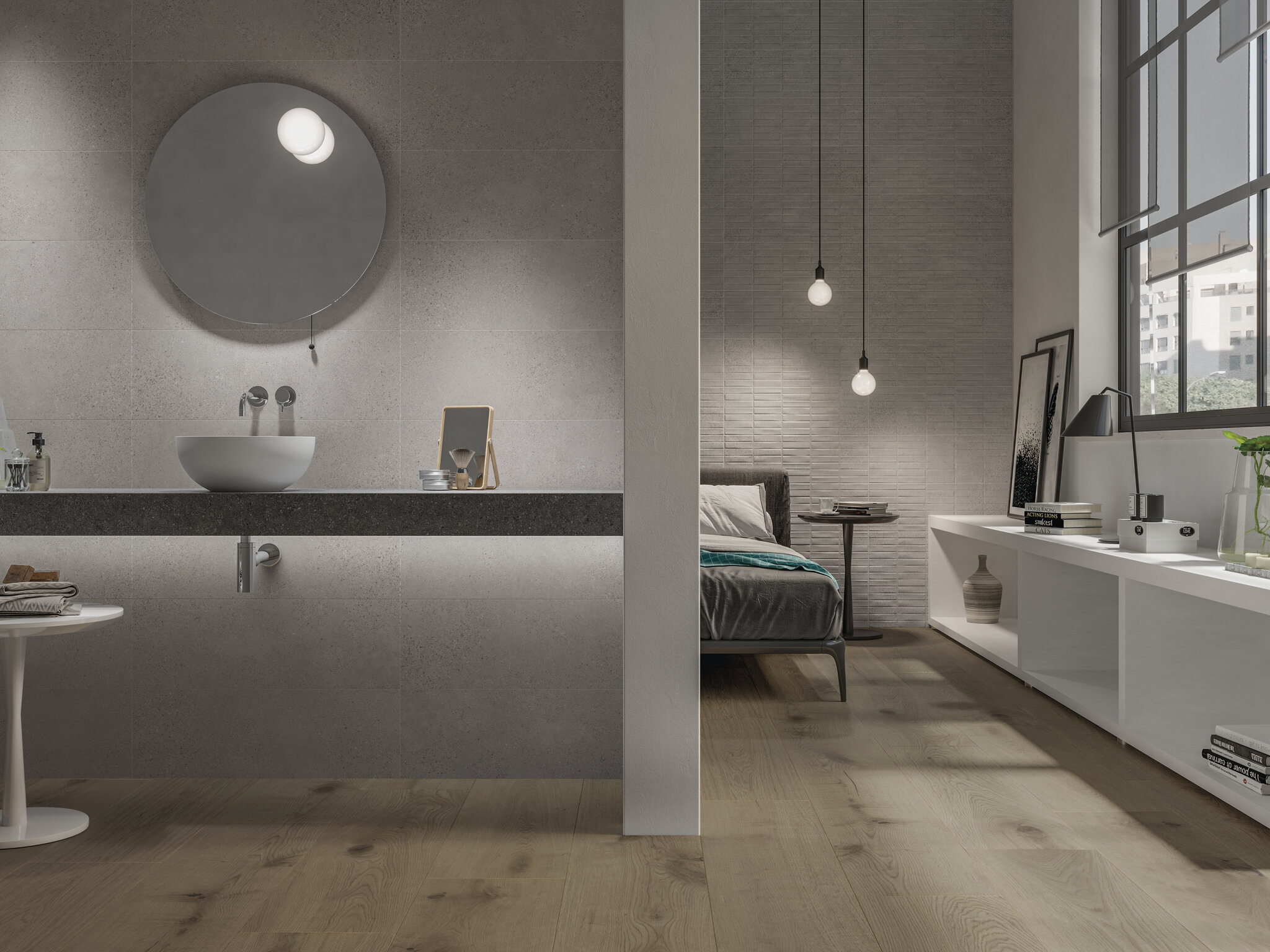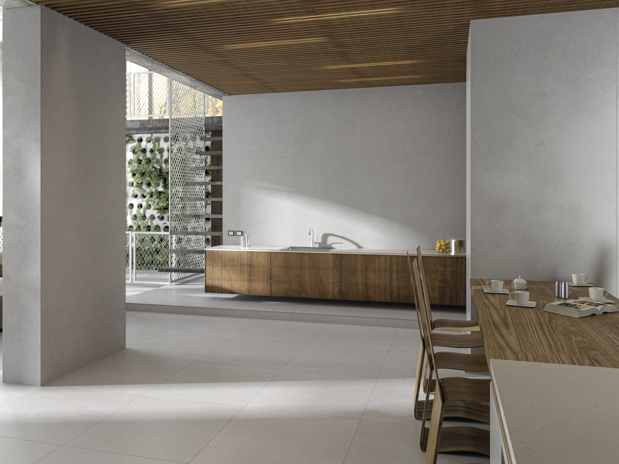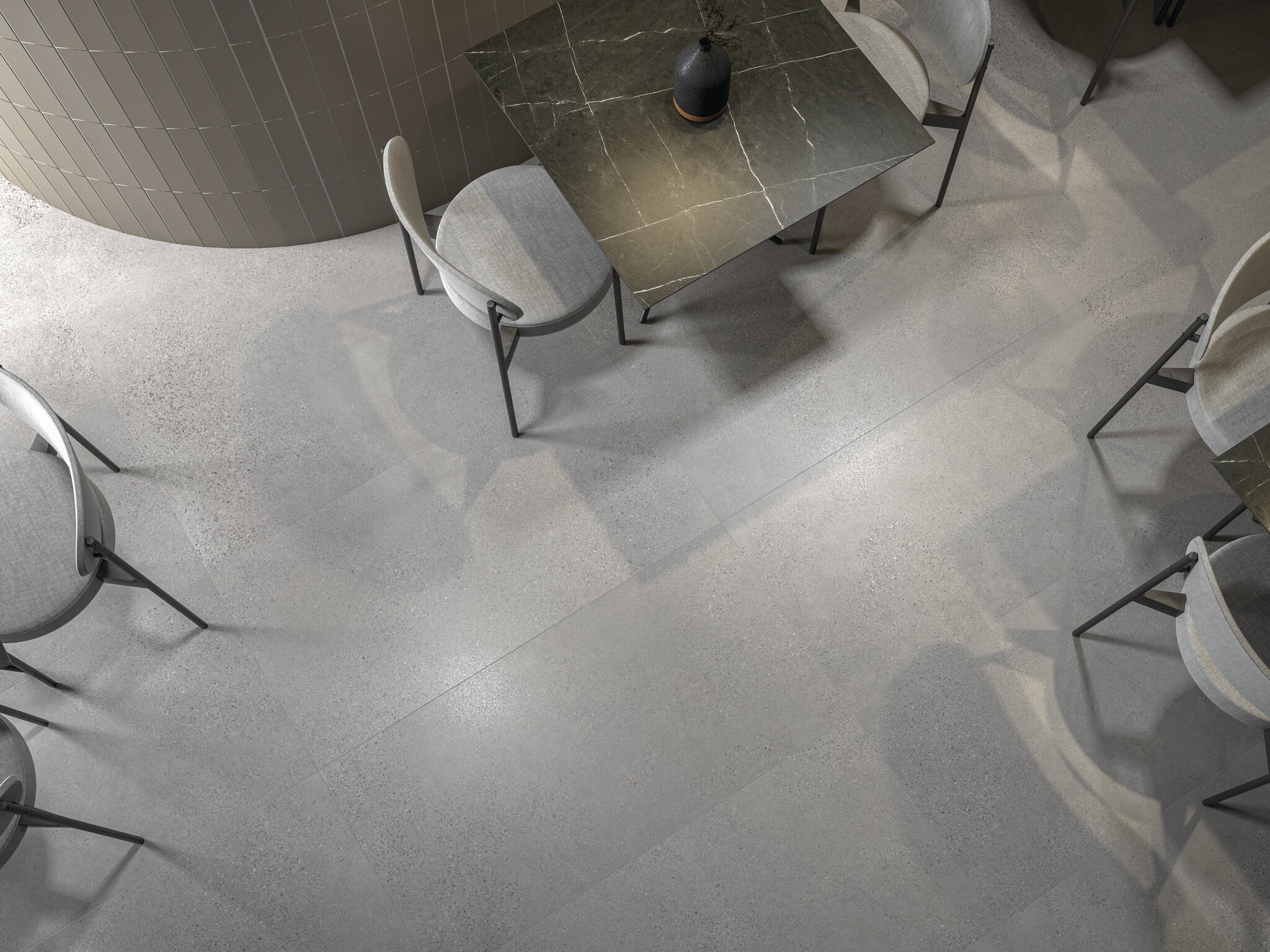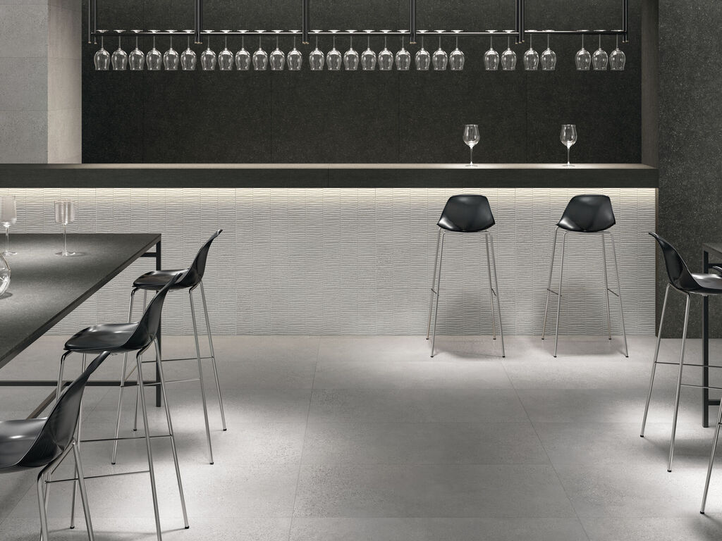 En Contract encontramos piezas cerámicas de gran formato con aspecto de cemento impregnado por los signos del envejecimiento. El resultado son superficies con texturas finas e irregulares que sugieren movimientos gráficos fácilmente combinables con cualquier elección de diseño interior. En esta colección, las pastas coloreadas para cerámica dan lugar a tres tonalidades distintas y una variedad de acabados que hace de esta serie uno de los productos más versátiles en el campo de la arquitectura. En especial, su acabado lappato con un aspecto semi brillo y de tacto sedoso. Una apuesta segura tanto en espacios interiores como exteriores.