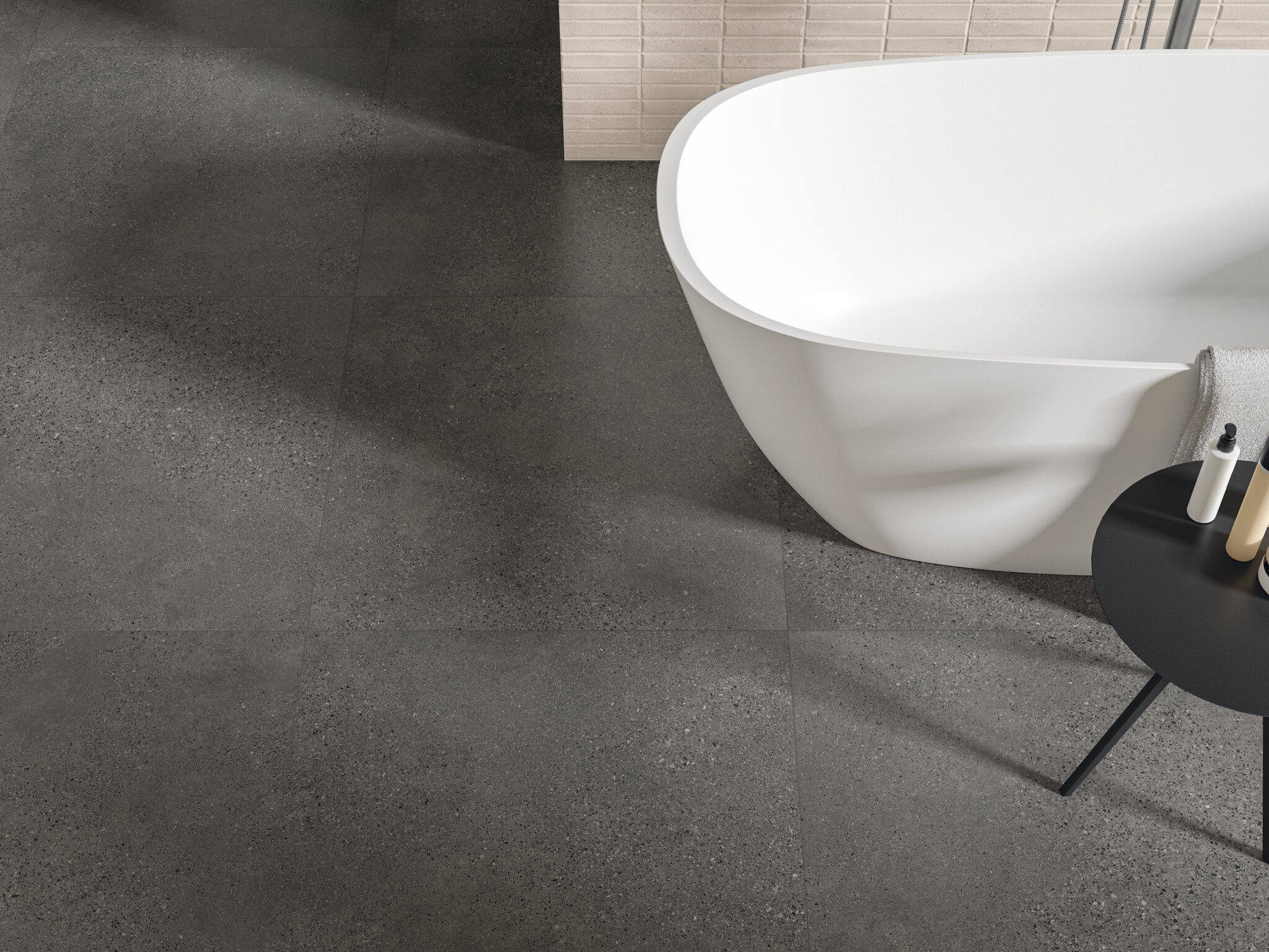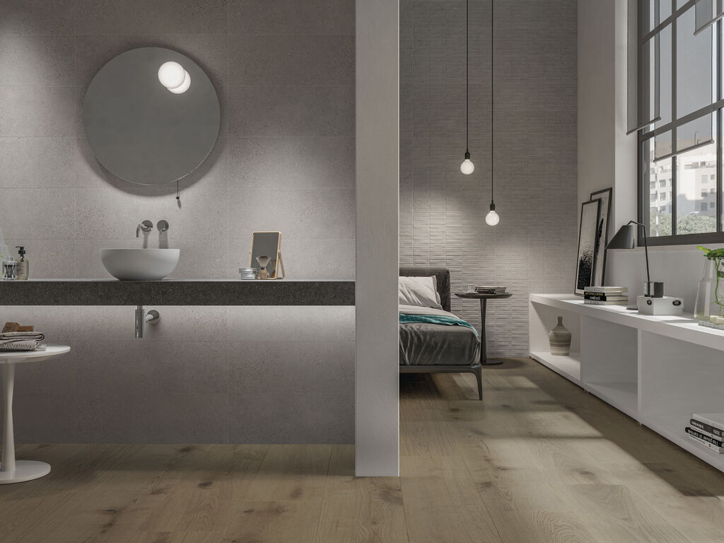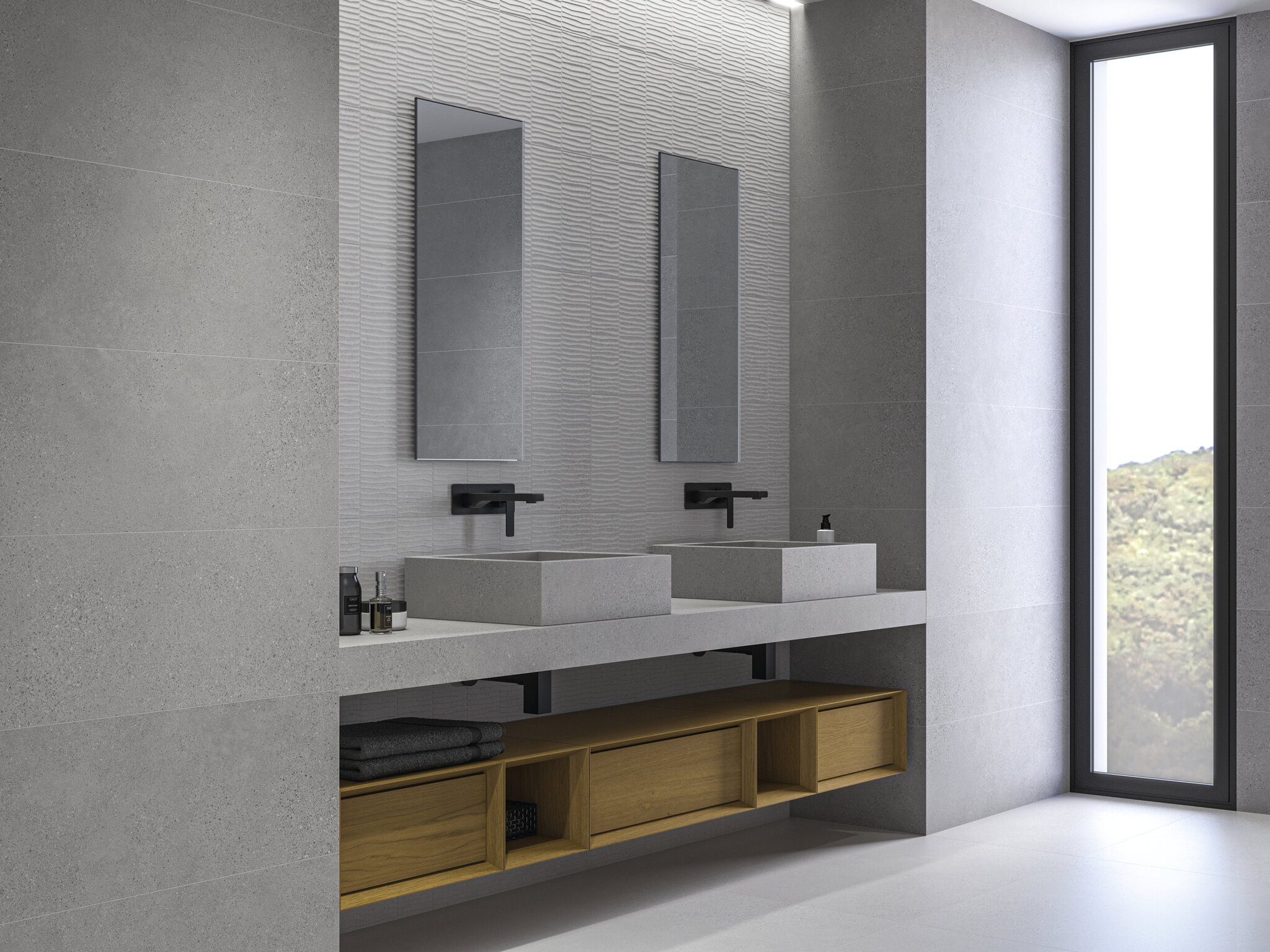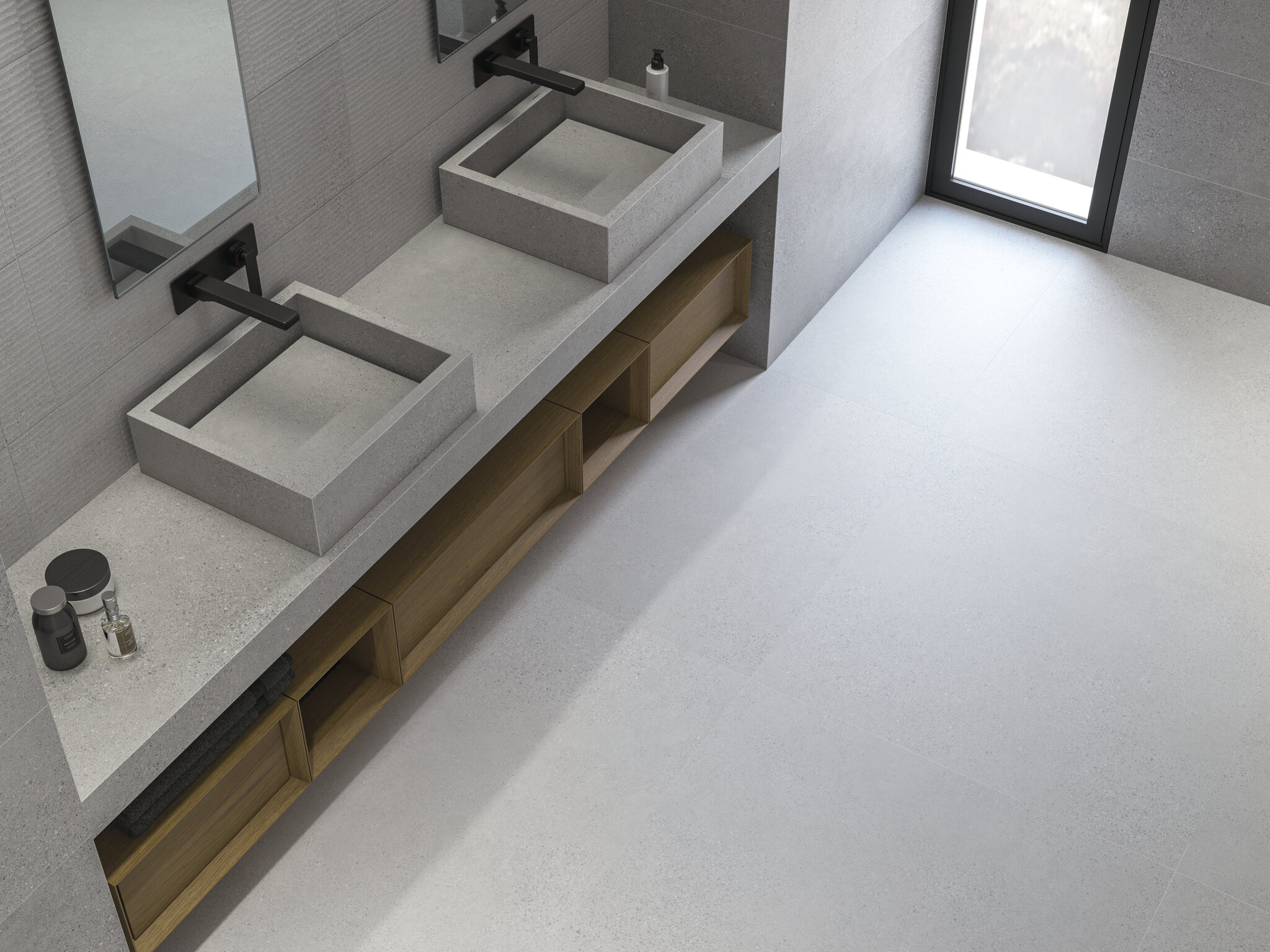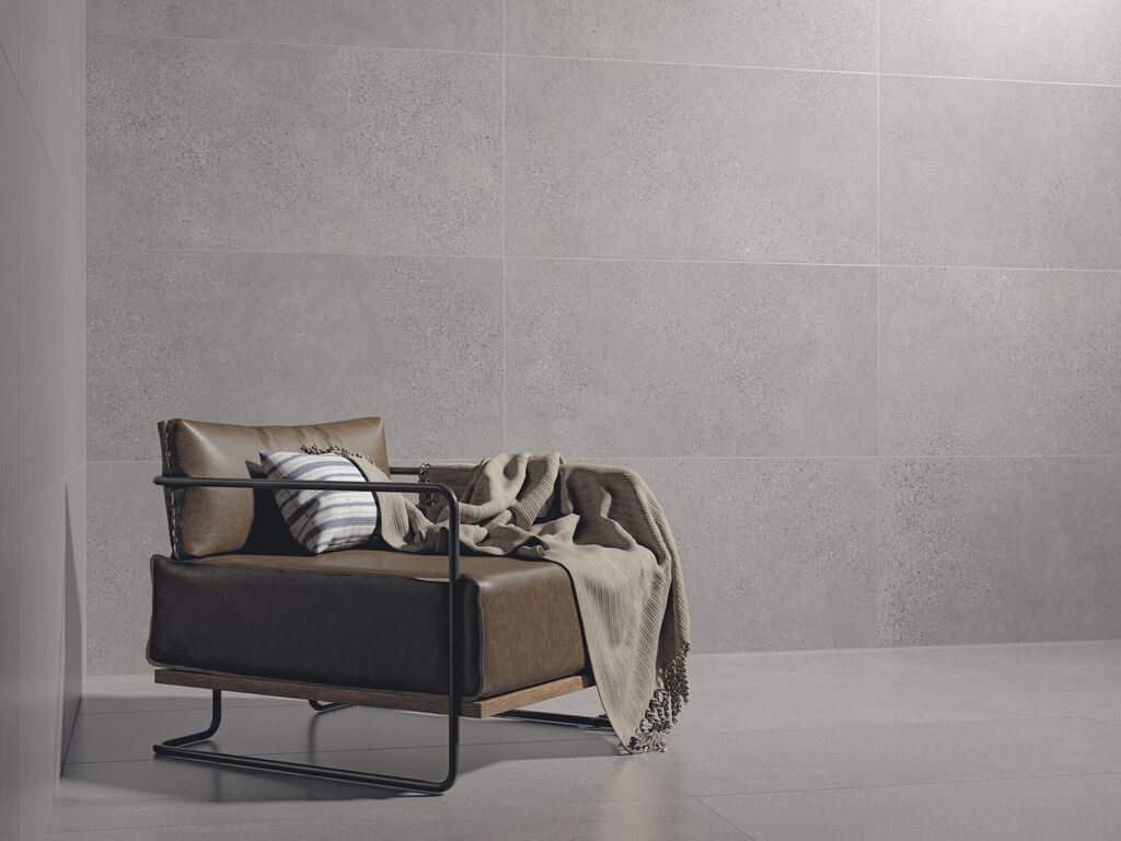 En Contract encontramos piezas cerámicas de gran formato con aspecto de cemento impregnado por los signos del envejecimiento. El resultado son superficies con texturas finas e irregulares que sugieren movimientos gráficos fácilmente combinables con cualquier elección de diseño interior. En esta colección, las pastas coloreadas para cerámica dan lugar a tres tonalidades distintas y una variedad de acabados que hace de esta serie uno de los productos más versátiles en el campo de la arquitectura. En especial, su acabado lappato con un aspecto semi brillo y de tacto sedoso. Una apuesta segura tanto en espacios interiores como exteriores.
