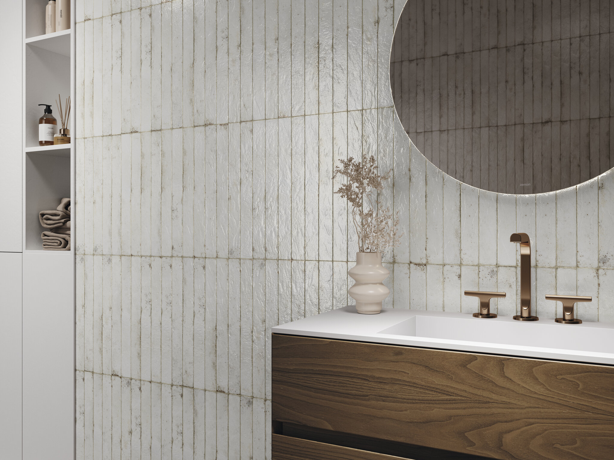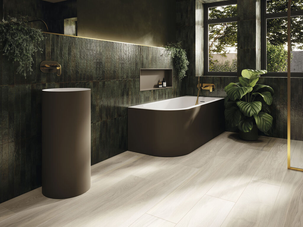 Genesi, parte de la colección Brick&More, es una serie de azulejos de pasta blanca diseñada para aquellos que buscan un acabado brillante y con textura en sus espacios. Genesi ofrece una variedad de colores que permiten adaptarse a diversas necesidades y estilos de diseño con un formato de 4.8x45 cm. Esta colección se destaca por su relieve irregular, que añade profundidad y carácter a las superficies, así como por su acabado brillante que realza la luminosidad de cualquier entorno. Está disponible en ocho colores: Ivory, Sand, White, Pink, Blue, Green, Pearl y Anthracite.