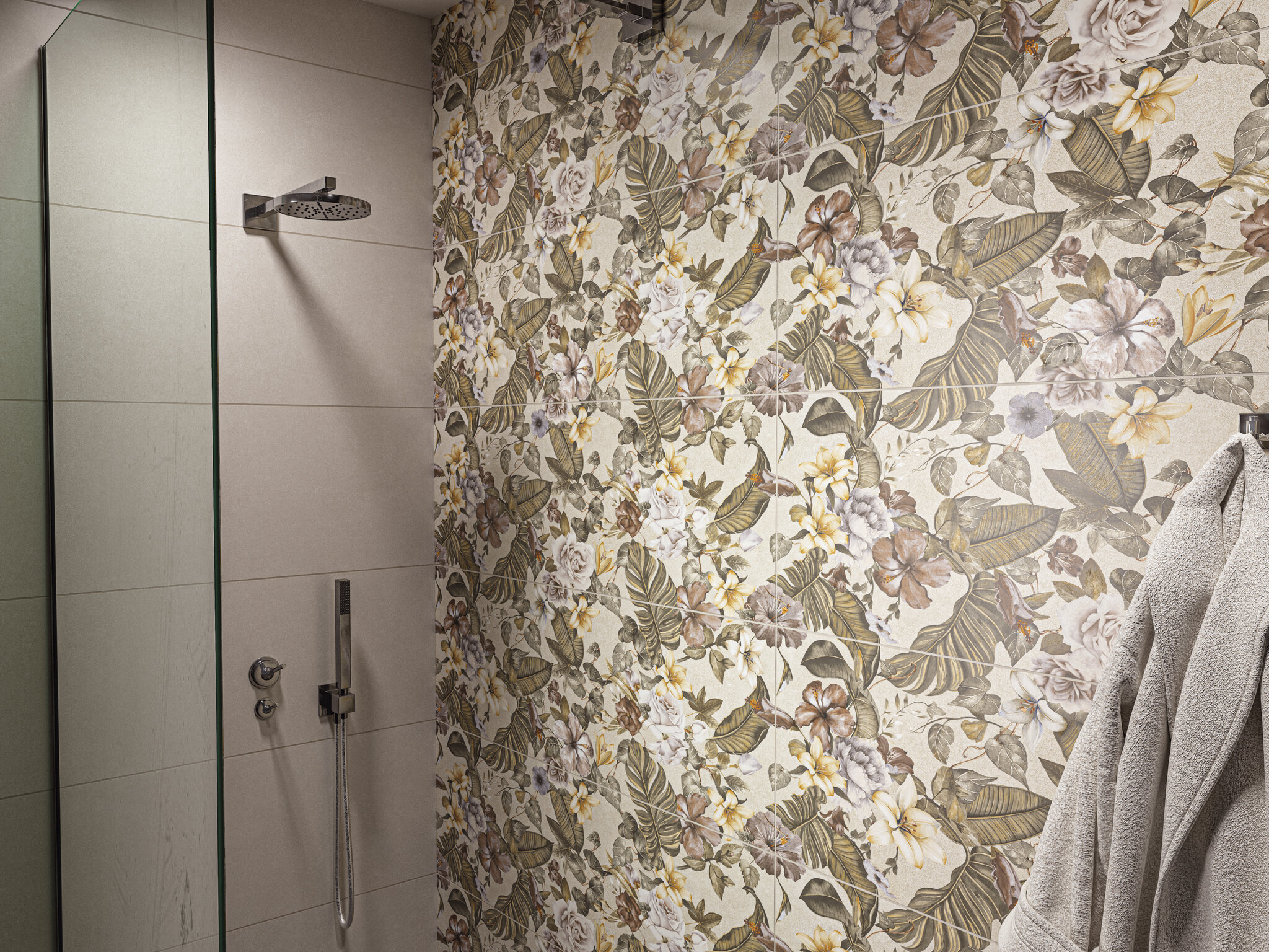 La estética de cemento de nuestra colección Gravity es perfecta para aportar un toque viajero y cosmopolita a tus estancias. Con un guiño capaz de transportarte hasta el terrazo más tradicional de nuestro Mediterráneo, sus opciones decorativas serán las grandes protagonistas de tus baños o habitaciones, aunando autenticidad y tradición con la resistencia de nuestros revestimientos porcelánicos. Nuestros porcelánicos florales y silvestres te harán viajar hasta los rincones más románticos o exóticos que puedas imaginar.