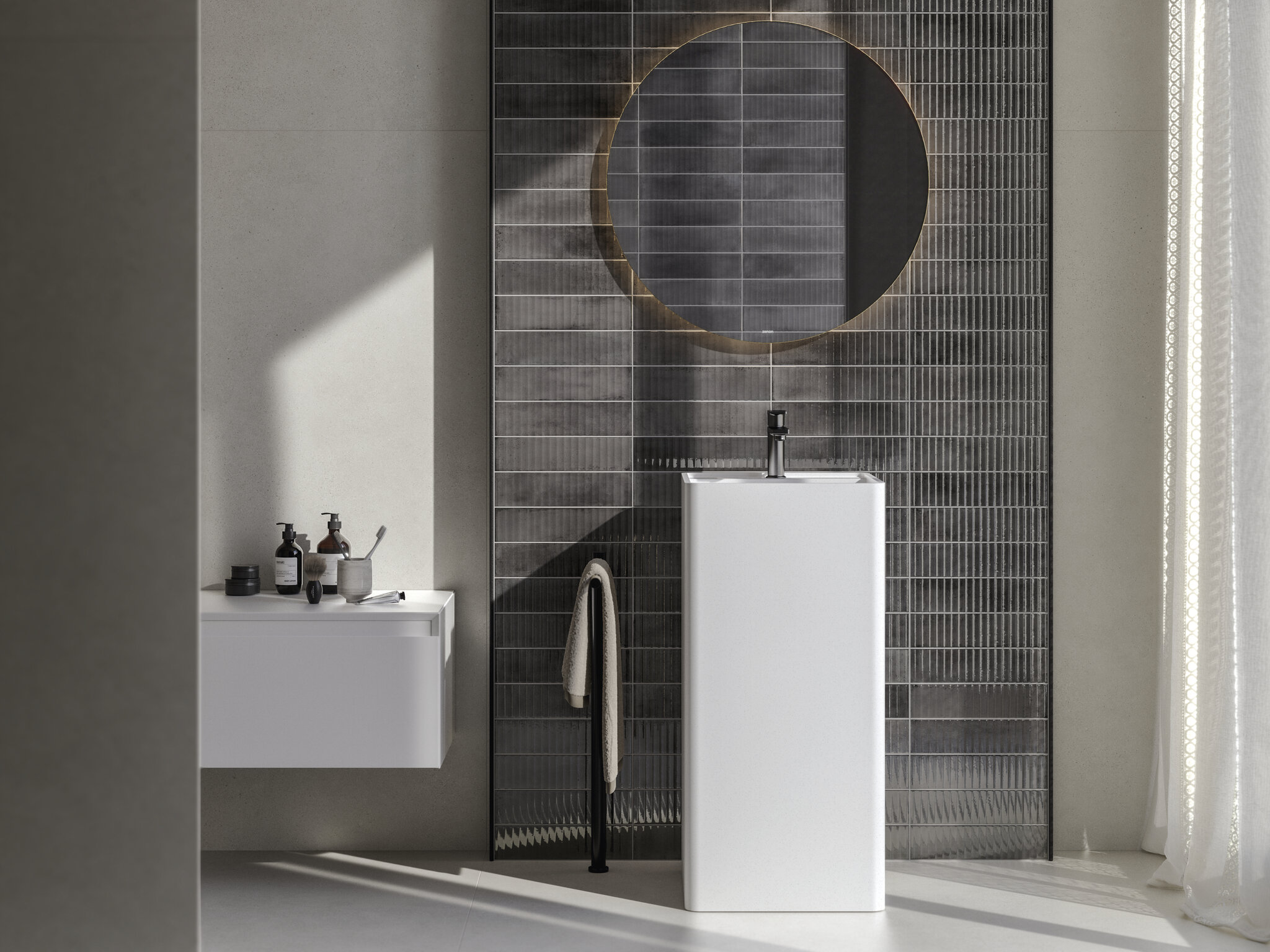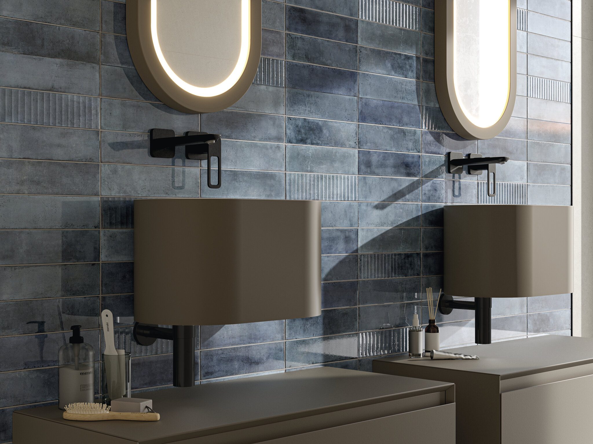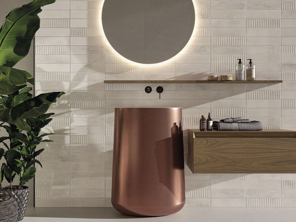 Mussa mira al futuro y al pasado para recoger lo mejor de ambos. Los pequeños azulejos de esta colección cuentan con un relieve compuesto por líneas rectas que rompen con la homogeneidad y añaden un plus decorativo. Esta serie de baldosas pequeñas en acabado brillo está disponible en un único formato de 7,5x30 y en 6 colores diferentes para favorecer la personalización según los gustos: Ivory, White, Pearl, Anthra, Blue y Green.