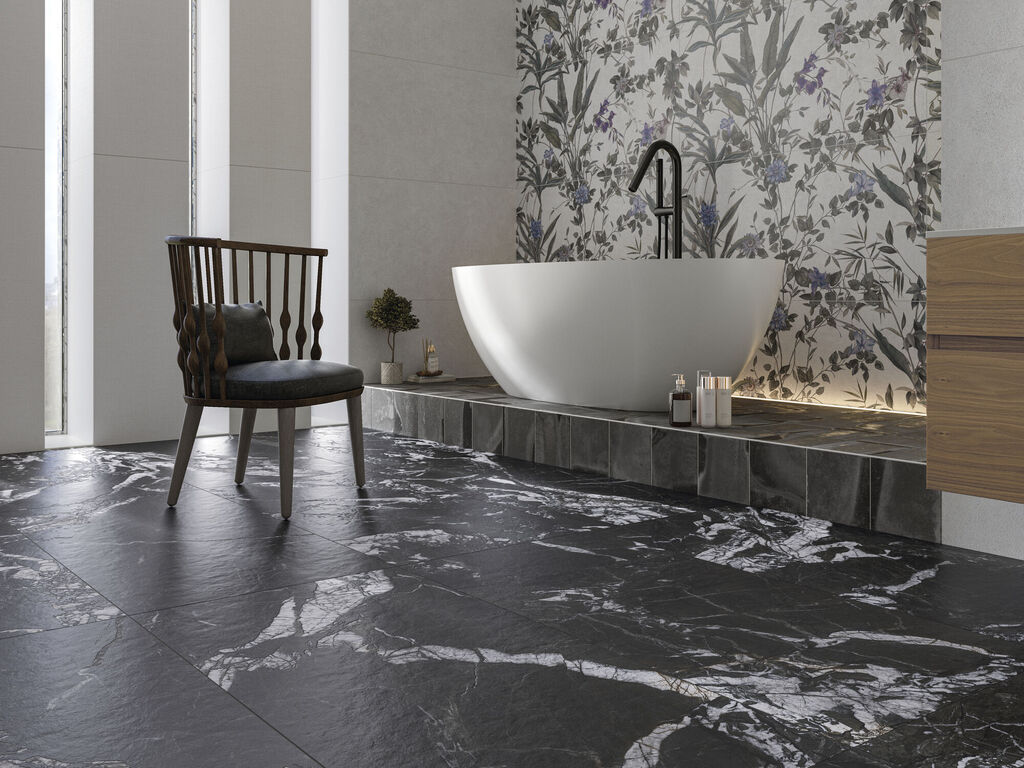 Arvora parte de la tecnología Artech, que permite alcanzar un mayor nivel de detalle y realismo en los acabados superficiales gracias al relieve de sus piezas. El trazo de las vetas y la intensidad del color están cuidadosamente estudiados para emular, con todo lujo de detalle, las texturas del mármol negro. Esta serie de baldosas porcelánicas cuenta con acabado rectificado. Además, está disponible en dos acabados, pulido con un ligero brillo y mate, para adaptarse a las preferencias de cada proyecto.