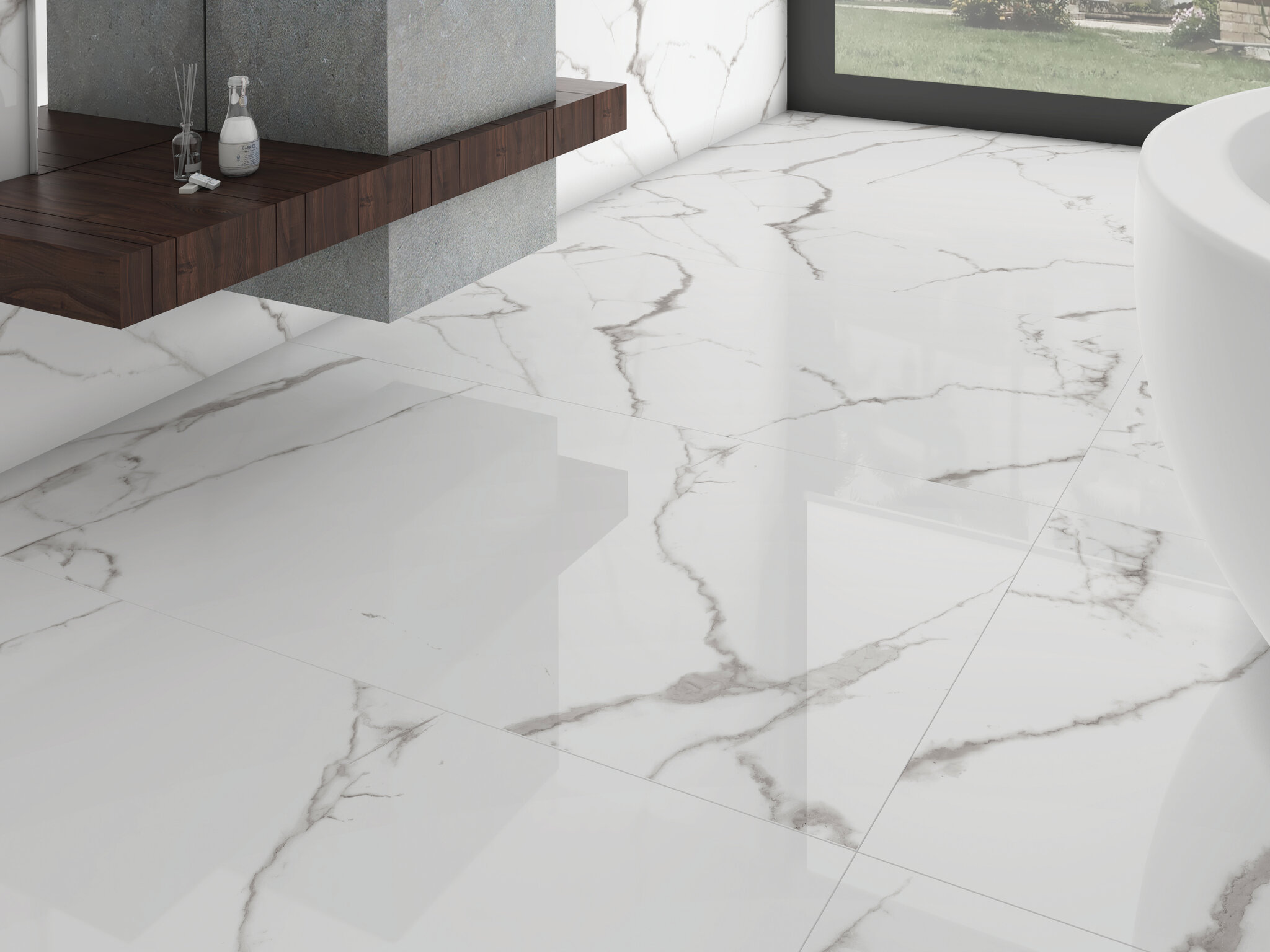 El mármol más apreciado por su blancura es el de Carrara. Esta colección toma lo mejor de su naturaleza, casi sin vetas y con matices en tonos grisáceos, y añade el componente tecnológico. La cerámica con aspecto de mármol gana en variedad gráfica y de degradados, de manera que otorga todo el protagonismo a la veta y a su posición. Estos azulejos de imitación mármol se presentan en tres formatos y dos acabados, pulido y brillo, para dar forma y sofisticación a todo tipo de espacios, desde el más reducido hasta el más amplio.
