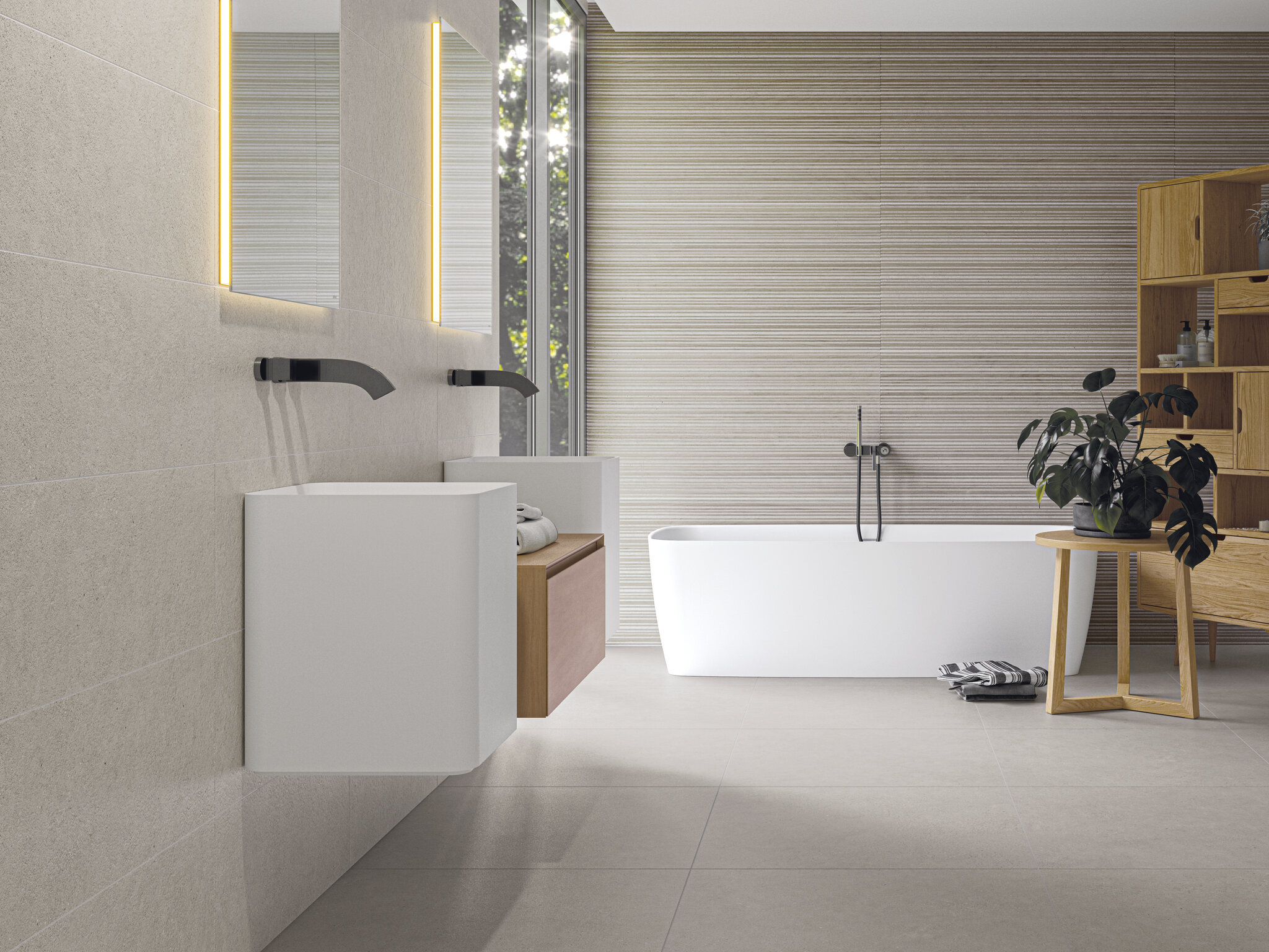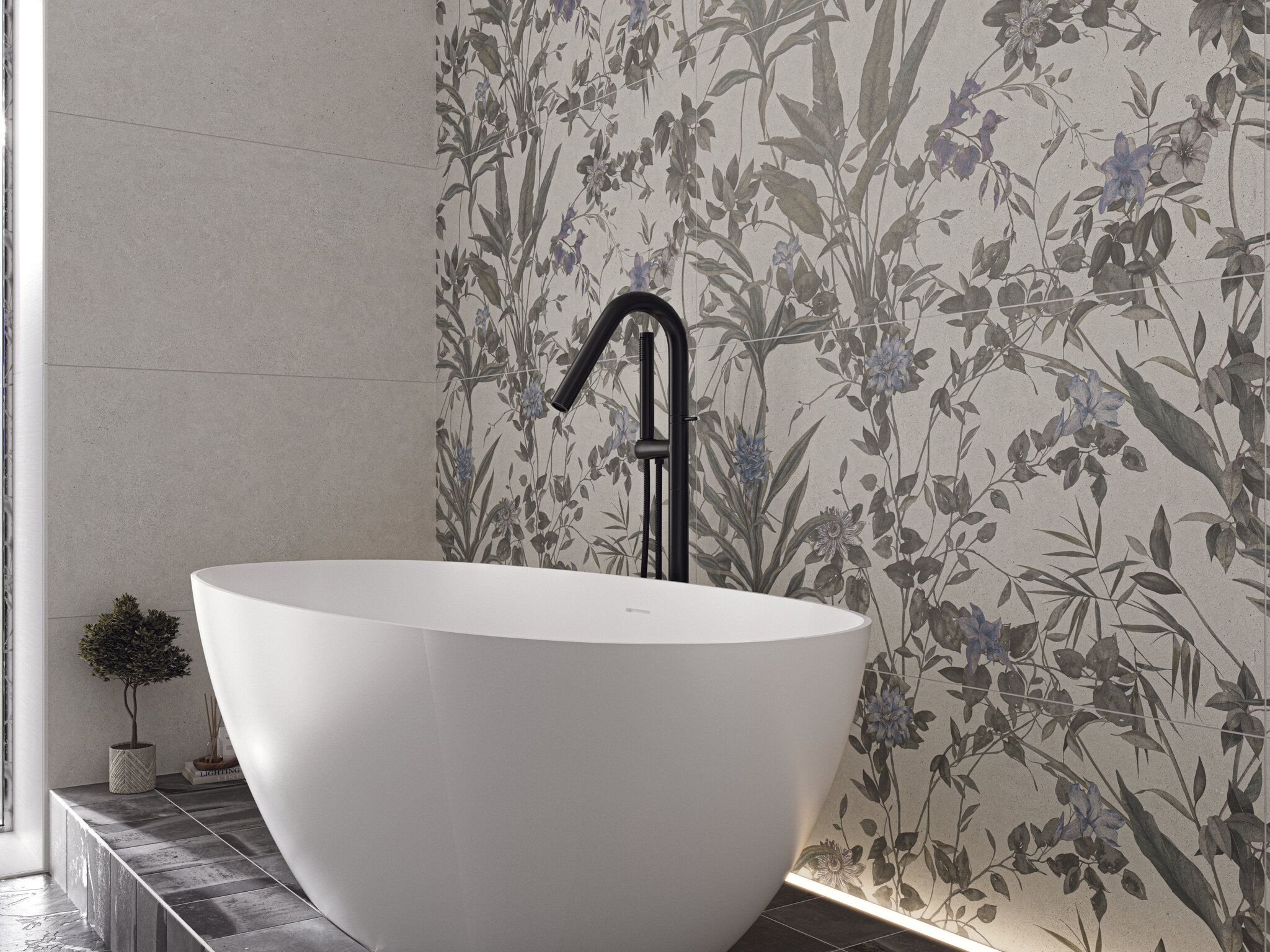 La serie Borneo abre la puerta a azulejos diseño cemento altamente personalizables. Existen tres colores disponibles, Blanco, Perla y Arena, con variaciones que aportan relieve (en sus versiones Esir o Arrow) para potenciar el carácter decorativo de las piezas. Con las versiones Malone o Peek, la más colorida, puede optarse por un diseño floral para combinar con la sobriedad del diseño cemento. Sus tonalidades neutras se combinan fácilmente en las paredes de cualquier tipo de estancia, así como en salpicaderos de cocina. Descubre el nuevo formato 160x160 cm.
