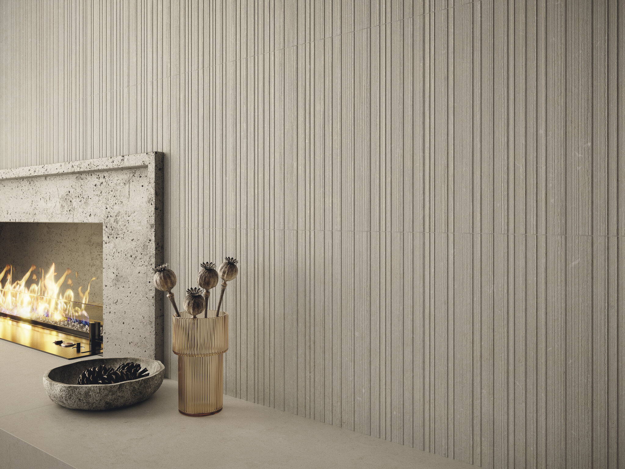 La calidez de la piedra natural da forma a Cronos, una serie de gres porcelánico diseñada especialmente para satisfacer las necesidades de grandes proyectos de arquitectura e interiorismo. Inspirada en la majestuosidad y la atemporalidad de la piedra, Cronos combina estética y funcionalidad para crear espacios que transmiten solidez y elegancia. Cronos pertenece a la colección de lámina cerámica XLife y está disponible en seis formatos, con piezas que alcanzan los 120x280cm o los 160x160 con 8mm de espesor, también está disponible en 60x120 14mm especial para proyectos y fachadas. Existen dos versiones de decorados porcelánicos para esta coleccion, una de ellas (Pompei) con un diseño más expresivo. En cuanto a las piezas de revestimiento, se puede optar también por un relieve en cualquiera de sus tres tonalidades: ivory, cream y pearl.