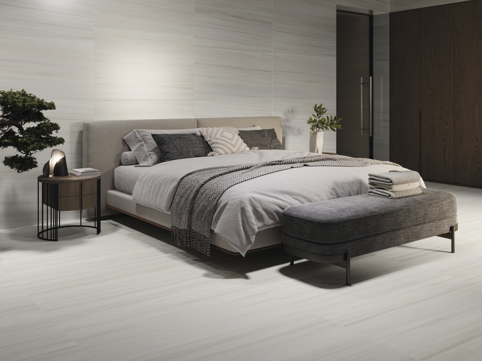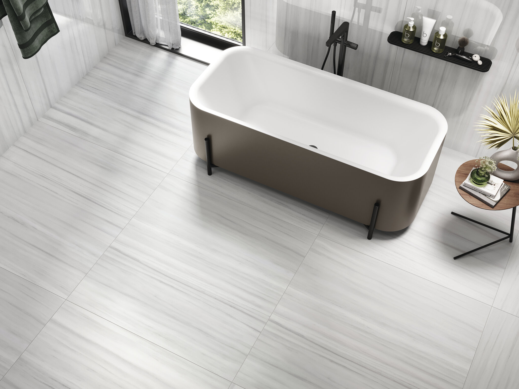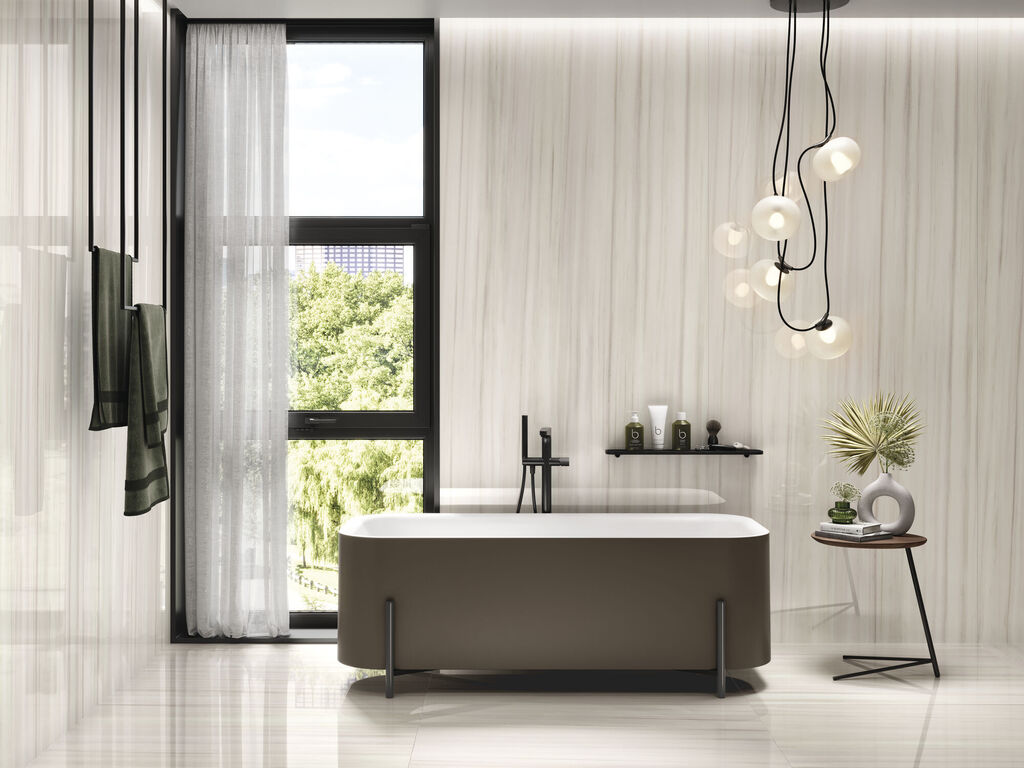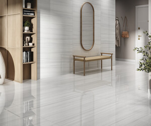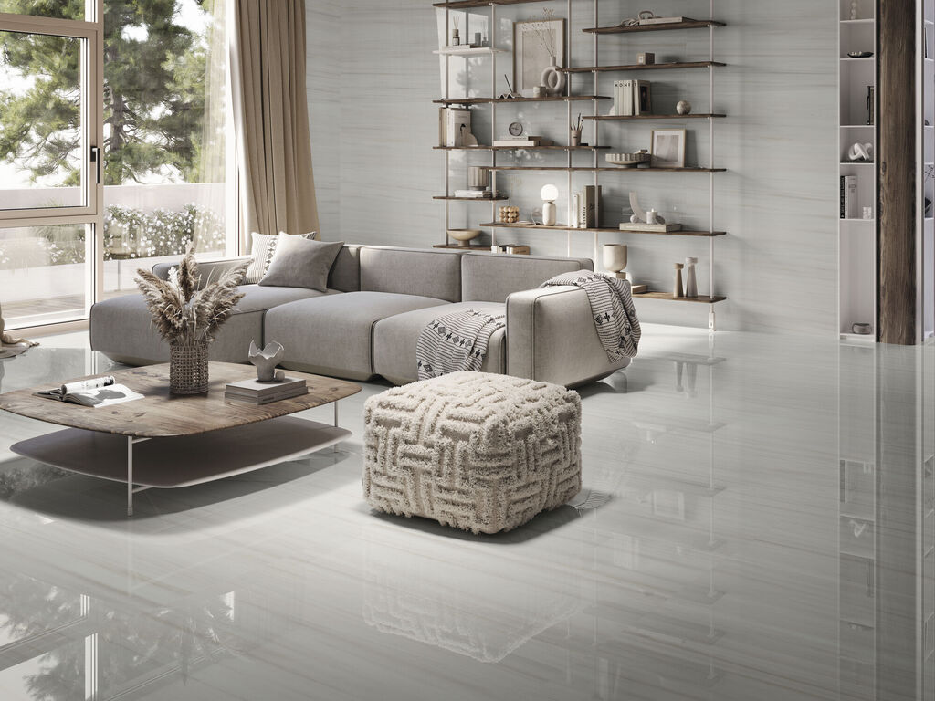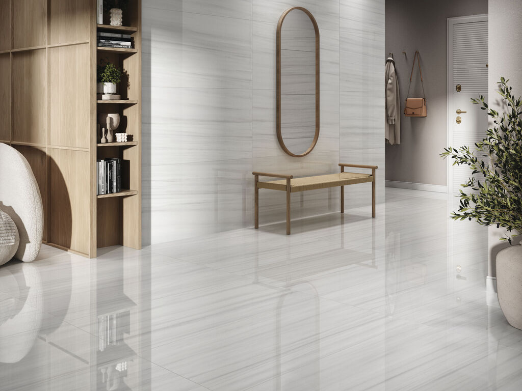Mármol reinterpretado con matices modernos, disponible en acabado mate o pulido.
