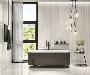 El suave diseño del mármol más elegante es el punto de partida de Dolomite, una serie de azulejos porcelánicos que forma parte de la colección de lámina cerámica de gran formato XLife de Cifre. Dolomite cuenta con dos tonalidades claras (marfil y blanco) y está disponible en 2 acabados: pulido para aprovechar la luminosidad de sus colores o mate para un resultado más natural. Está disponible en tres formatos de gres porcelánico rectificado con piezas que crecen hasta los 120x280 para potenciar la continuidad visual de los espacios.