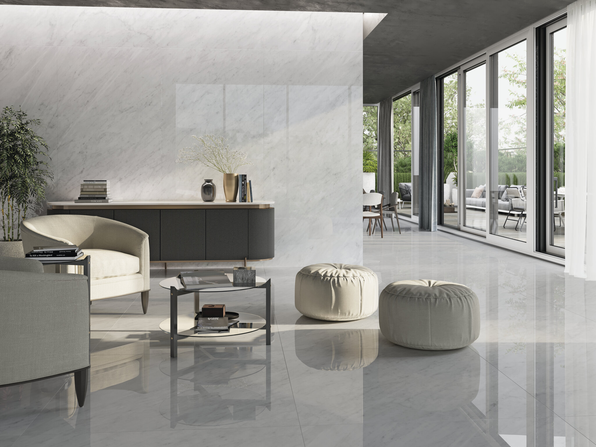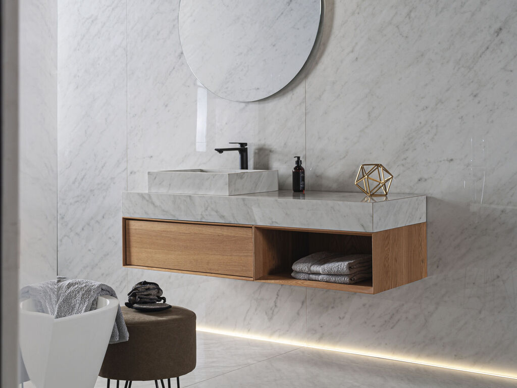 Galana es una reinterpretación de la tradición donde el brillo y lo clásico se unen para conseguir pavimentos y revestimientos de infinita elegancia y vigencia eterna. Las características de esta serie hacen que sea un material idóneo para todo tipo de espacios, desde un uso privado hasta un espacio contract, pasando por todo tipo de obra pública. Galana reinventa la cerámica de diseño a través de los grandes formatos de hasta 120x260. Disponible en formatos de menor tamaño para adaptarse a cualquier proyecto, la serie presenta acabados pulido, brillo, alto brillo y mate para conseguir distintos resultados.