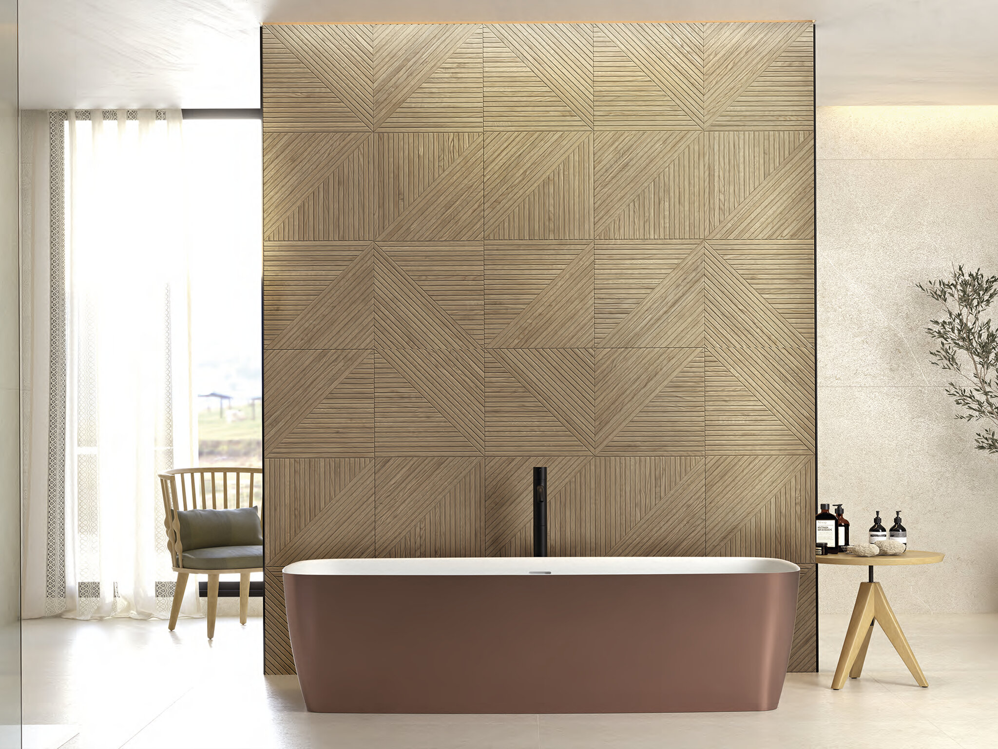 La serie de revestimientos Geometric de Cifre transforma los espacios con sus patrones geométricos contemporáneos y su suave textura de madera natural. Está disponible en un formato de 40x120 cm rectificado lo que asegura una instalación precisa y un acabado impecable. Los diseños de Geometric se presentan en cuatro colores en acabado mate: Almond, Maple, Oak, y White. La paleta de colores neutros recuerda a las maderas más apreciadas y permite combinaciones creativas así como una integración armoniosa con otros elementos decorativos.