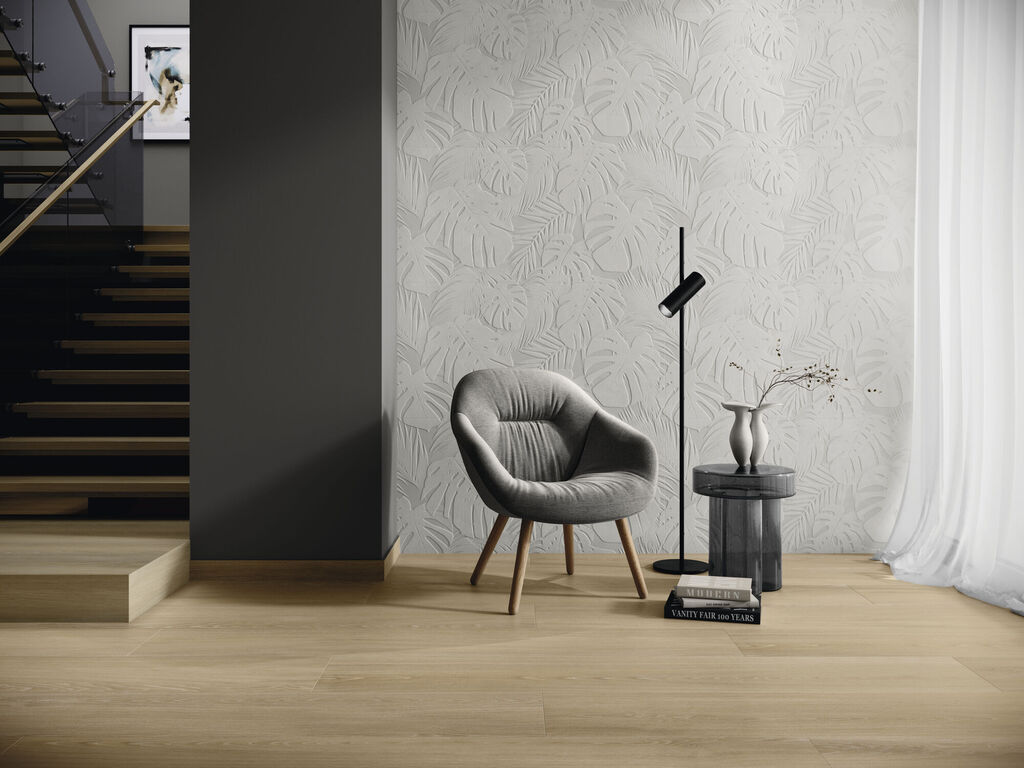 Kima destaca por su versatilidad y alto valor decorativo. Está disponible en tres tonalidades sutiles: Ivory, White y Pearl, colores neutros prácticos que se adaptan a cualquier estilo. En su variante Areca, incorpora relieves florales que potencian su valor decorativo y estimulan tanto al tacto como a la vista. Estos revestimientos se caracterizan por su acabado rectificado, lo que permite una instalación con juntas mínimas y proporciona una mayor sensación de continuidad en las paredes de tu hogar o proyecto.
