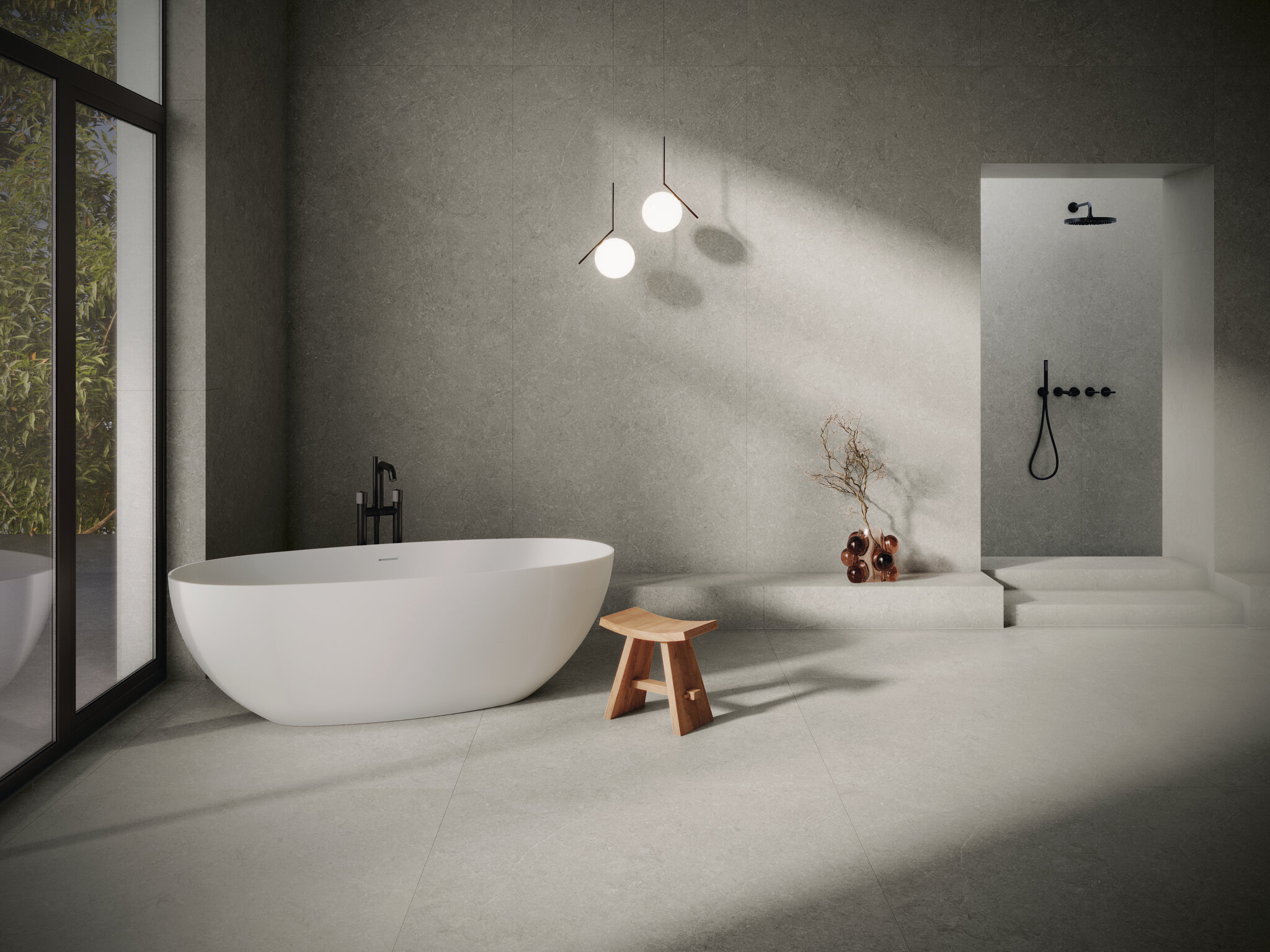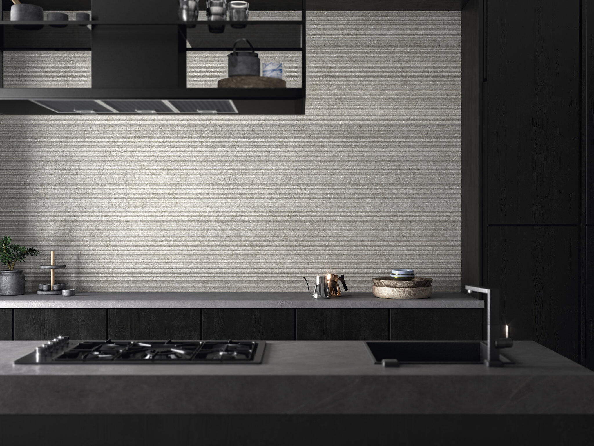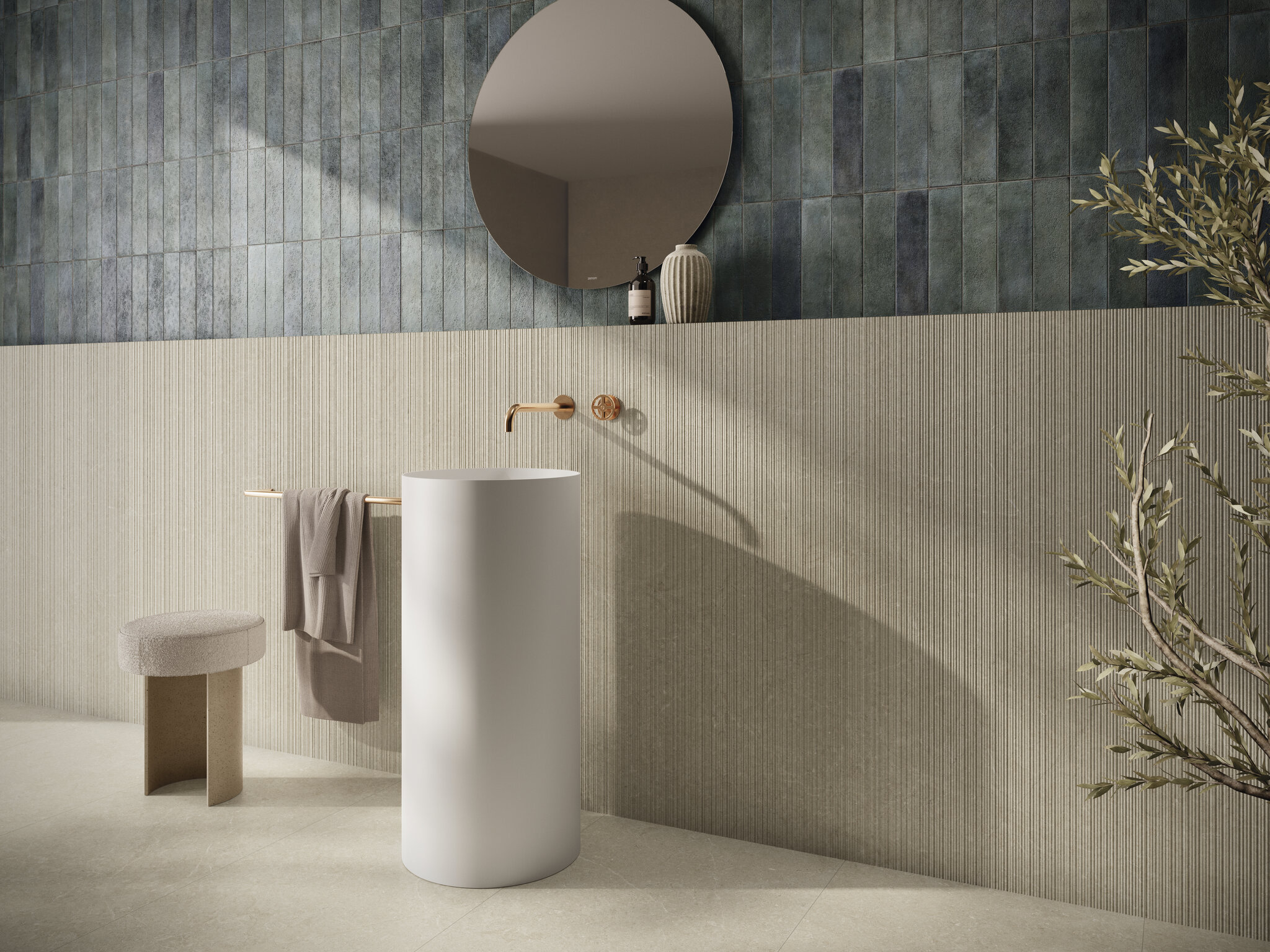 Mytos nace de la observación de la piedra natural y del deseo de trasladar su riqueza visual y táctil a un material cerámico de alto rendimiento. Esta colección de porcelánico efecto piedra con vetas marmoladas reproduce con precisión la mineralidad del material original, ofreciendo una estética atemporal con un fuerte impacto sensorial. Disponible en cuatro tonos neutros —Bone, Sand y Greige— Mytos abarca una gama de formatos versátiles, desde el compacto 60x60 hasta el espectacular 120x280, adaptándose a todo tipo de ambientes: desde interiores residenciales hasta espacios arquitectónicos y fachadas exteriores. La colección también incluye los formatos de revestimiento de 30x90 cm y 30x60 cm en los tres colores, acompañados de un relieve a juego que añade volumen y dinamismo a las paredes. El acabado Artech resalta los relieves y proporciona un realismo táctil que anticipa la sensación del contacto. Con Mytos, la calma mineral de la piedra natural se transforma en cerámica resistente, precisa y profundamente emocional.