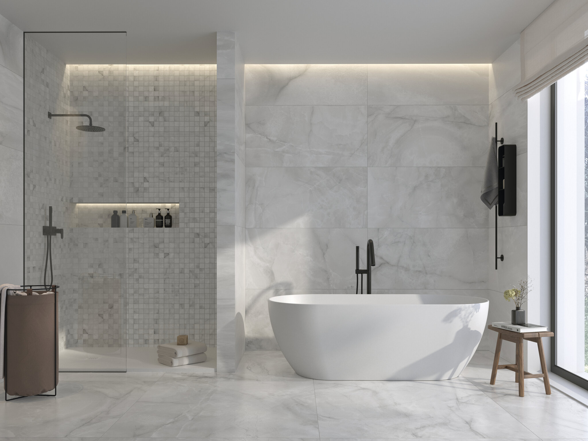 Onix es un azulejo porcelánico que destaca por su exquisito diseño con formas decorativas con efecto relieve. La luz, las formas y los colores se unen para crear piezas únicas y deslumbrantes, capaces de transportarnos hasta lugares casi inimaginables. Elegante y sencillo al mismo tiempo, este azulejo con acabados pulido y Mate está disponible en cuatro colores diferentes para tener cabida en cualquier estancia.