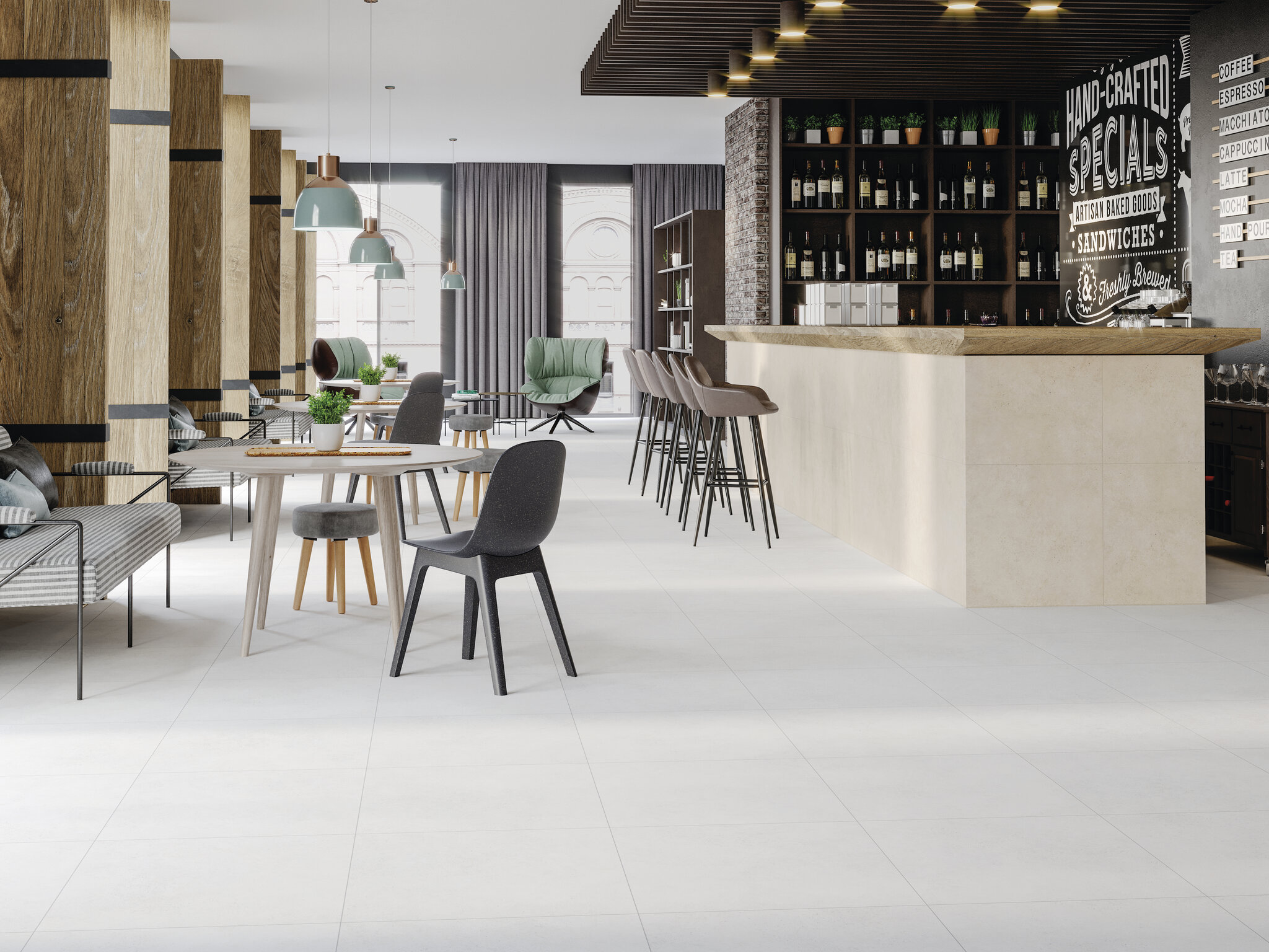 La cerámica con diseño cemento se reivindica en esta colección diseñada para los espacios más contemporáneos. Sus piezas de porcelánico rectificado están disponibles en cuatro tonalidades neutras para que el protagonismo recaiga en la decoración. Su acabado mate y formato 60x60 convierten a Pulsar en una opción ideal tanto para revestimiento como pavimento.