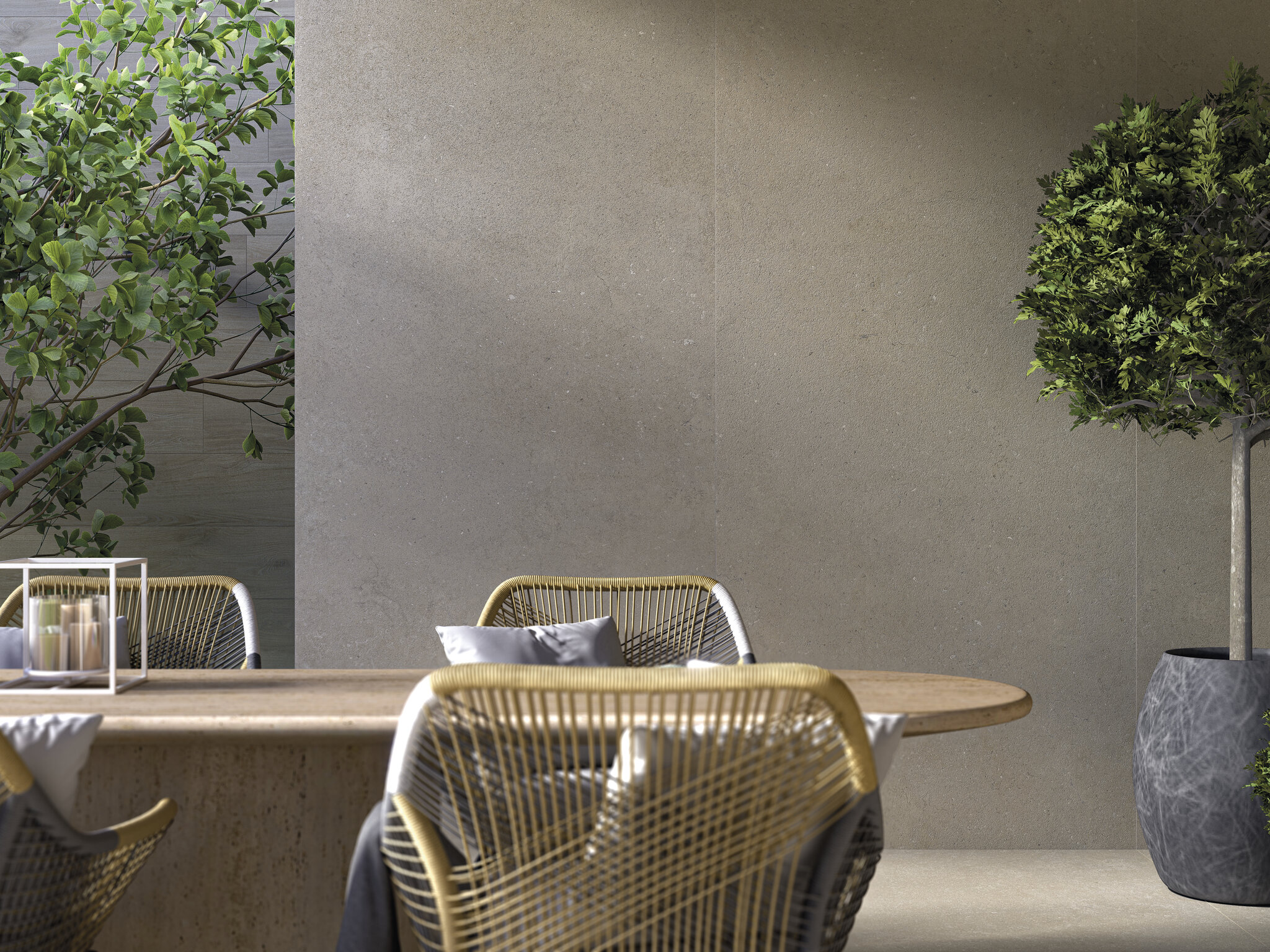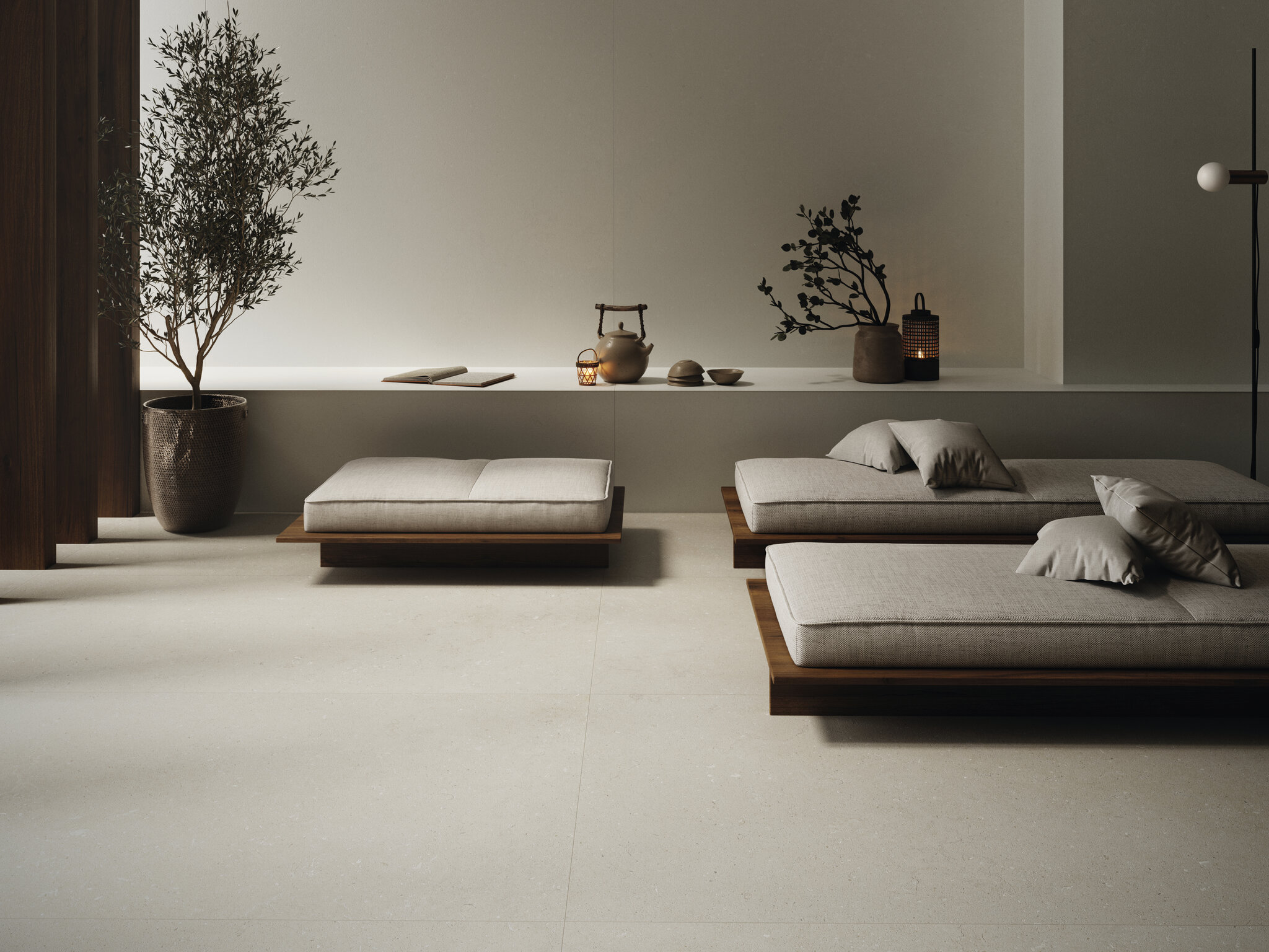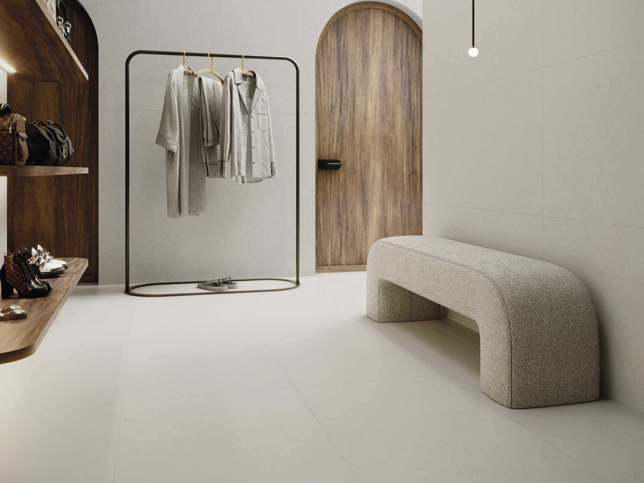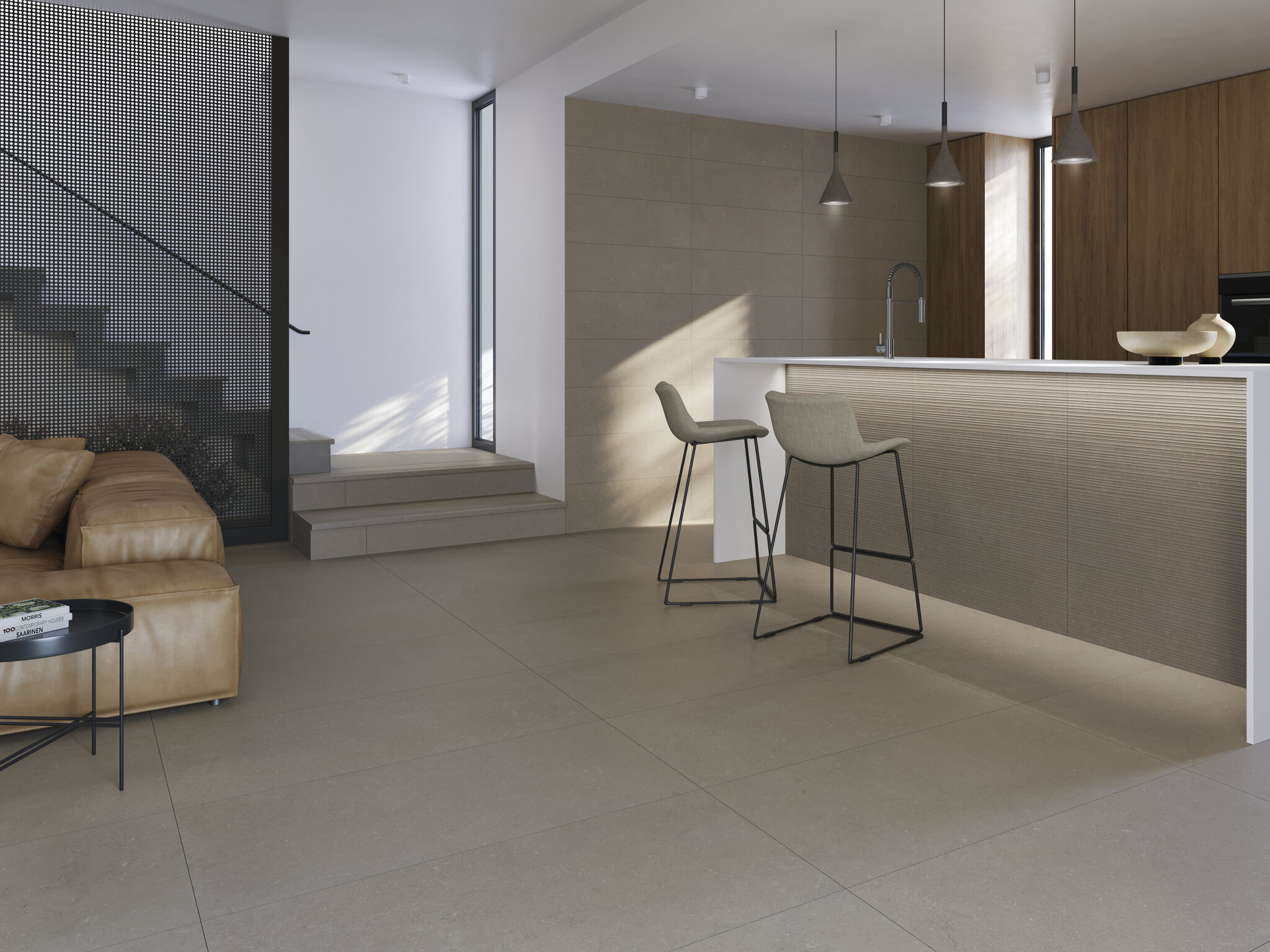 Rift nace del deseo de capturar la esencia mineral de la piedra natural en una colección cerámica versátil, resistente y de estética contemporánea. Su superficie cuidadosamente matizada transmite una textura auténtica que aporta equilibrio entre naturalidad y sofisticación, ideal para proyectos de interiorismo que combinan técnica y emoción. Disponible en cinco tonos atemporales —Bone, Sand, Greige, Ivory y Anthracite—, esta serie se ofrece en formatos de gran tamaño como 120x280, 120x120, 90x90, 60x120 y 60x60, adaptándose con fluidez a entornos residenciales o comerciales. Para una mayor funcionalidad, incluye versiones antideslizantes en 60x120 y 90x90, así como una opción de 20 mm de espesor para exteriores, perfecta para terrazas, patios y zonas húmedas. El acabado N-Plus, de tacto suave y aspecto mate, aporta mayor resistencia y facilita la limpieza diaria, manteniendo la belleza del material a lo largo del tiempo. Rift se completa con un revestimiento en pasta blanca de 60x120 y una pieza decorativa en relieve, ideal para crear paredes con textura, ritmo y personalidad. Una colección que eleva el porcelánico efecto piedra a nuevas cotas de diseño arquitectónico y sensorial.