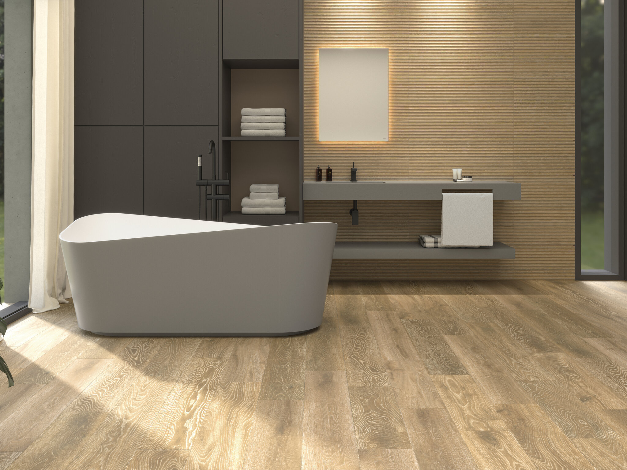 Stowe es una colección que traslada la belleza atemporal de la madera natural al lenguaje técnico y estético del porcelánico. Con un formato alargado de 20x120 cm y cantos rectificados, esta serie reproduce con gran realismo las vetas, matices y texturas propias de la madera, logrando un resultado cálido, elegante y funcional. La colección está disponible en cuatro tonalidades —Maple, White, Almond y Nature— que abarcan desde los tonos más claros y luminosos hasta los más sobrios y naturales, ofreciendo múltiples posibilidades decorativas. Su acabado mate con sutil relieve aporta profundidad y autenticidad a cada pieza, mejorando la sensación táctil sin renunciar a la practicidad. Fabricada en porcelánico, Stowe es una solución versátil y resistente, apta para todo tipo de interiores residenciales o comerciales que buscan un estilo sereno, acogedor y contemporáneo.
