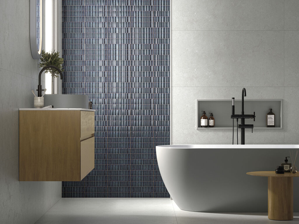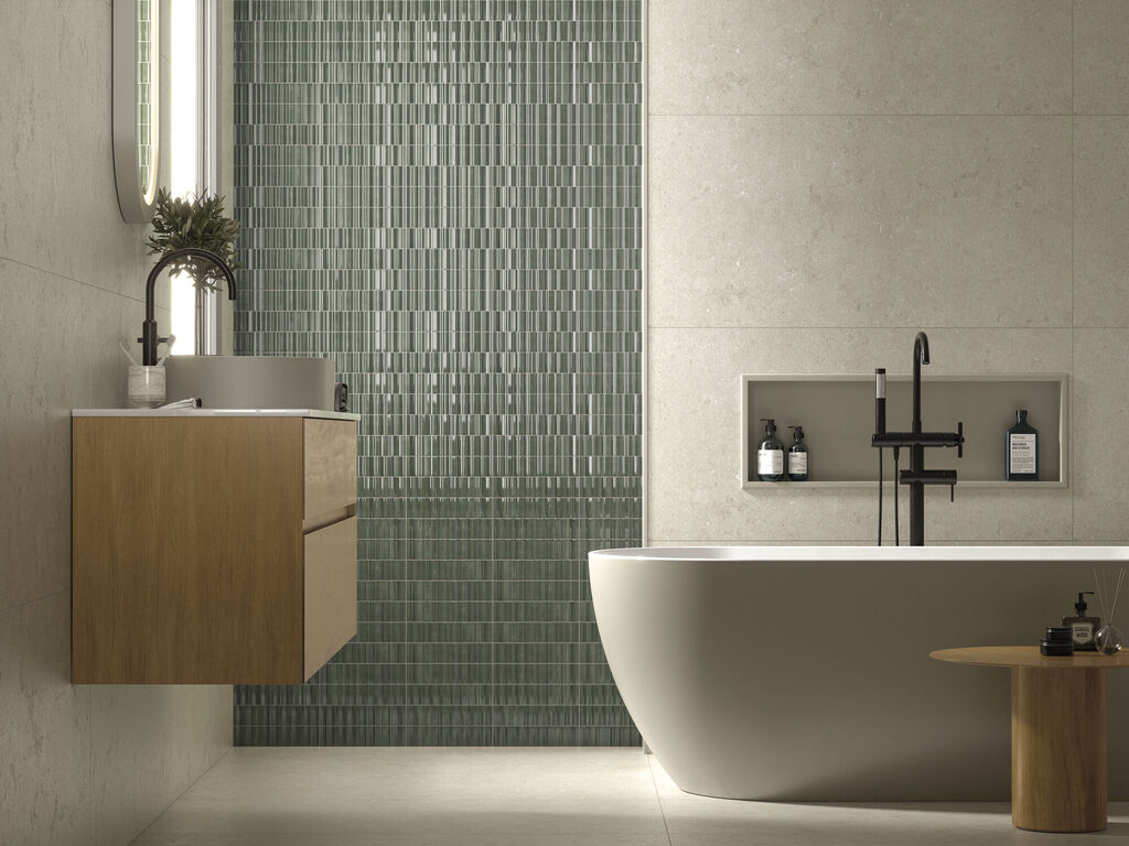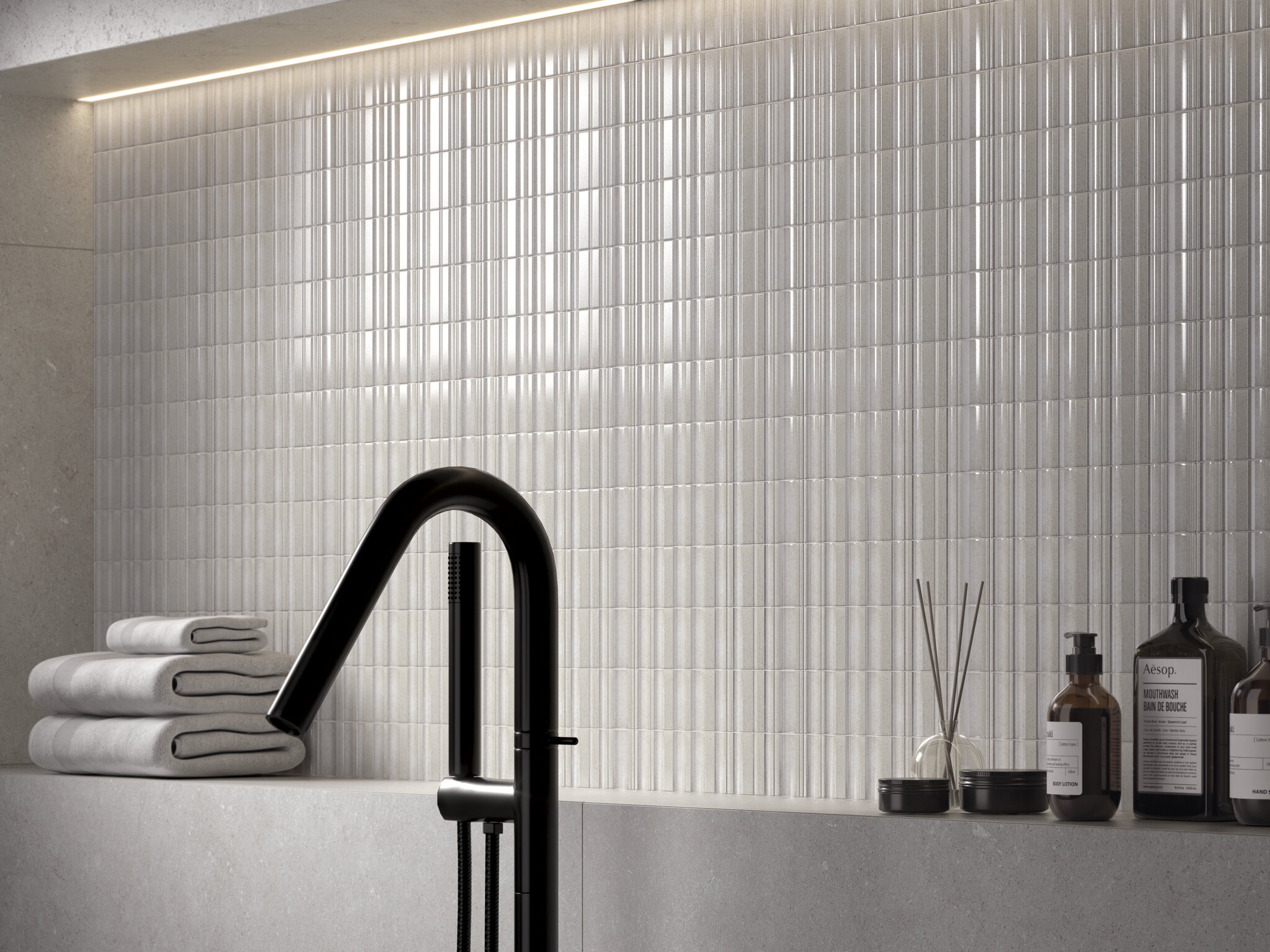 Volume es una colección que apuesta por la pureza del color y el valor decorativo de los pequeños formatos. Disponible en piezas de 6x25 cm, esta serie de gres porcelánico combina un acabado brillante con un elegante relieve horizontal que aporta dinamismo y profundidad a cada composición. Sus siete colores —Sage, Ivory, Nacar, Ocean, White, Cobalt y Emerald— conforman una paleta cuidadosamente seleccionada para adaptarse tanto a espacios neutros como a interiores más atrevidos y expresivos. Gracias a su resistencia y formato compacto, Volume es una opción ideal para revestir cocinas, baños o zonas decorativas en salones y otros espacios interiores. Una colección pensada para quienes buscan originalidad, color y textura en cada detalle del diseño