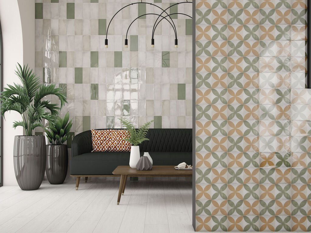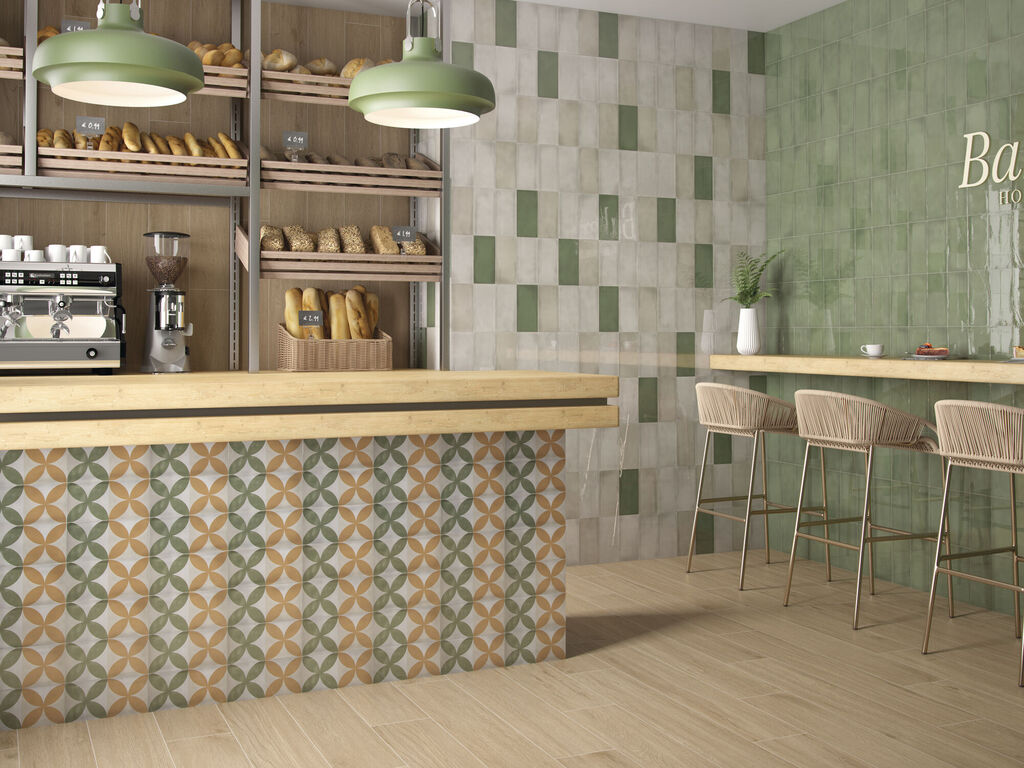 Atmosphere ist eine Kollektion von Feinsteinzeugfliesen für Küchen und Bäder mit unglaublichen Designs. In dieser Serie werden die traditionellsten Stile wieder aufgegriffen, um durch kühne Dekorationen und intensive Farben aktuelle und transgressive Ergebnisse zu erzielen. Diese Kollektion keramischer Wandfliesen im Format 12,5 x 25 cm ist in neun leuchtenden Farben erhältlich, die mit den acht dekorierten Stücken kombiniert werden können, um aufsehenerregende Umgebungen zu schaffen.