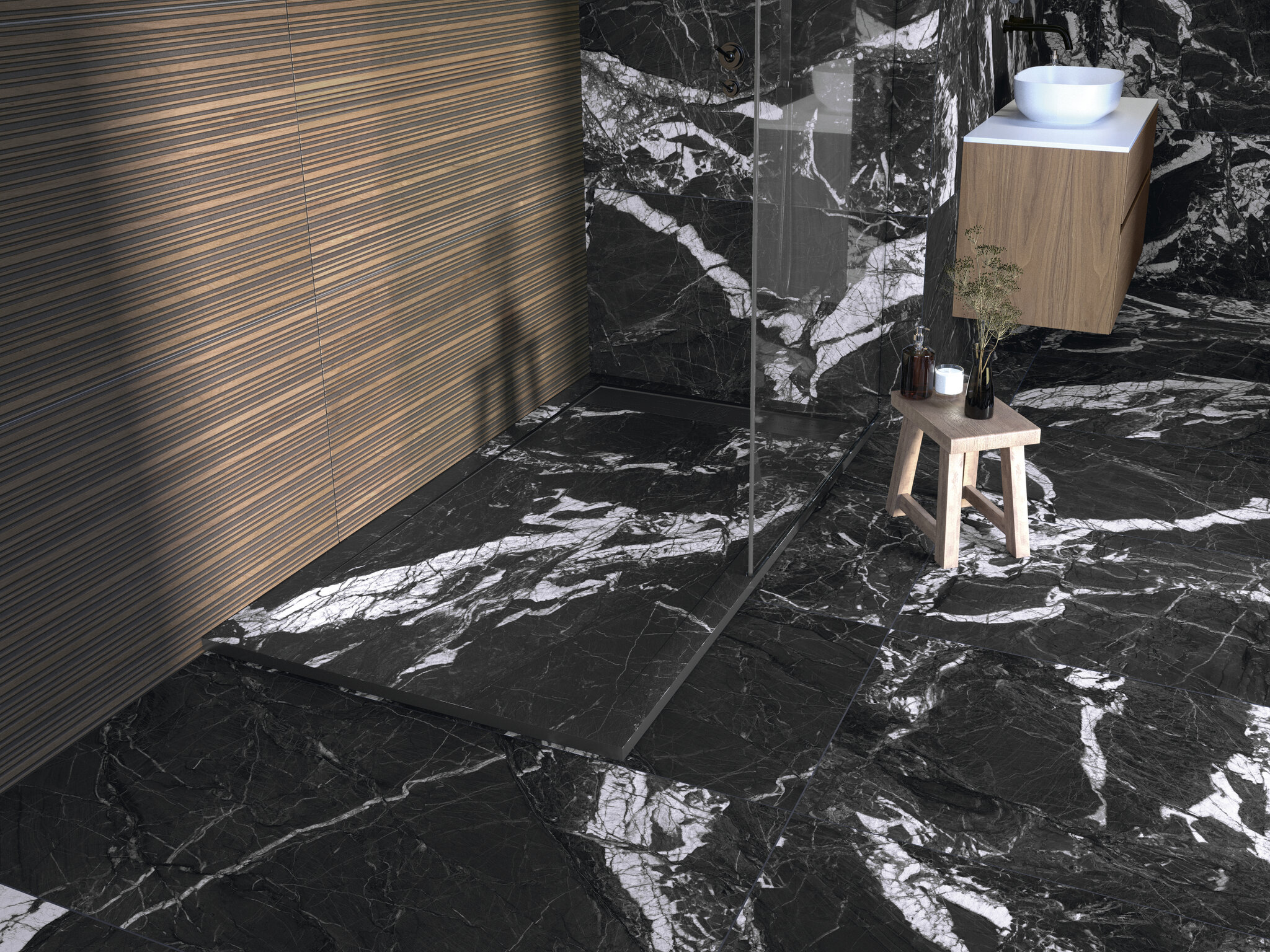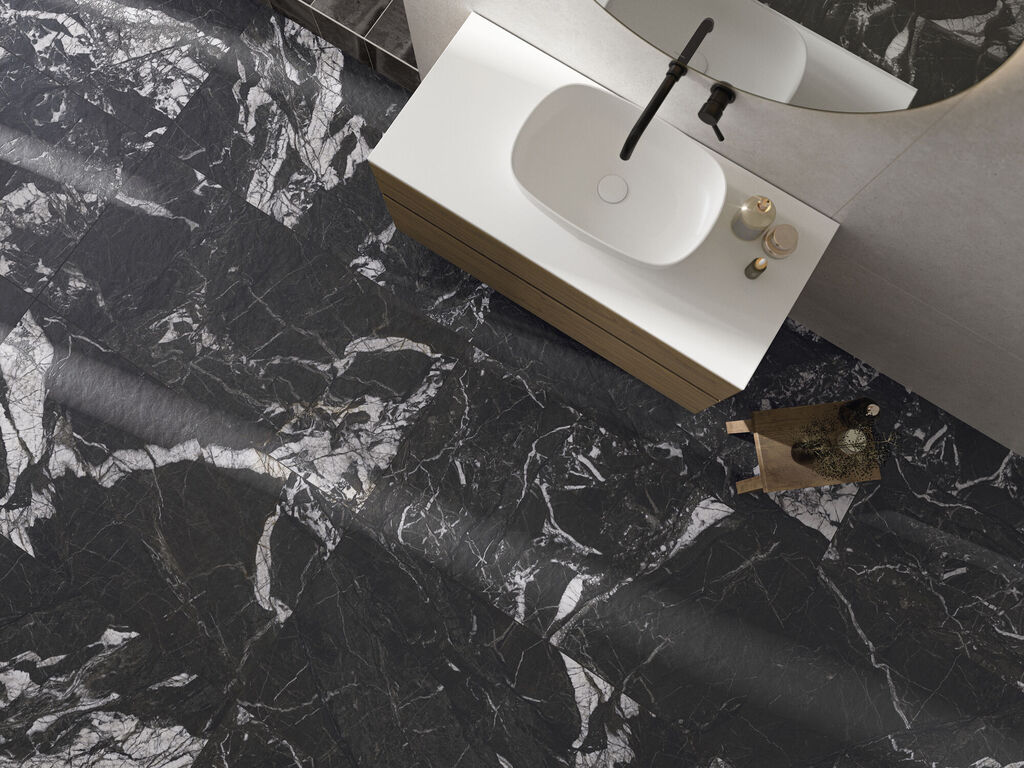 Arvora basiert auf der Artech-Technologie, die dank des Reliefs der Stücke eine größere Detailgenauigkeit und Realitätsnähe bei der Oberflächenbearbeitung ermöglicht. Die Maserung und die Intensität der Farbe werden sorgfältig studiert, um die Texturen des schwarzen Marmors bis ins kleinste Detail nachzuahmen. Diese Serie von Feinsteinzeugfliesen ist in einer rektifizierten Ausführung erhältlich. Sie ist auch in zwei Ausführungen erhältlich, poliert mit leichtem Glanz und matt, um sich den Vorlieben jedes Projekts anzupassen.