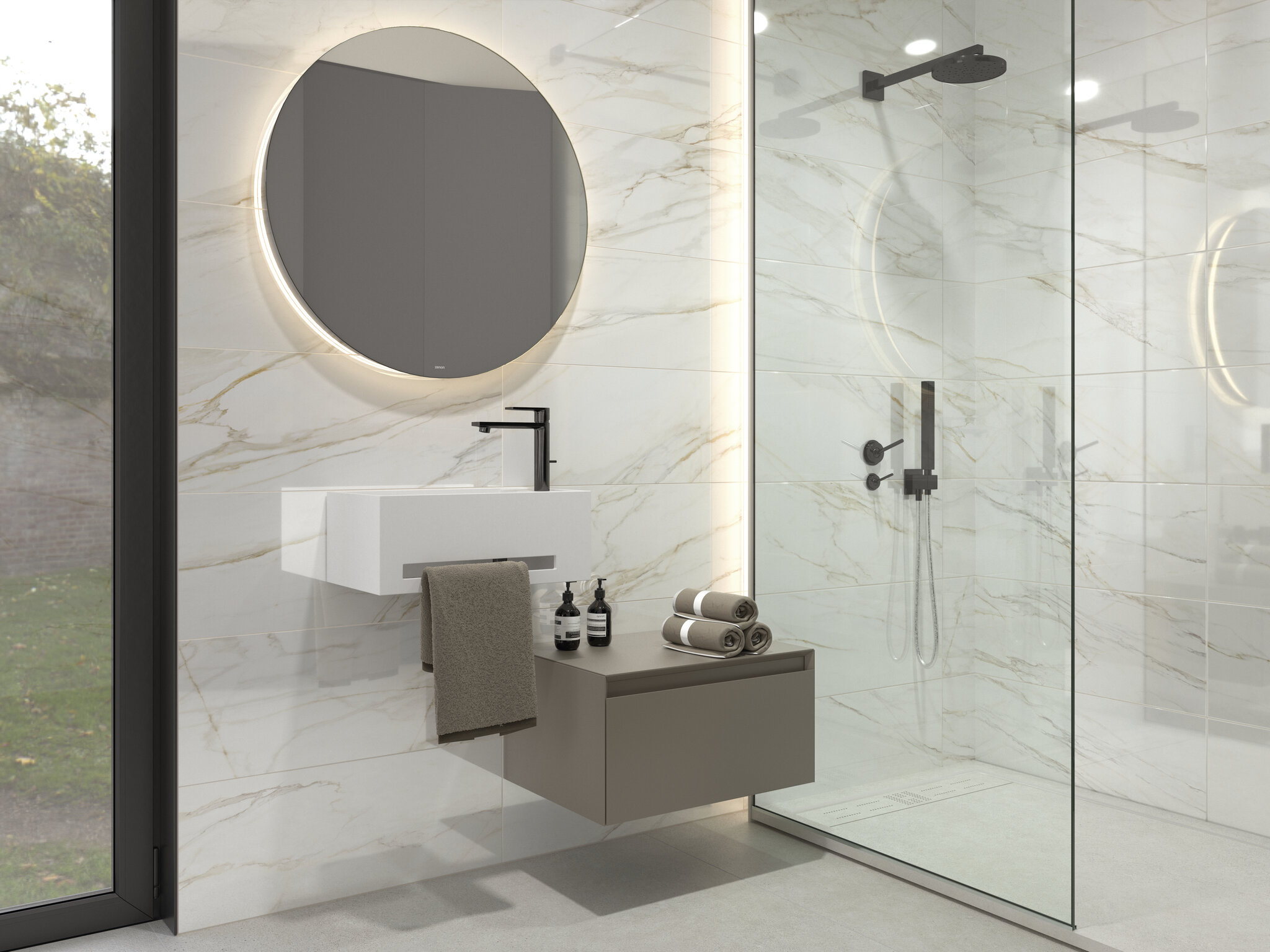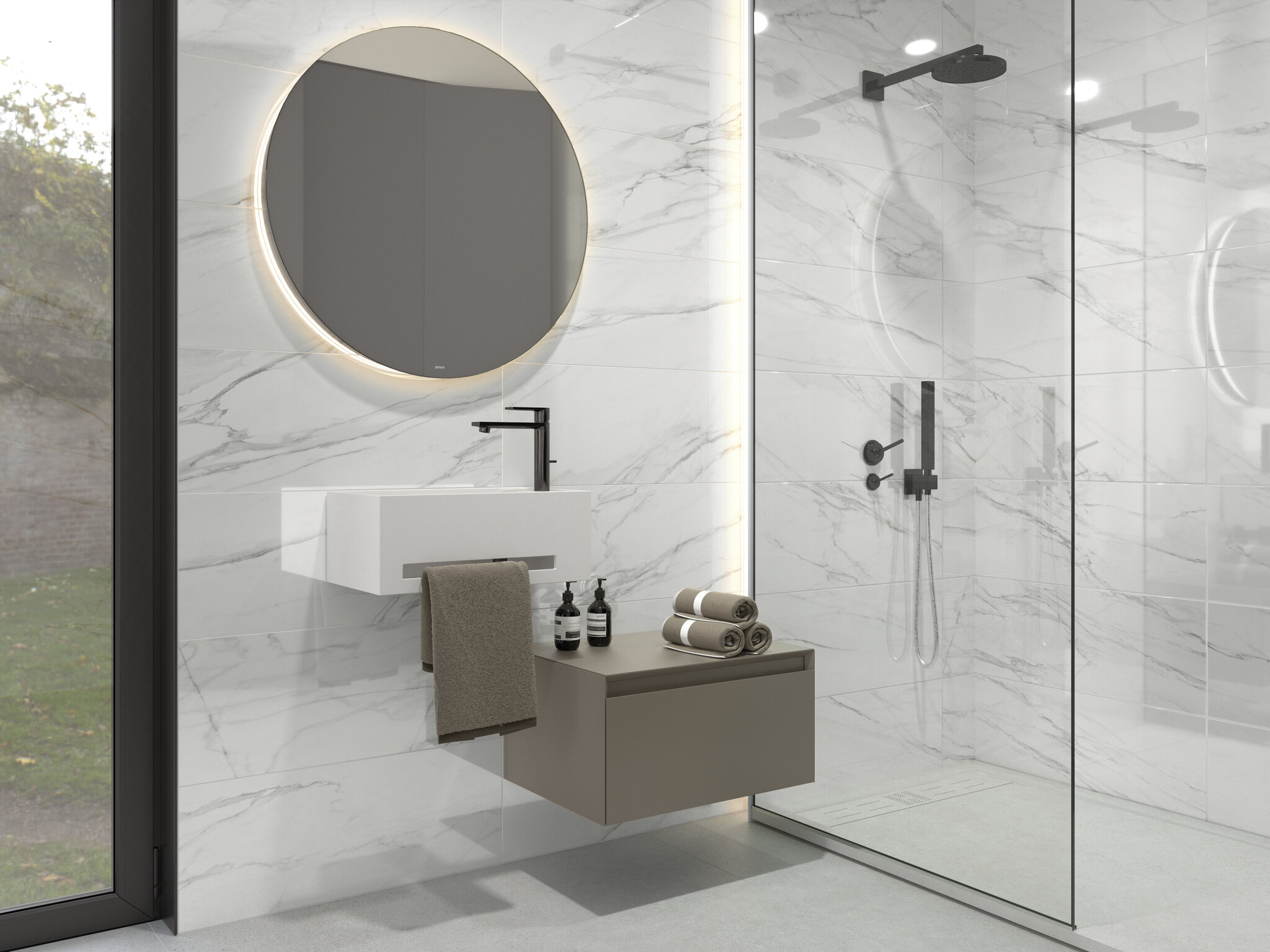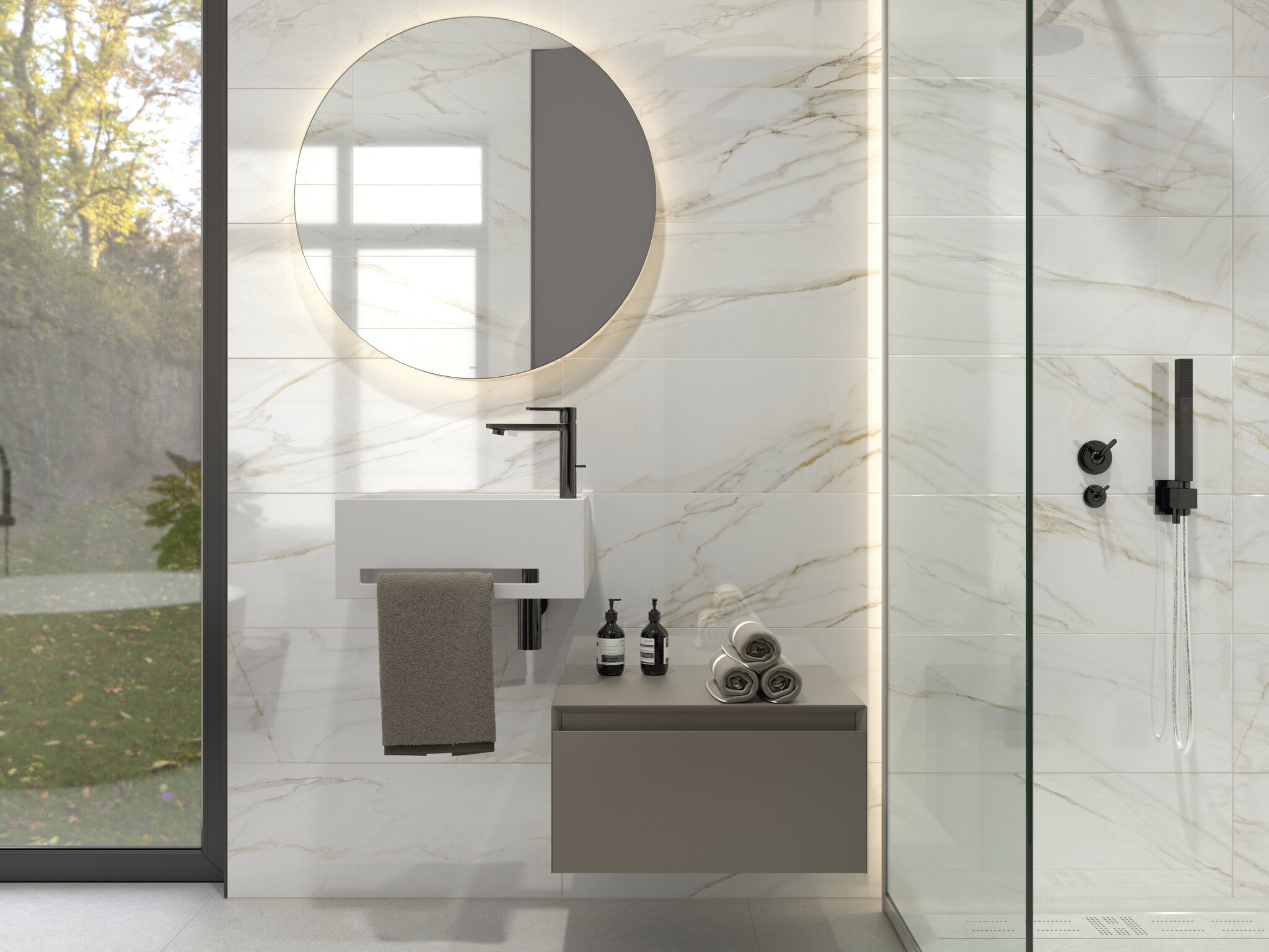 Diese Kollektion von Wandfliesen reproduziert die Details von Marmor durch grafische Variationen in Farbe und Maserung. Die Schattierungen können weiß und gräulich sein oder goldene Details enthalten,die ihre Ausdruckskraft verstärken. Es gibt zwei Ausführungen,matt und glänzend,je nachdem,ob ein natürlicheres Endergebnis gewünscht wird oder eines,das die optischen Qualitäten des Marmors hervorhebt. In der Version Sixt erhalten die Stücke ein Relief,das aus horizontalen Linien besteht.