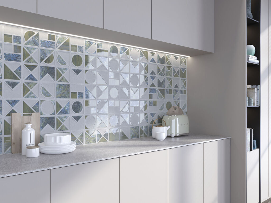 Cubo verwandelt die Wandverkleidung in ein visuelles und taktiles Erlebnis. Jedes Stück dieser Kollektion im Format 13x13 kombiniert definierte Reliefs mit einer glänzenden Oberfläche, die das Licht einfängt und Dynamik auf der Oberfläche erzeugt. Die Geometrien – Linien, Kurven, Verflechtungen und Volumen – verwandeln die Wand in eine skulpturale Komposition. Cubo ist in vier Farben erhältlich – Weiß, Blau, Bronze und Gold – und ermöglicht die Gestaltung von Räumen voller Persönlichkeit, indem es mit dem Kontrast zwischen Hintergrund und Textur spielt. Die Basis aus weißer Paste und die reichhaltigen Reliefs laden zu einer kreativen Anwendung in Badezimmern, Küchen und Wohnbereichen mit dekorativem Charakter ein. Cubo ist mehr als nur Keramik: Es ist eine Einladung, mit Rhythmus, Licht und Design auf jedem Quadratmeter zu experimentieren.