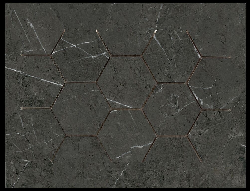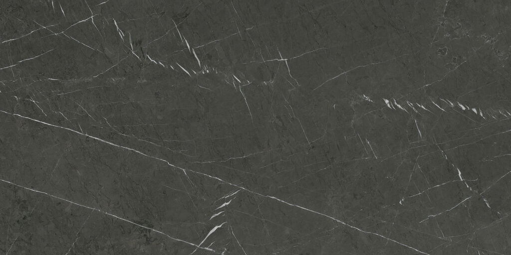 Die zarten weißen Adern, die die Oberfläche dieser schwarzen Design-Keramik aus Marmor durchbrechen, verleihen ihr einen geradezu fantastischen Charme. Dieses Material ist ideal für die Innenraumgestaltung von Böden, Wänden, Bädern, Küchenarbeitsplatten und Ziergegenständen, da die Kombination von Schwarz mit weißen Pinselstrichen perfekt ist und eine Vielzahl von ästhetischen Anpassungsmöglichkeiten bietet. Diese marmorierte Keramik von eleganter Noblesse lässt niemanden gleichgültig. Mit seinen fünf Formaten und den glänzenden, polierten und matten Oberflächen bietet er unendlich viele Möglichkeiten.