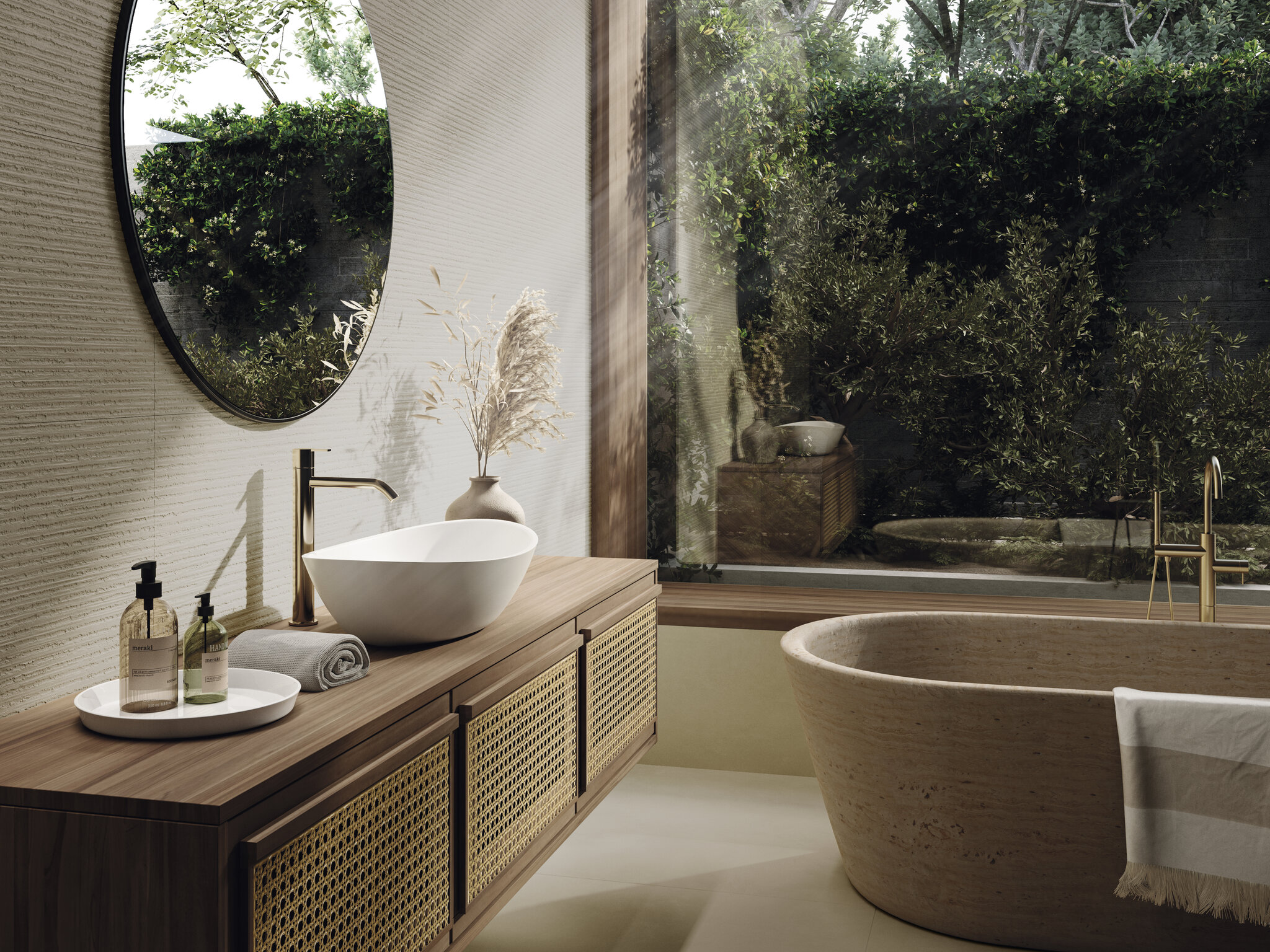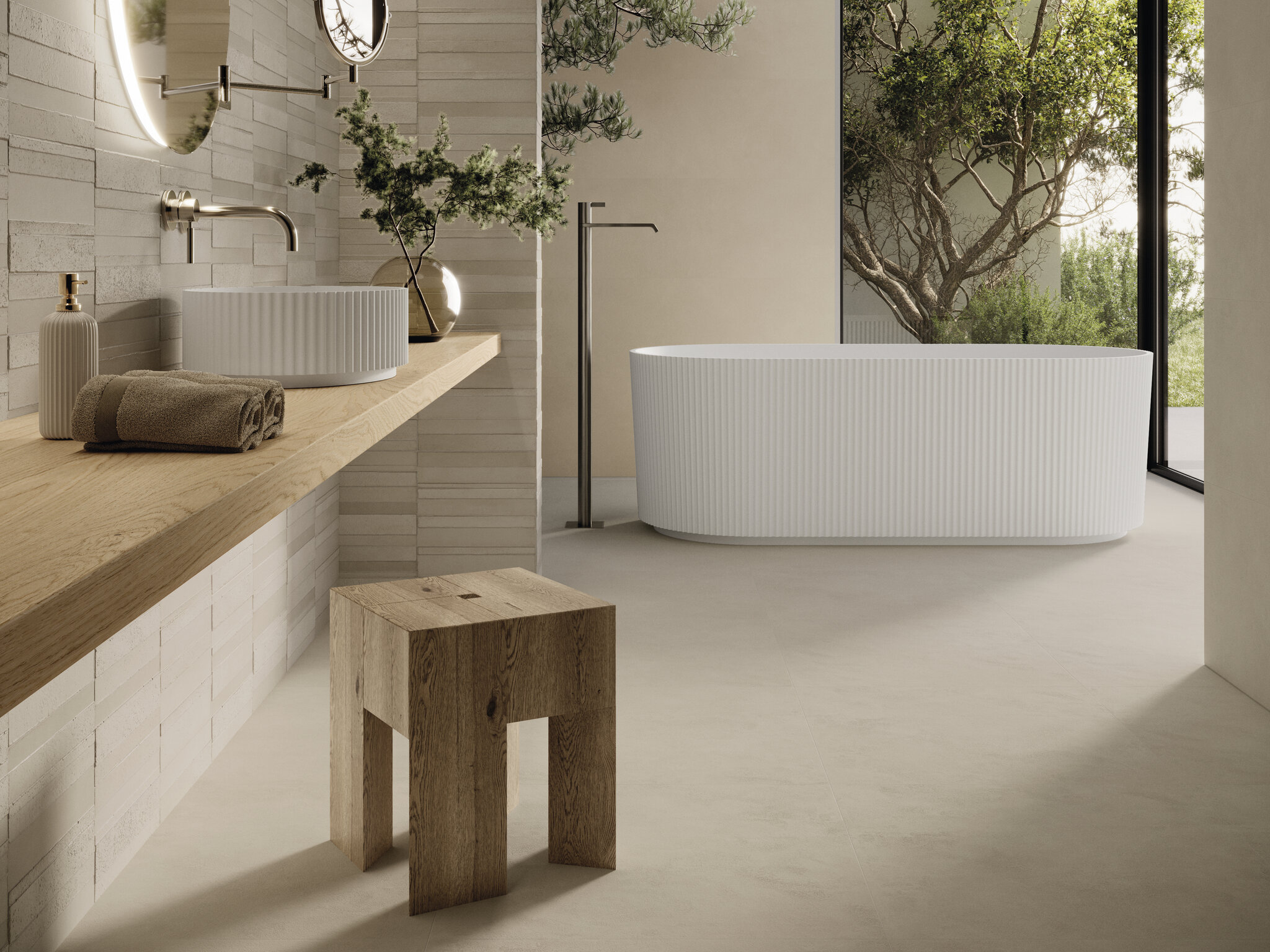 Origin verbindet sich mit dem Wesentlichen: der Erde, der Textur und der Wärme von gebranntem Ton. Diese Keramikkollektion in Terrakotta-Optik überträgt die zeitlose Schönheit natürlicher Materialien in die Sprache des zeitgenössischen Designs, mit einem warmen, organischen und raffinierten Ansatz. Origin ist in vier mineralischen Farbtönen erhältlich – Bone, Sand, Taupe und Terra – und wird in Feinsteinzeug in den Formaten 120x120, 100x100, 60x120 und 60x60 angeboten, darunter auch eine rutschfeste Version (60x120), die für Feuchträume, Außenböden und Ter 100x100, 60x120 und 60x60, einschließlich einer rutschfesten Version (60x120), die für Feuchträume, Außenböden und durchgehende Innen-Außen-Projekte geeignet ist. Die matte „Brushed”-Oberfläche fühlt sich seidig an, sieht natürlich aus und ist sehr widerstandsfähig, ideal für Räume, in denen Authentizität und Langlebigkeit gefragt sind. Die Kollektion wird durch Wandfliesen in Weißscherb mit den Maßen 40x120 ergänzt, darunter zwei Fliesen mit dekorativem Relief, mit denen sich Wände mit Charakter, Struktur und optischer Tiefe gestalten lassen. Origin verkleidet nicht nur Oberflächen, sondern verankert sie im Wesentlichen und verbindet in jedem Stück keramische Tradition und architektonische Sensibilität.