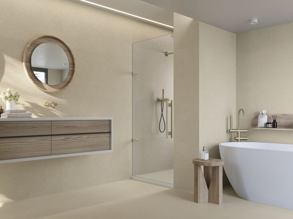 Rift entstand aus dem Wunsch heraus, die mineralische Essenz von Naturstein in einer vielseitigen, widerstandsfähigen Keramikkollektion mit zeitgemäßer Ästhetik einzufangen. Die sorgfältig nuancierte Oberfläche vermittelt eine authentische Textur, die ein Gleichgewicht zwischen Natürlichkeit und Raffinesse schafft und sich ideal für Innenarchitekturprojekte eignet, die Technik und Emotion verbinden. Erhältlich in fünf zeitlosen Farbtönen – Bone, Sand, Greige, Ivory und Anthracite – wird die Serie in großformatigen Porzellanfliesen in den Formaten 120x280, 120x120, 90x90, 60x120 und 60x60 angeboten, darunter auch eine rutschfeste Version in 60x120 für mehr Sicherheit in Feuchträumen. Die Kollektion wird durch Wandfliesen aus weißer Masse im Format 60x120 mit Relief sowie im Format 30x90 in den vier Farben, ebenfalls mit dekorativem Relief, ergänzt. Rift umfasst außerdem das Format 30x60 aus weißer Masse mit Relief und bietet kreative Lösungen für alle Arten von Räumen. Die Oberfläche „Brushed” mit ihrer weichen Haptik und mattem Aussehen garantiert eine höhere Widerstandsfähigkeit und erleichtert die tägliche Reinigung, sodass die Schönheit jeder Oberfläche über lange Zeit erhalten bleibt. Als Besonderheit umfasst die Kollektion eine dekorierte Option aus Feinsteinzeug im Format 60x120, die sich perfekt eignet, um Wänden eine künstlerische und einzigartige Note zu verleihen. Rift hebt Porzellanfliesen in Steinoptik auf ein neues Niveau des architektonischen und sensorischen Designs und wird so zum perfekten Begleiter für hochwertige Wohn- und Objektprojekte.