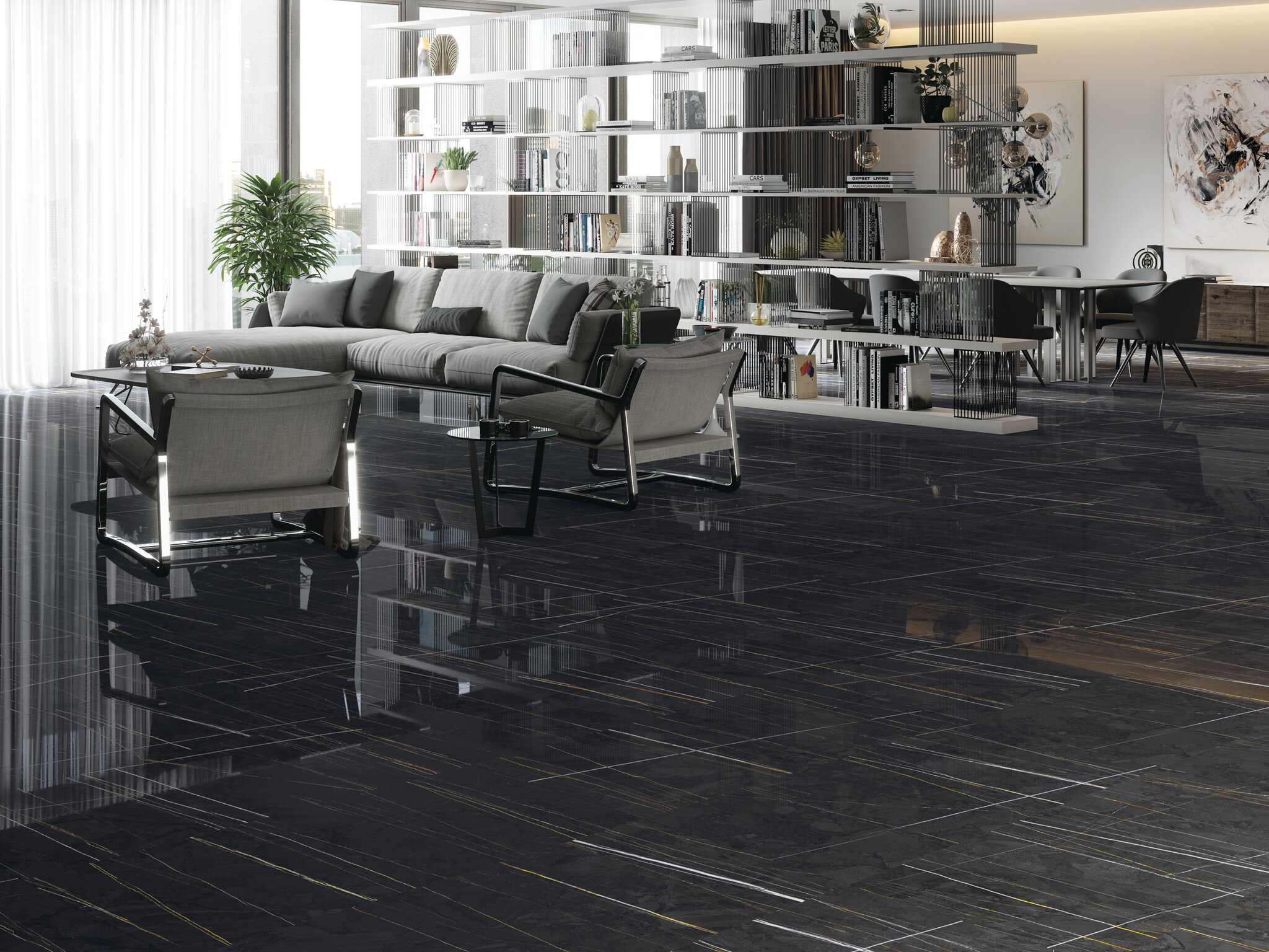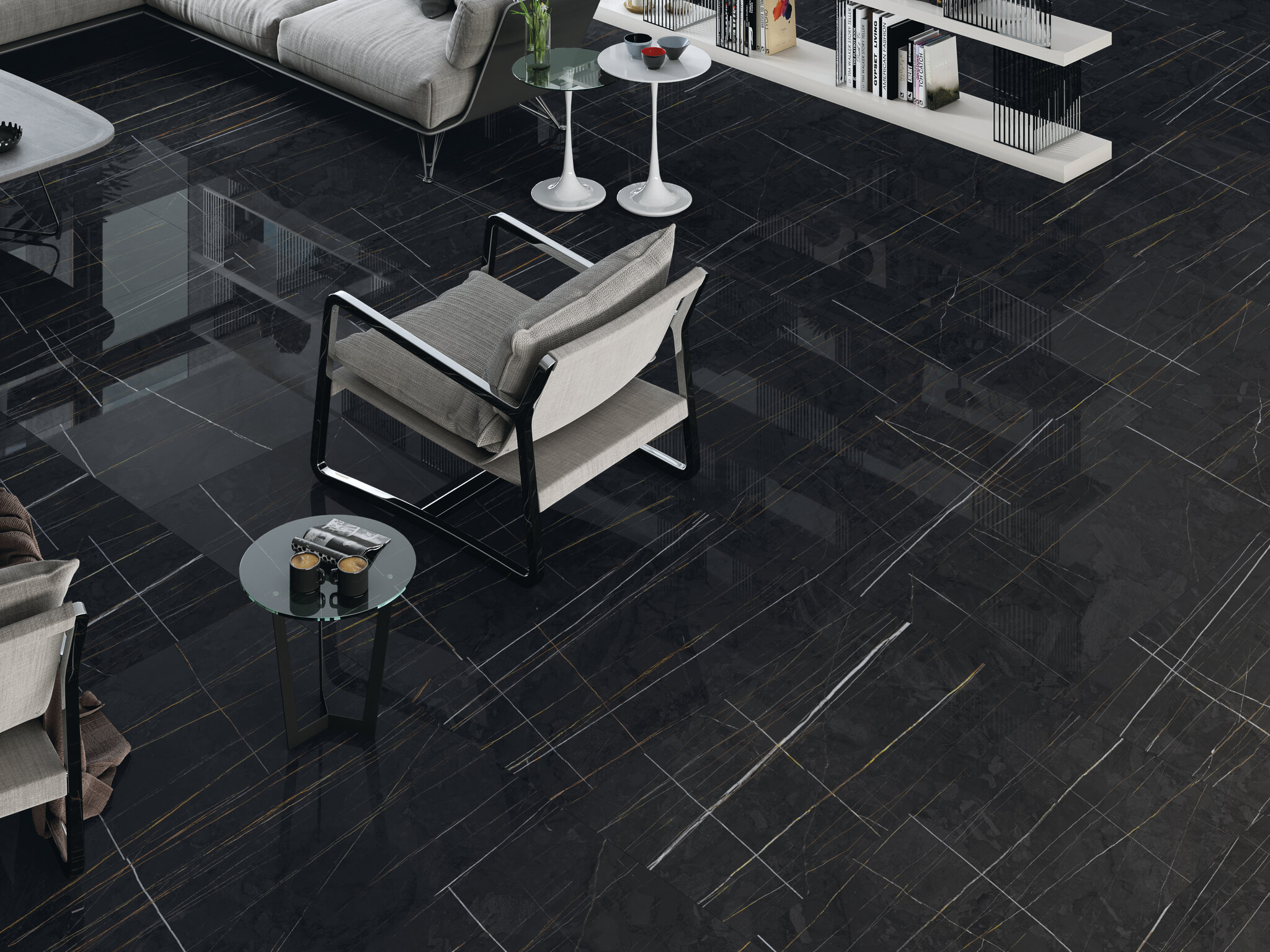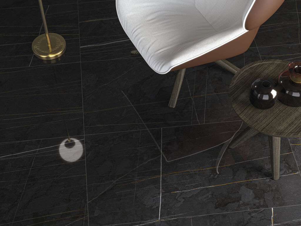 Die Naturdesign-Keramik der Sahara-Kollektion zeichnet sich durch den Kontrast ihrer weißen und goldenen Adern aus. Cifre Cerámica setzt auf Design und Innovation durch eine großformatige Serie, die durch Kontraste die Eleganz eines uralten Marmors zeigt. In einem Gestaltungsspiel verwandelt sich die Tiefe des absoluten Schwarz in ein Pure Weiß, das die schwarzen Linien überlagert. Licht und Kontrast spielen in diesen Stücken von bis zu vier verschiedenen Formaten, in matter oder polierter Maserung, um ein überwältigendes Ergebnis zu erzielen.