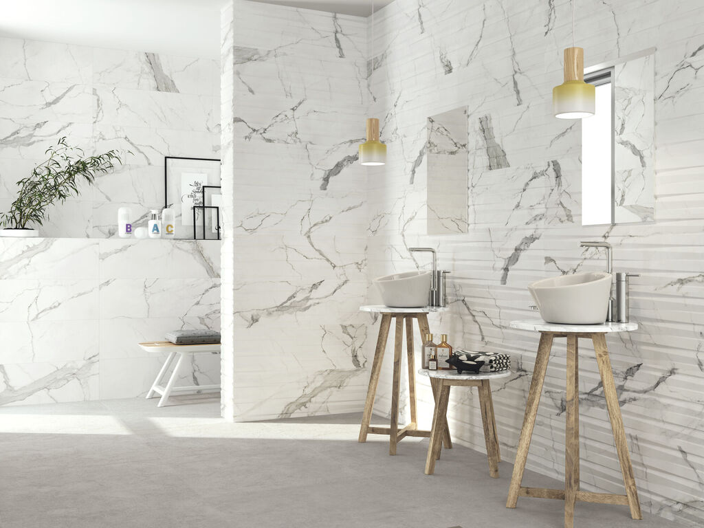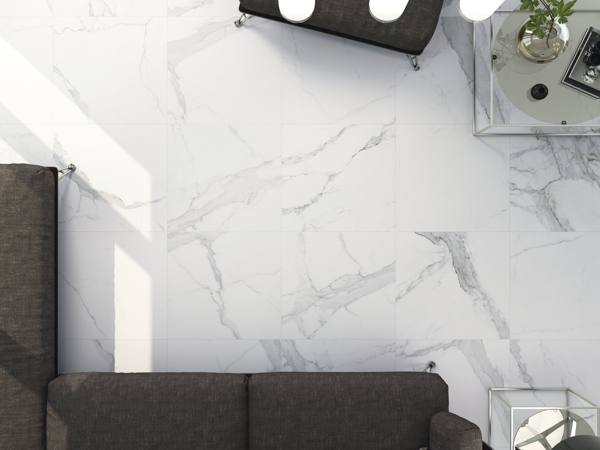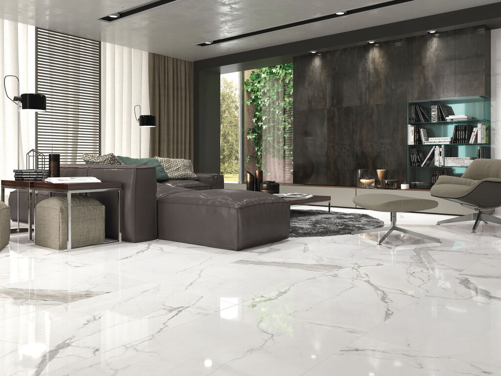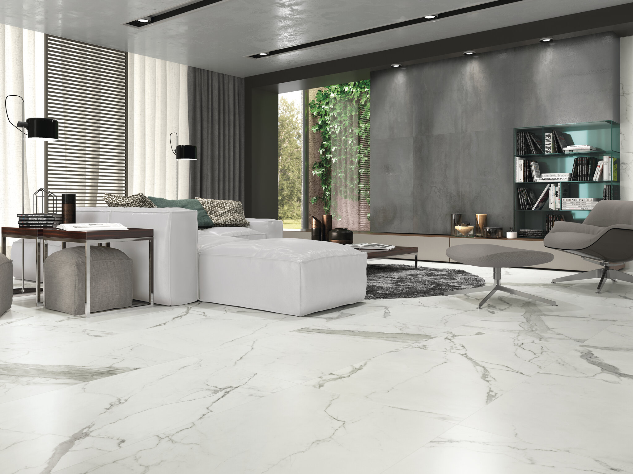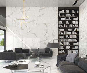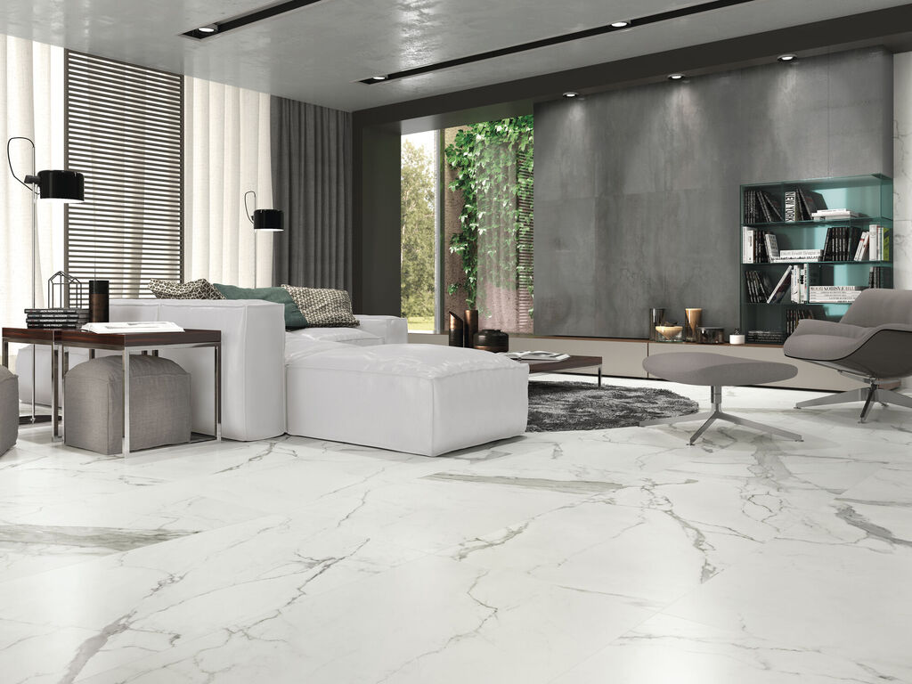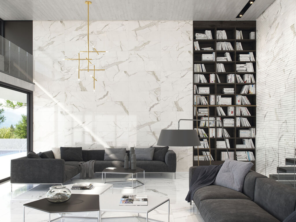 Die Serie Statuario basiert auf der Essenz des gleichnamigen Marmors, um Keramikfliesen für Wohnzimmerwände oder andere Räume zu schaffen, in denen Eleganz und Raffinesse die Protagonisten sind. Die Reinheit dieser Kollektion wird von zarten Adern unterbrochen, die von Gold bis Grau reichen, und bringt Dynamik in jedes Interieur. Die Verbesserung der Drucksysteme bietet den perfekten Rahmen, in dem die Marmoreffektkeramik immer intensiver, realer und spektakulärer wird. Statuario ist in sechs kombinierbaren Formaten und verschiedenen Ausführungen erhältlich, um Designs zu erzielen, die niemanden gleichgültig lassen.