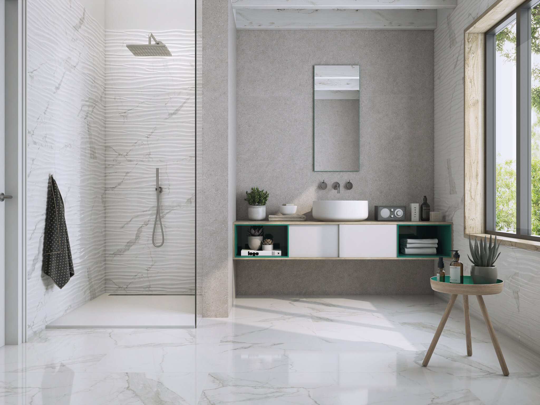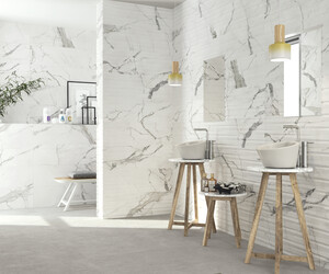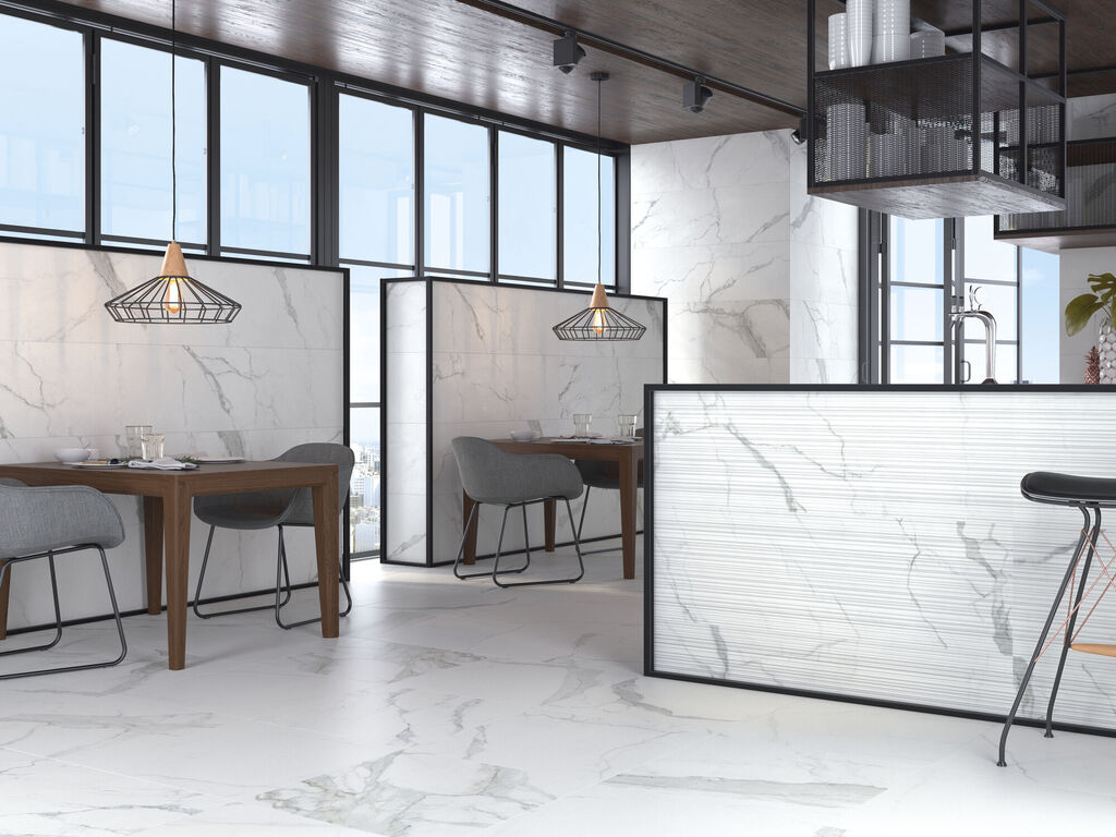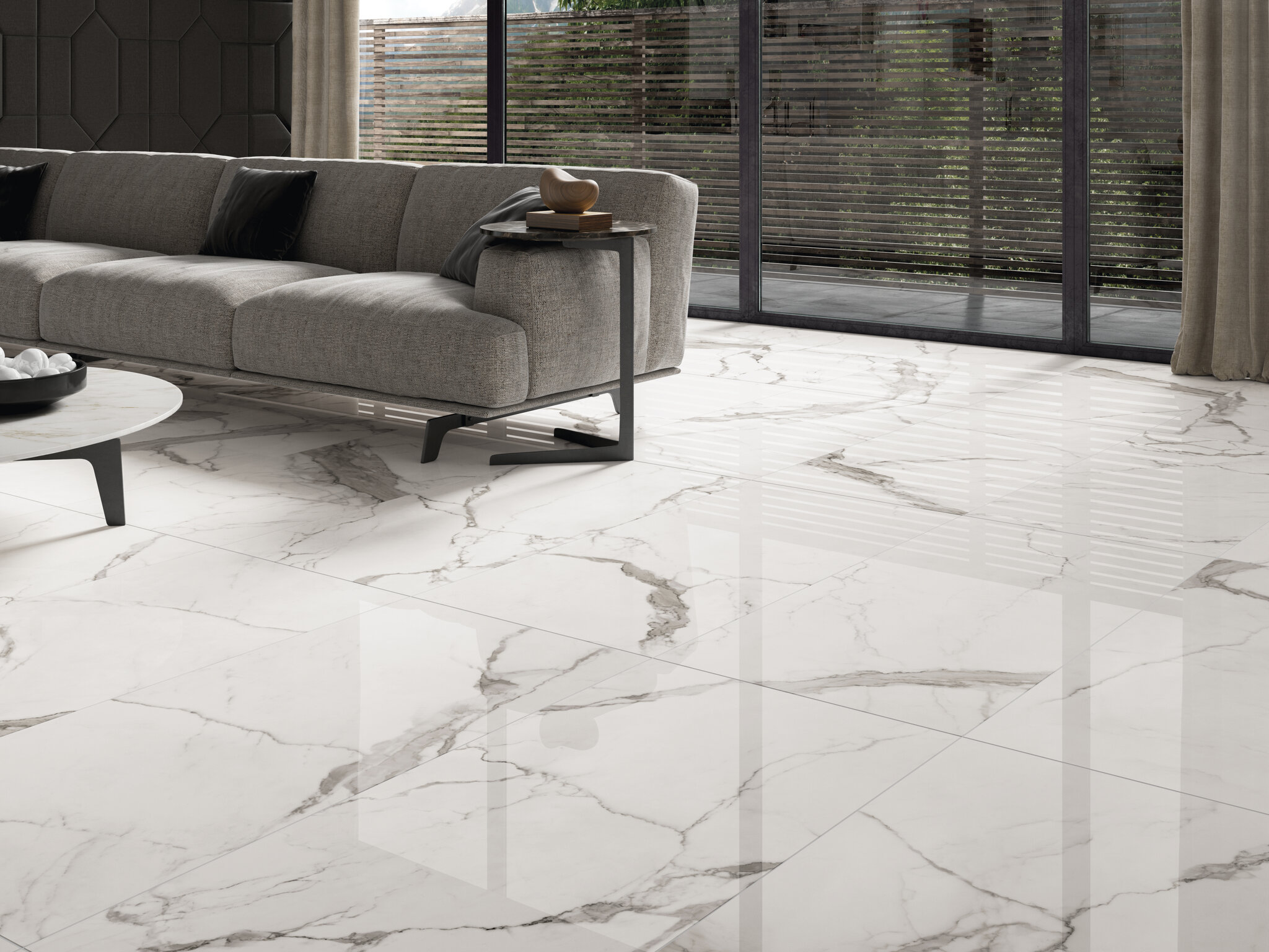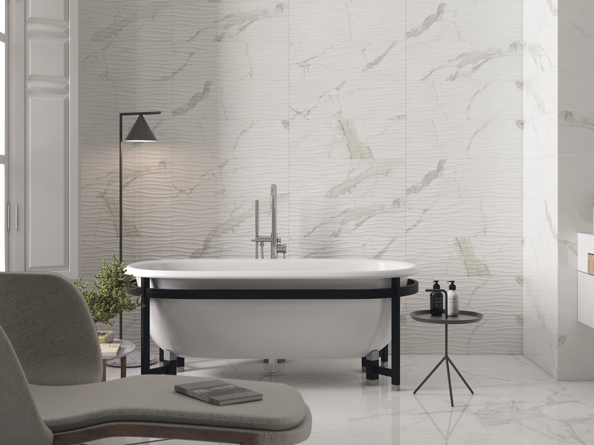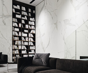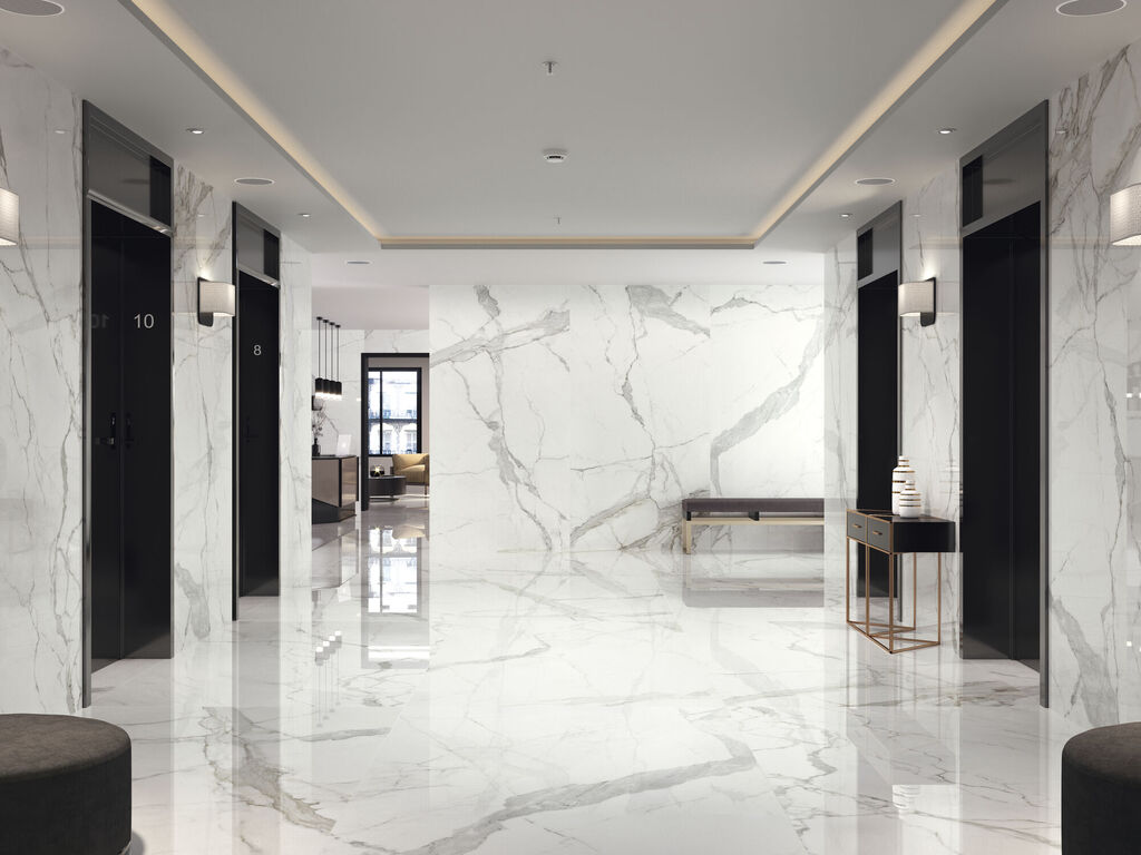 Die Serie Statuario basiert auf der Essenz des gleichnamigen Marmors, um Keramikfliesen für Wohnzimmerwände oder andere Räume zu schaffen, in denen Eleganz und Raffinesse die Protagonisten sind. Die Reinheit dieser Kollektion wird von zarten Adern unterbrochen, die von Gold bis Grau reichen, und bringt Dynamik in jedes Interieur. Die Verbesserung der Drucksysteme bietet den perfekten Rahmen, in dem die Marmoreffektkeramik immer intensiver, realer und spektakulärer wird. Statuario ist in sechs kombinierbaren Formaten und verschiedenen Ausführungen erhältlich, um Designs zu erzielen, die niemanden gleichgültig lassen.