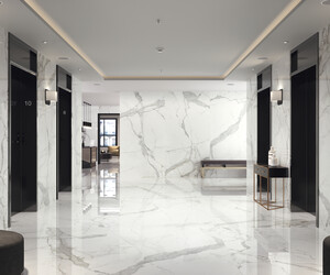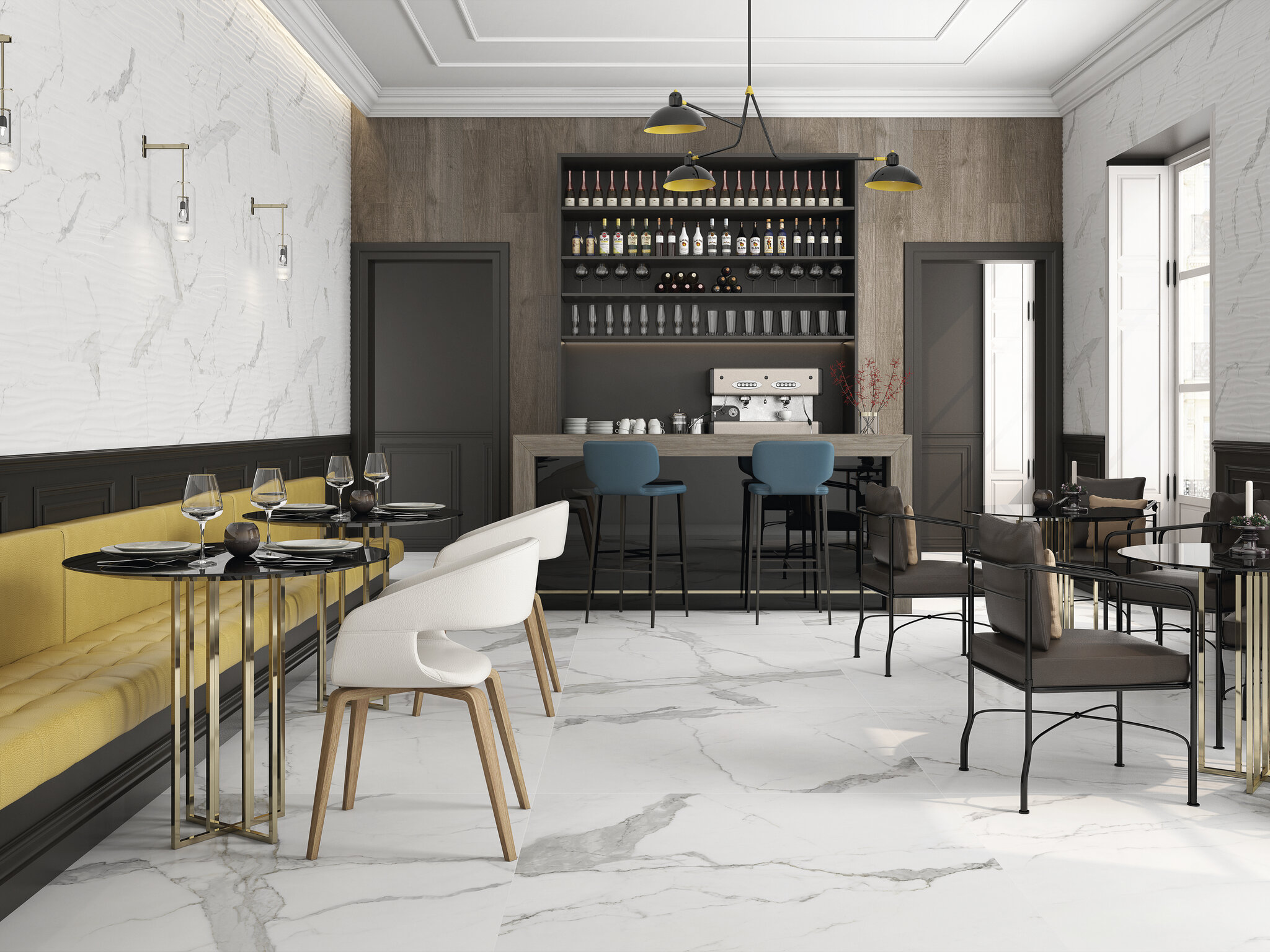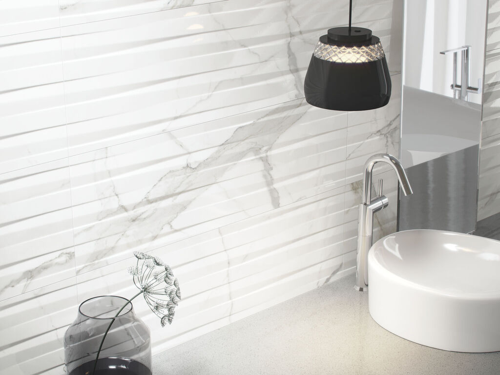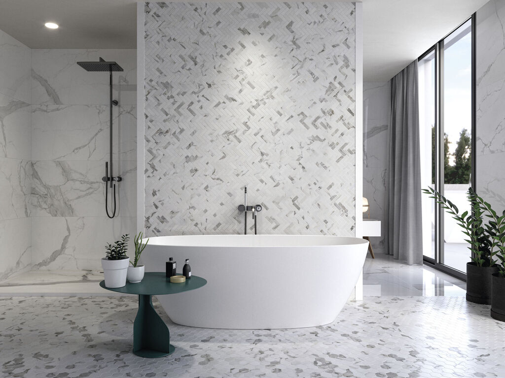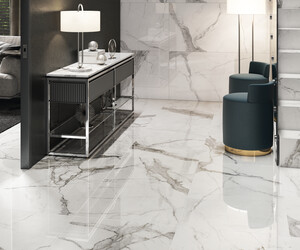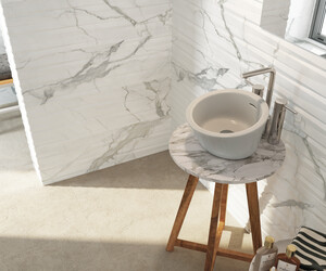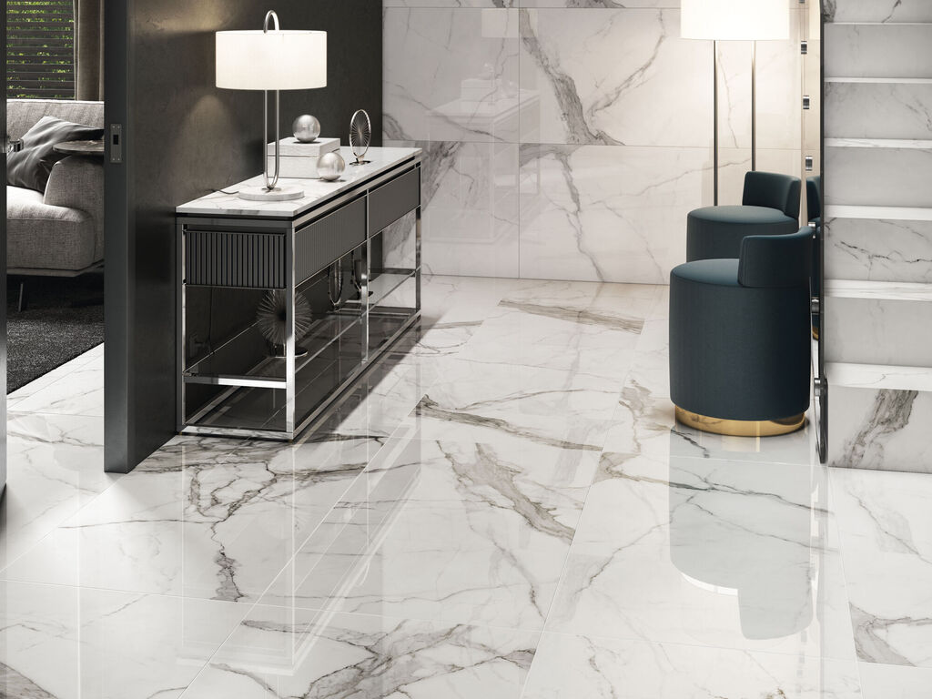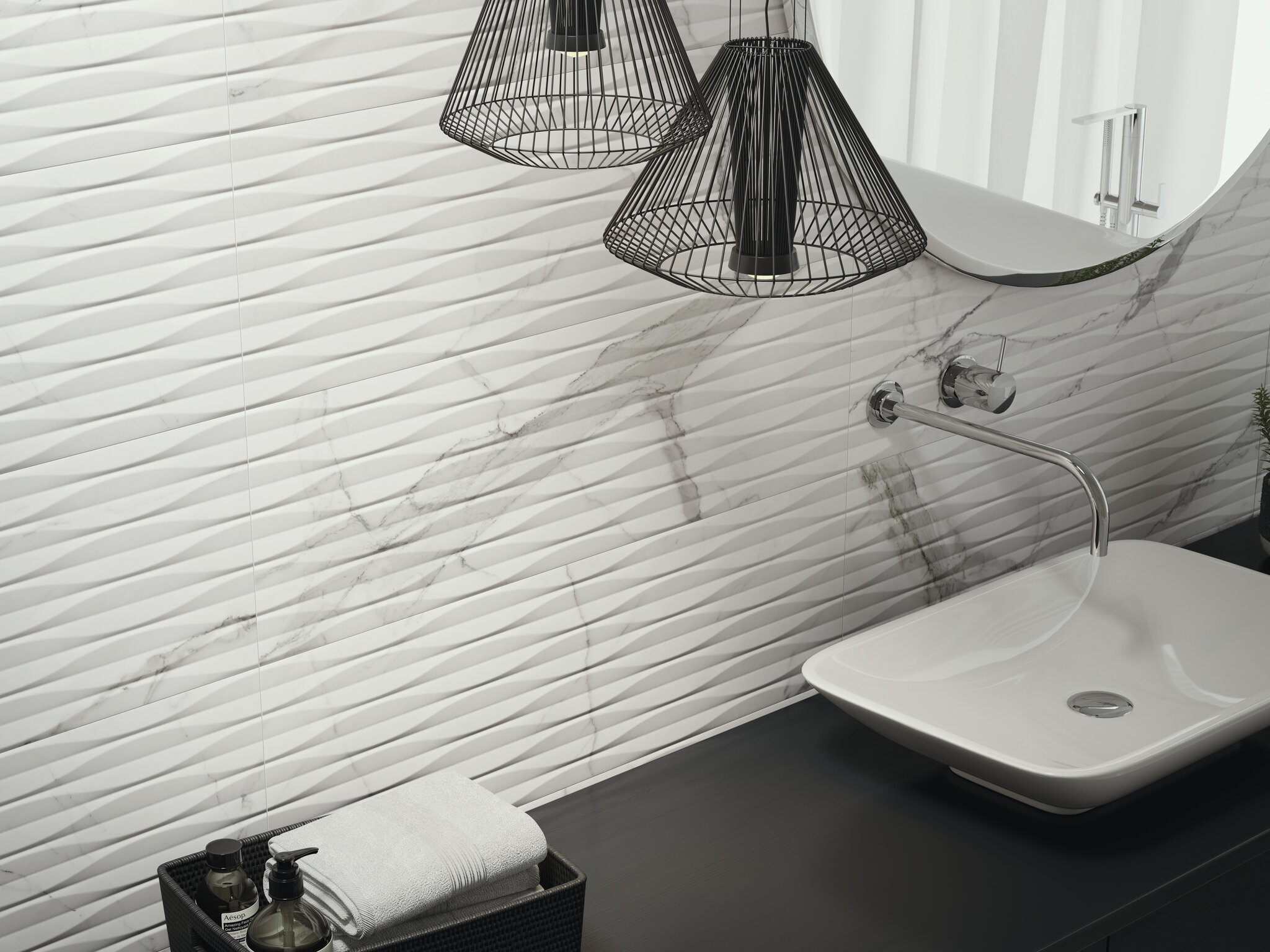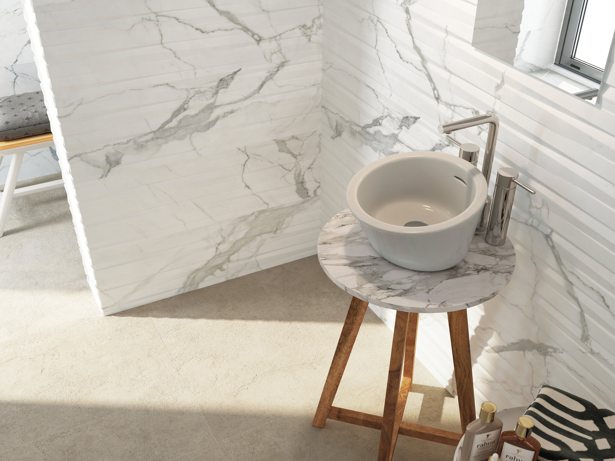 Die Serie Statuario basiert auf der Essenz des gleichnamigen Marmors, um Keramikfliesen für Wohnzimmerwände oder andere Räume zu schaffen, in denen Eleganz und Raffinesse die Protagonisten sind. Die Reinheit dieser Kollektion wird von zarten Adern unterbrochen, die von Gold bis Grau reichen, und bringt Dynamik in jedes Interieur. Die Verbesserung der Drucksysteme bietet den perfekten Rahmen, in dem die Marmoreffektkeramik immer intensiver, realer und spektakulärer wird. Statuario ist in sechs kombinierbaren Formaten und verschiedenen Ausführungen erhältlich, um Designs zu erzielen, die niemanden gleichgültig lassen.