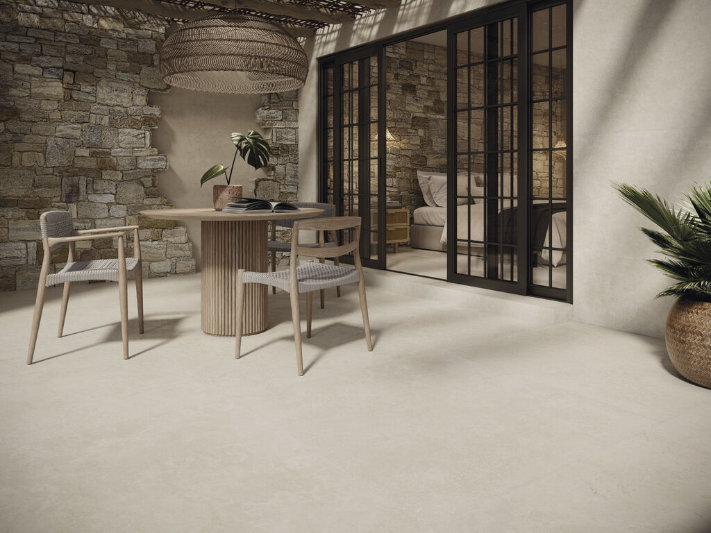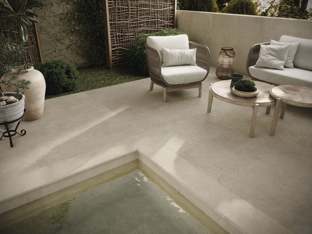 Trevia bietet ein weiches und vielseitiges steinähnliches Design,das sich an die Bedürfnisse moderner Außenarchitektur und Innenarchitekturprojekte anpasst. Sie ist in 4 Formaten und in zwei neutralen Farbtönen,Elfenbein und Beige,erhältlich,die den praktischen Charakter der Serie betonen und ihre ästhetischen Möglichkeiten erweitern. Trevia zeichnet sich auch durch seine Vielseitigkeit und seine Fähigkeit aus,den Wechsel zwischen Innen- und Außenbereichen zu fördern. Zu diesem Zweck ist er in zwei Ausführungen erhältlich: matt und rutschfest.