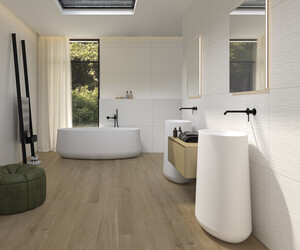 Steinartige Textur mit einhüllendem Charakter in hochwertiger Keramik für moderne Umgebungen.