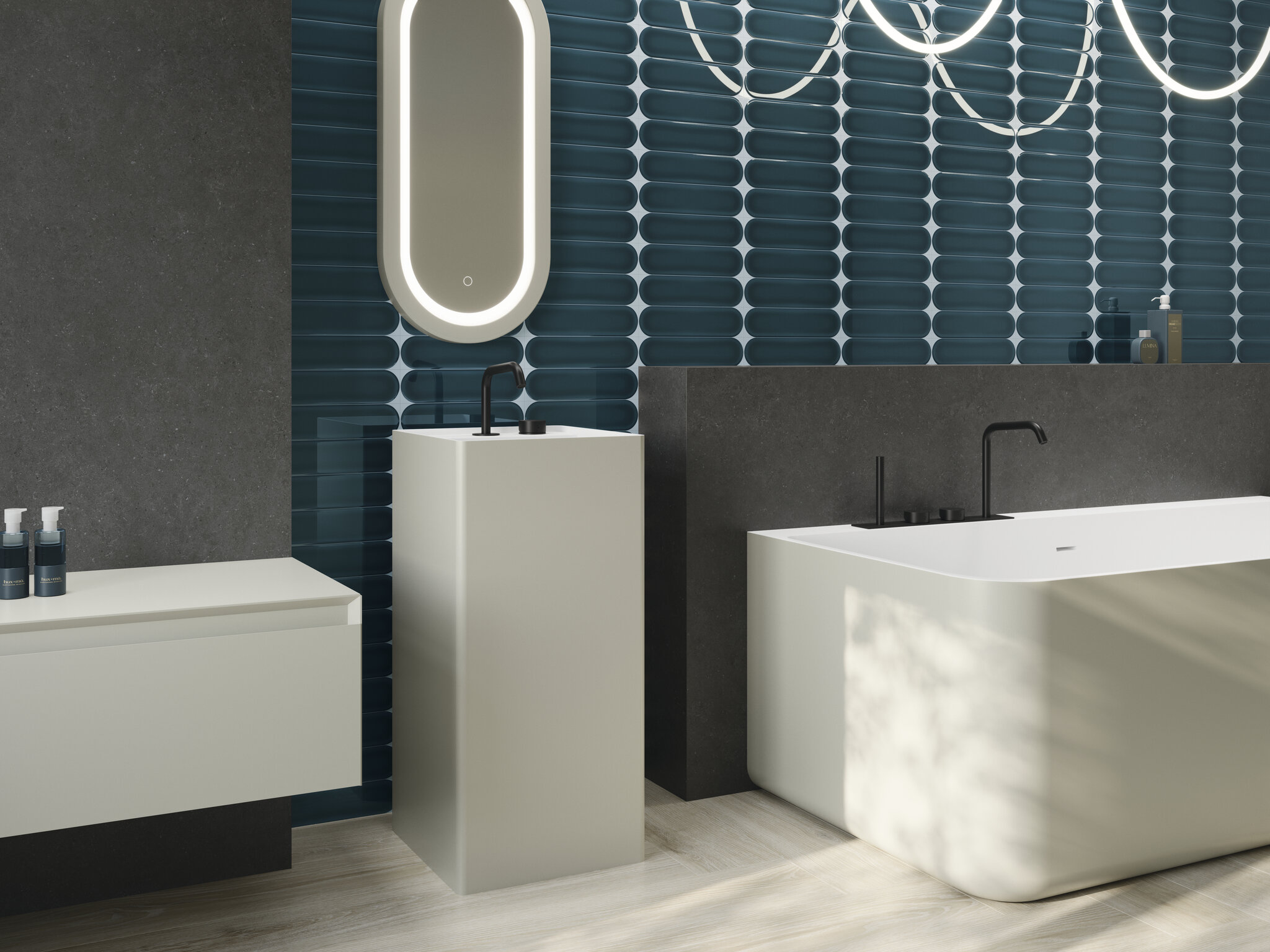 The oval shapes of this series, part of our Brick&More small format collection, stand out for their balance and decorative potential. Its non-rectified finish gives it a vintage and dynamic character, in which the oval and elongated shape of the pieces is perceived in all its splendour. Available in a single format and glossy finish, Oval offers up to six different shades, ranging from grey to green. Its versatility allows it to be installed both horizontally and vertically.