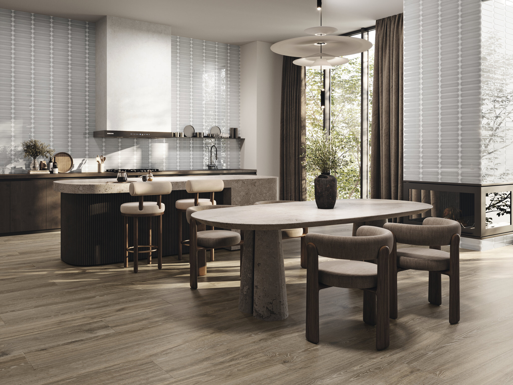 Soft curves for harmonious environments, ideal for bathrooms, kitchens and living areas.