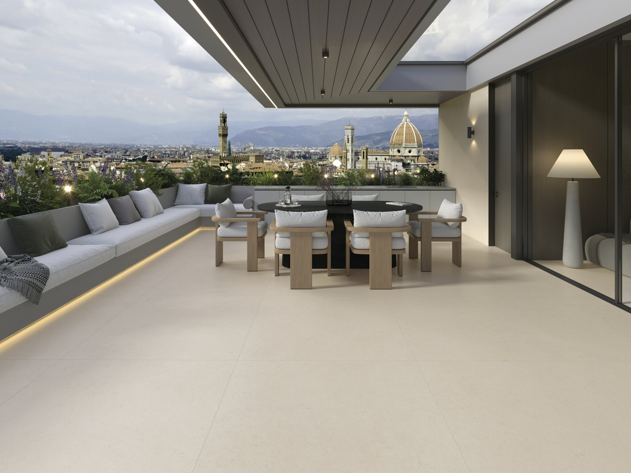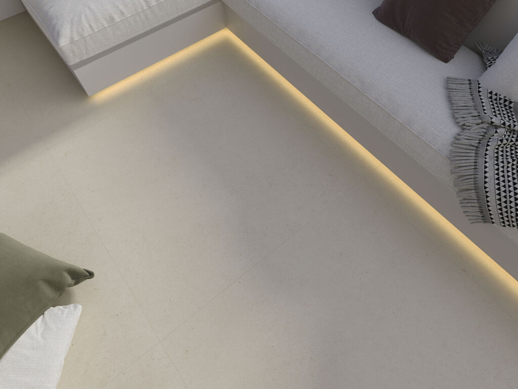 The Cara collection is born from a contemporary interpretation of limestone, capturing its most sober and balanced character. Its uniform and delicate ivory cream tone conveys a sense of visual calm that blends naturally into contemporary architecture and interior design projects. Made of rectified porcelain stoneware, Cara expands its formal and technical offering with a complete range of formats and finishes that reinforce its architectural vocation. The collection is available in 60x60, 60x120 and 120x120 in a brushed finish, as well as in 120x280, a format that integrates it into the XLIFE universe, allowing large-scale surfaces to be covered with visual continuity and minimal joints. The brushed finish provides a soft, controlled texture with a discreet tactile presence that enriches the surface without altering its mineral serenity. This quality makes it ideal for use in residential and contract projects where a natural stone look is desired with a contemporary technical response. To complete the collection, CARA also includes a 60x120 in an anti-slip finish, designed for areas where greater slip resistance is required, facilitating aesthetic continuity between interior and exterior or in wet areas without breaking the language of the project. Small graphic nuances and a homogeneous reading of the material evoke the mineral essence of limestone, offering a perfect balance between naturalness and technical precision. Cara is a collection designed for those seeking timeless architecture, bright spaces and ceramics that express elegance and sobriety. Ideal for flooring and cladding, both indoors and in projects with greater technical requirements, CARA becomes a solid and refined base on which to build contemporary spaces, where the material dialogues with light and the design is based on well-understood simplicity.