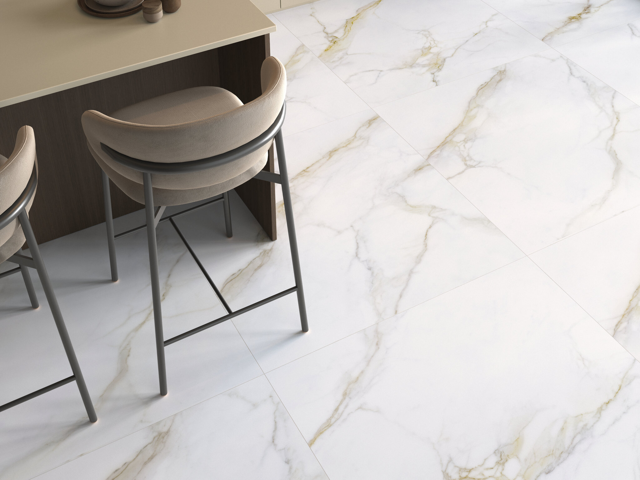 A delicate material such as marble now has a place in any space thanks to ceramic design. The large format porcelain tiles that make up the Diamond Gold series bring all the shine of a timeless material like marble with the quality of the best porcelain. With infinite applications, Diamond Gold is available in eight formats including the XLife ceramic slab 120x120 and 120x260 cm varieties. It also comes in four different finishes and smaller formats to suit all designs. Discover the new 160x160 cm format.