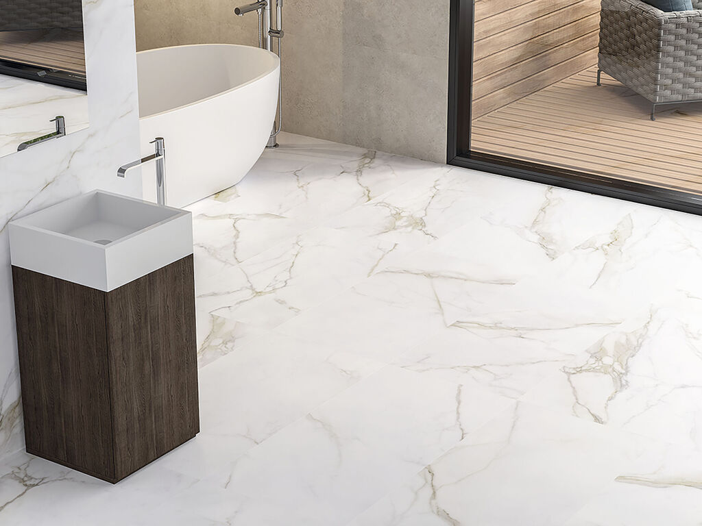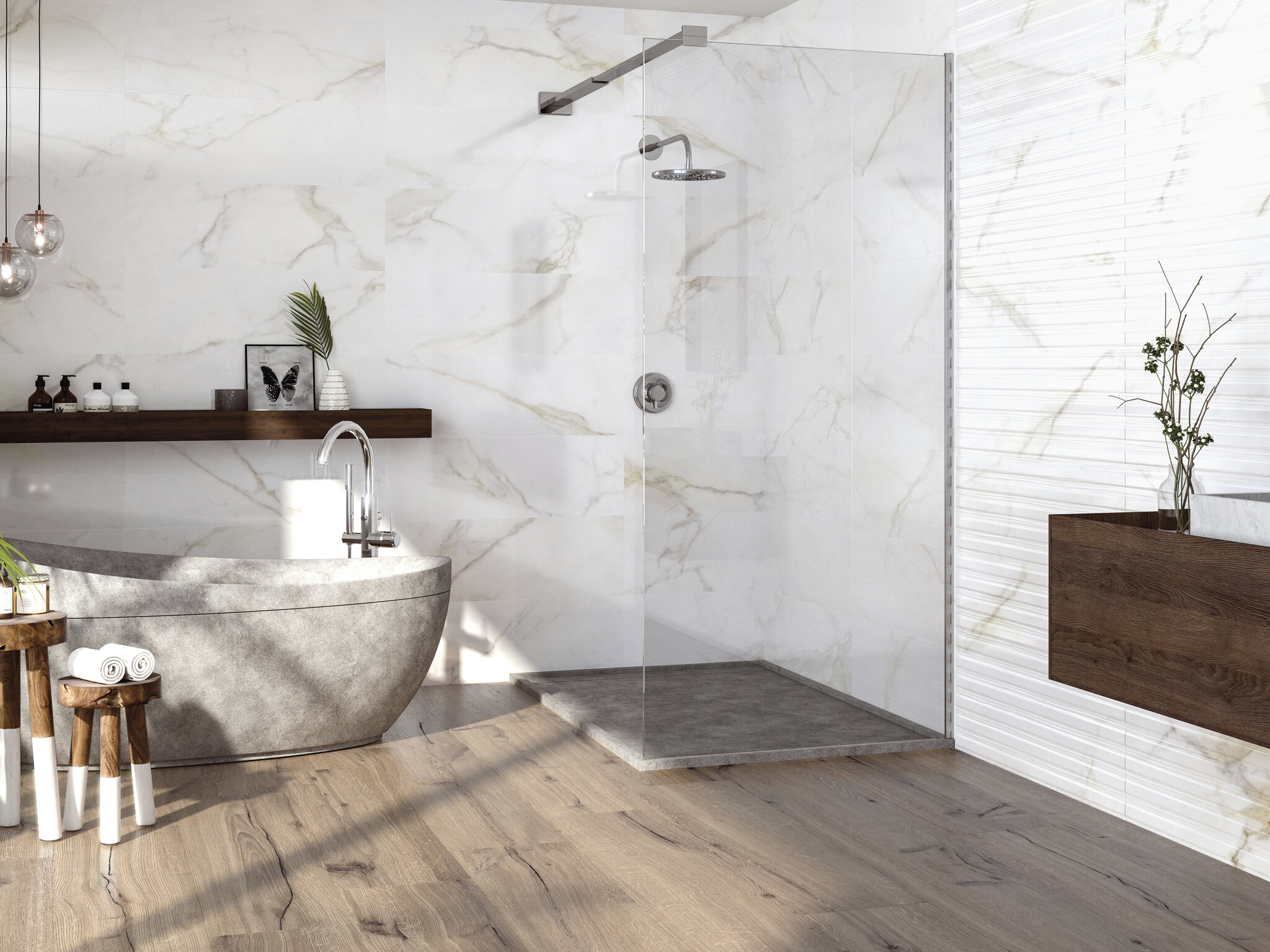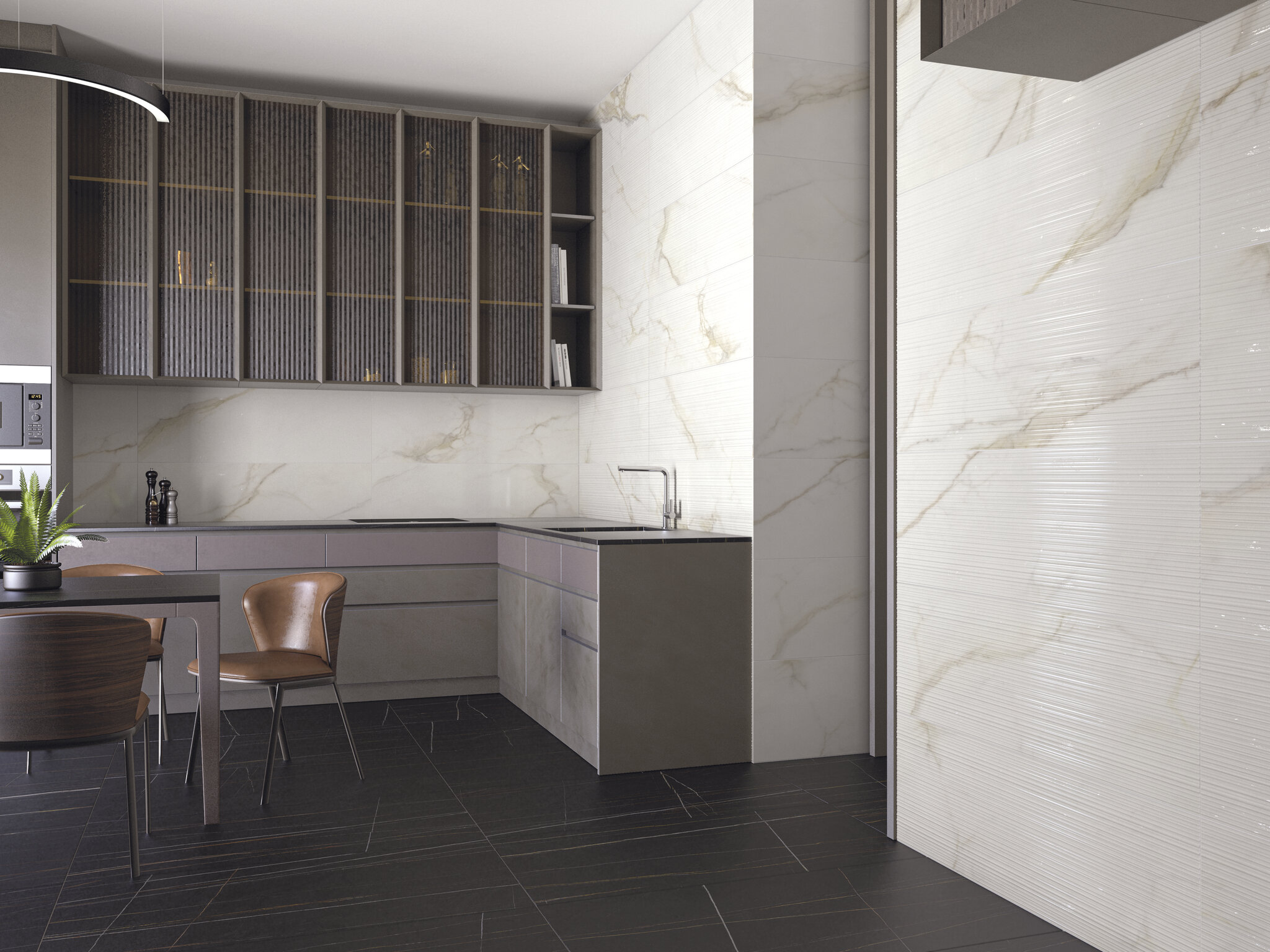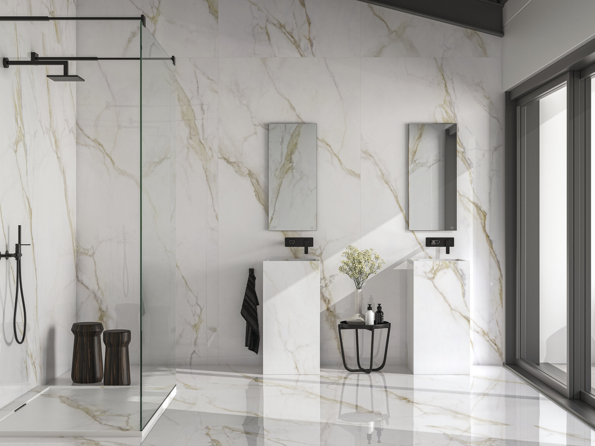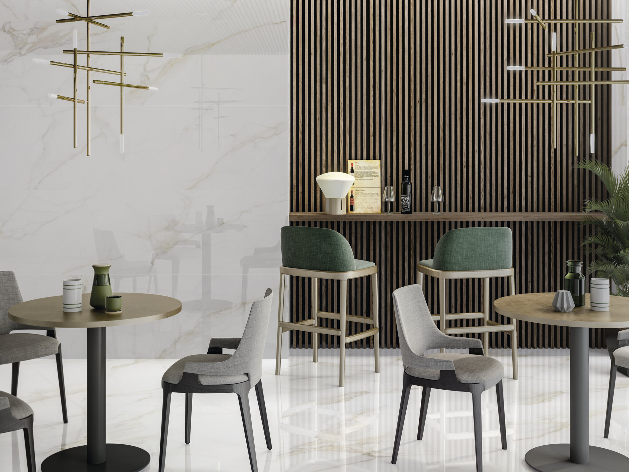 A delicate material such as marble now has a place in any space thanks to ceramic design. The large format porcelain tiles that make up the Diamond Gold series bring all the shine of a timeless material like marble with the quality of the best porcelain. With infinite applications, Diamond Gold is available in eight formats including the XLife ceramic slab 120x120 and 120x260 cm varieties. It also comes in four different finishes and smaller formats to suit all designs. Discover the new 160x160 cm format.