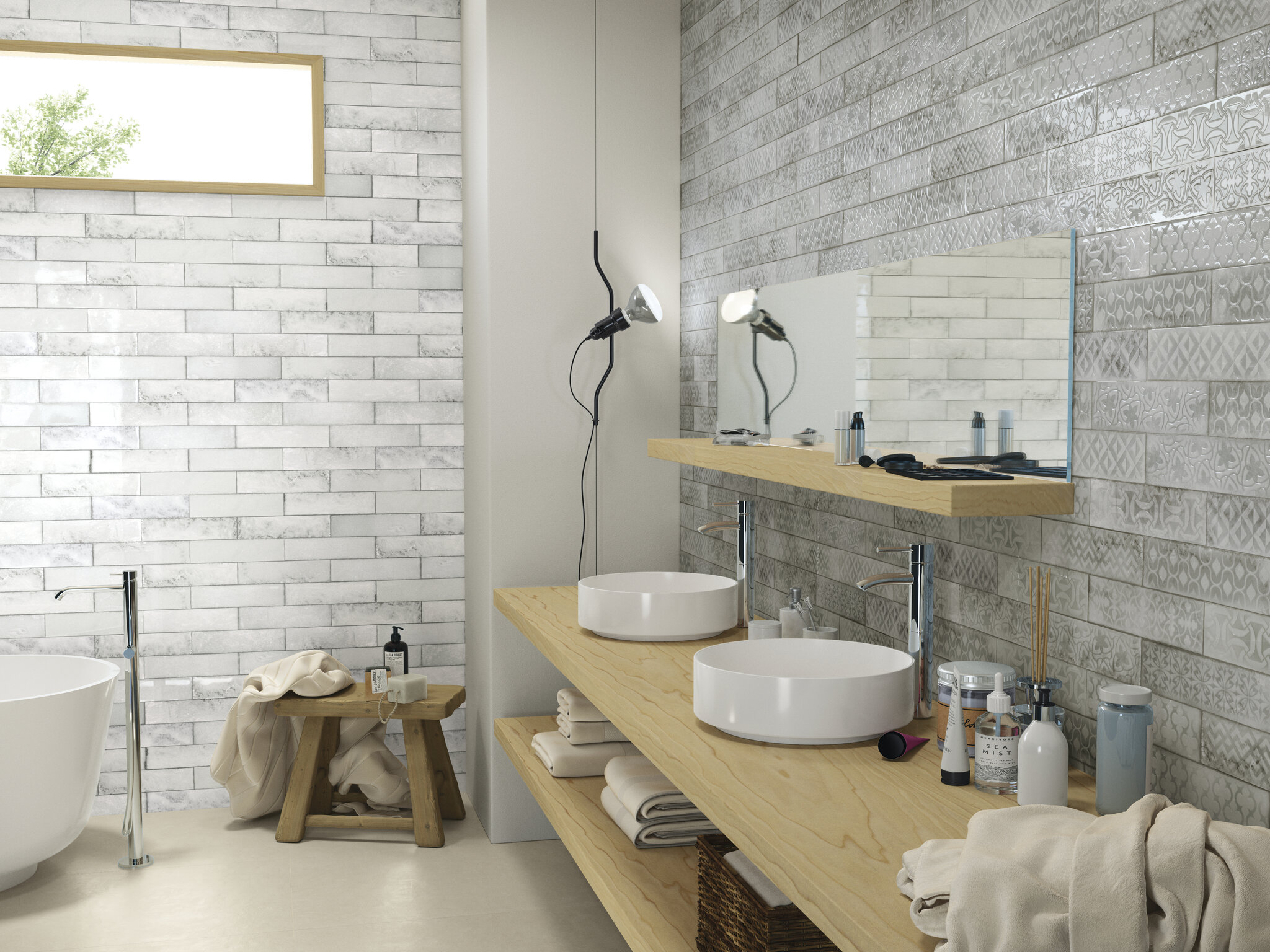 Tradition is transformed into innovation through embossed tiles. Drop does not lose sight of the fundamental essence of stoneware and becomes a collection that never goes out of fashion. The porcelain tiles that form part of Drop have a 7.5x30cm format. Ideal as a wall tile, Drop has a wide variety of colours, intricate reliefs and slight wear and tear that bring dynamism and life to any design. Personality above all else.