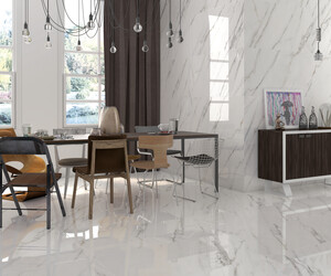 The purity and sophistication of this collection allows you to combine formats, giving dynamism to every interior. Ducale brings us closer to the unique beauty of natural stone with the qualities of the best ceramics. This large-format rectified porcelain tile has it all, from the white background to the grey of its veins, passing through an endless number of gradations between them. The subtlety of marble gives shape to ceramic slabs in up to seven formats and matt, polished and gloss finishes to enhance the beauty of all types of spaces.
