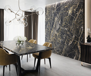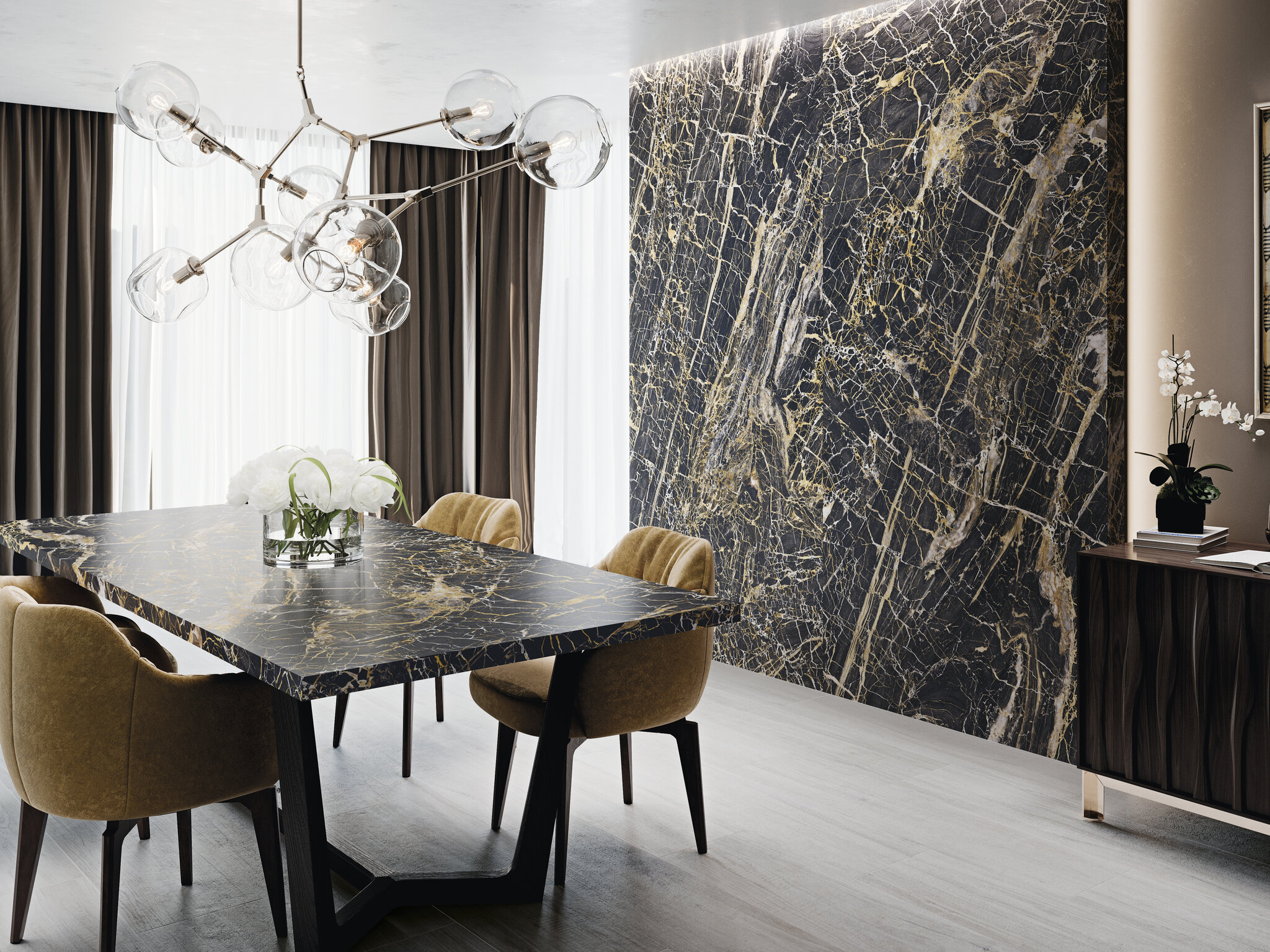 Golden is committed to design to achieve spaces that leave us stunned by large format ceramic tiles. Its characteristic golden veins break through the depth of black, the strength of white or the intensity of blue. In this collection, the most innovative materials give shape to up to four different formats, with a polished, polished grained or matt finish to suit any project.