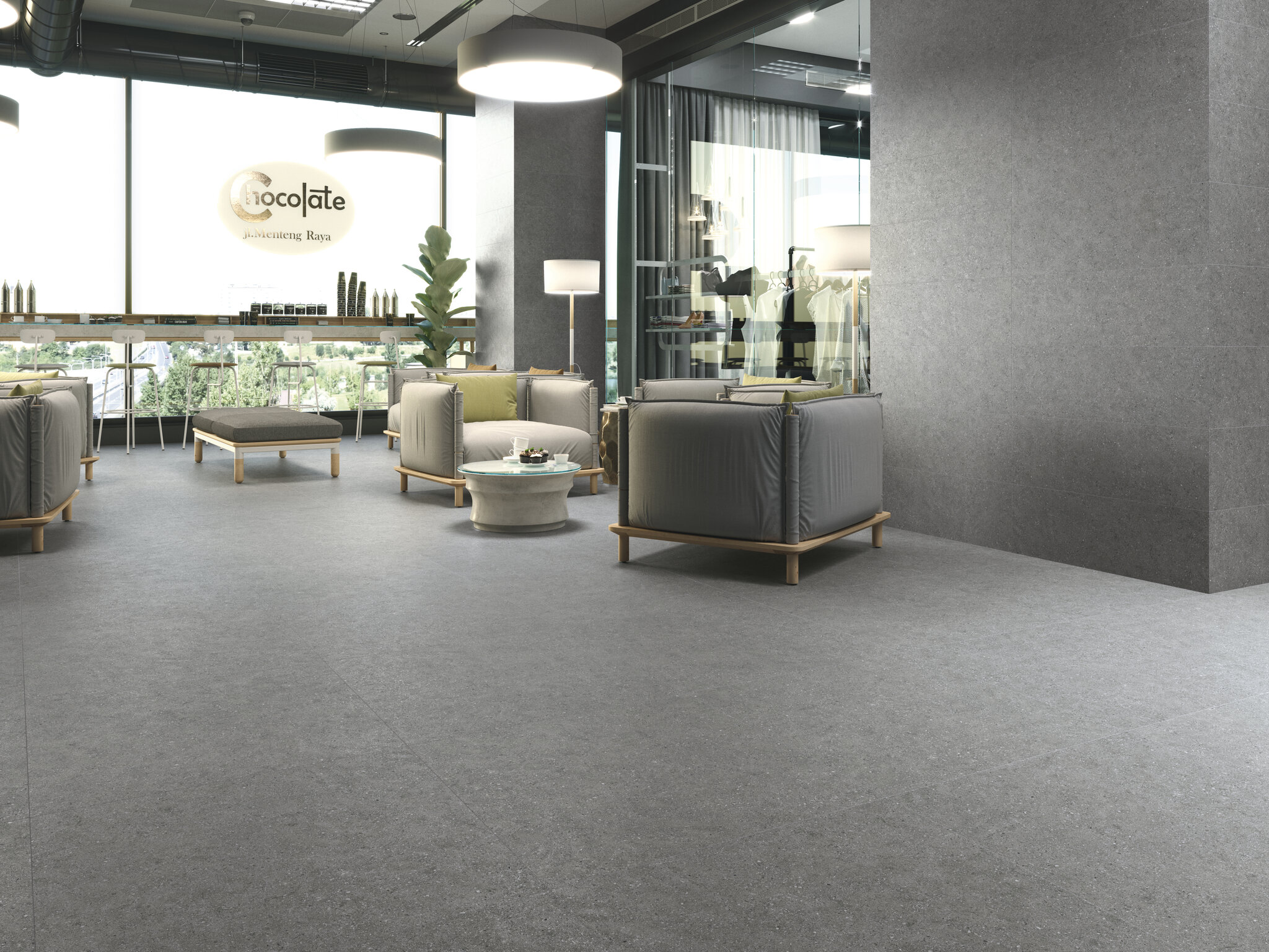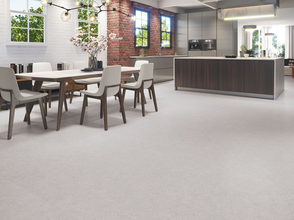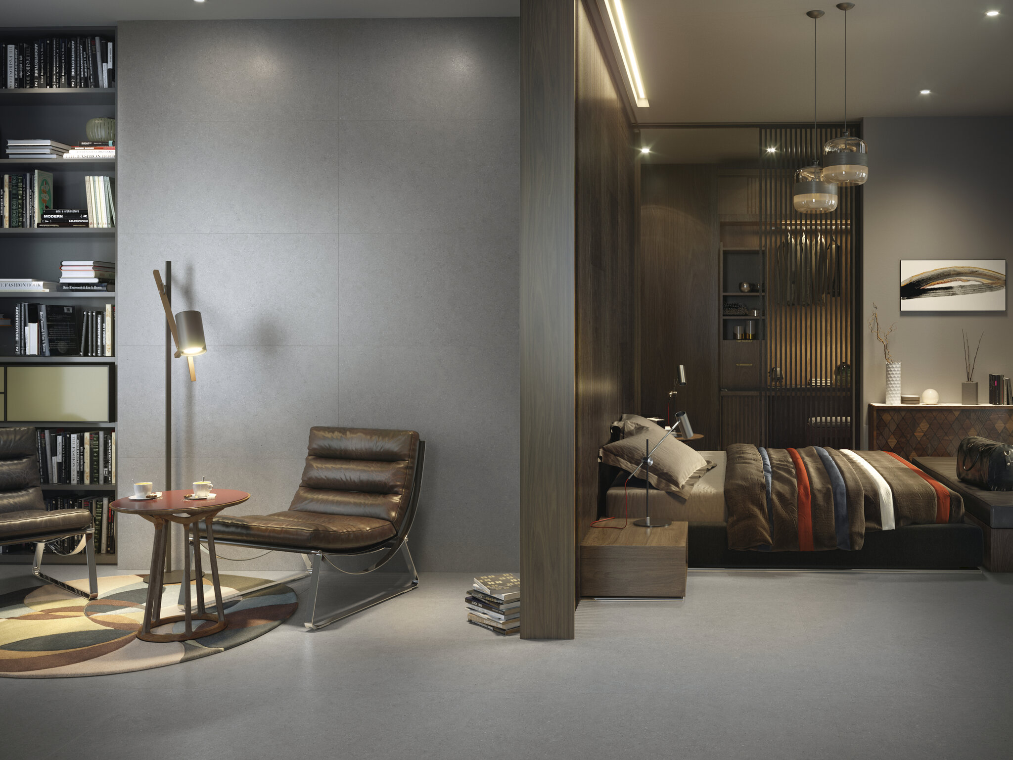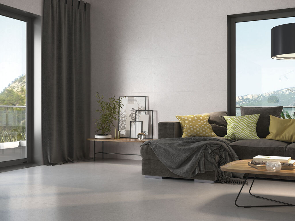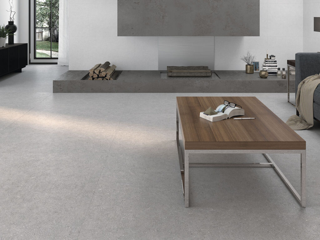 Granite effect ceramics come to Cifre Ceramica with Granite. This natural stone design series is characterised by its exceptional versatility. It is a timeless material whose surfaces perfectly imitate the intriguing textures of granites with simple structures and small fragments. Ideal for flooring and wall tiles, the Granite series is available in five porcelain formats and four shades. Its matt and slightly honed finish makes it an ideal covering that fits in with different interior design styles.