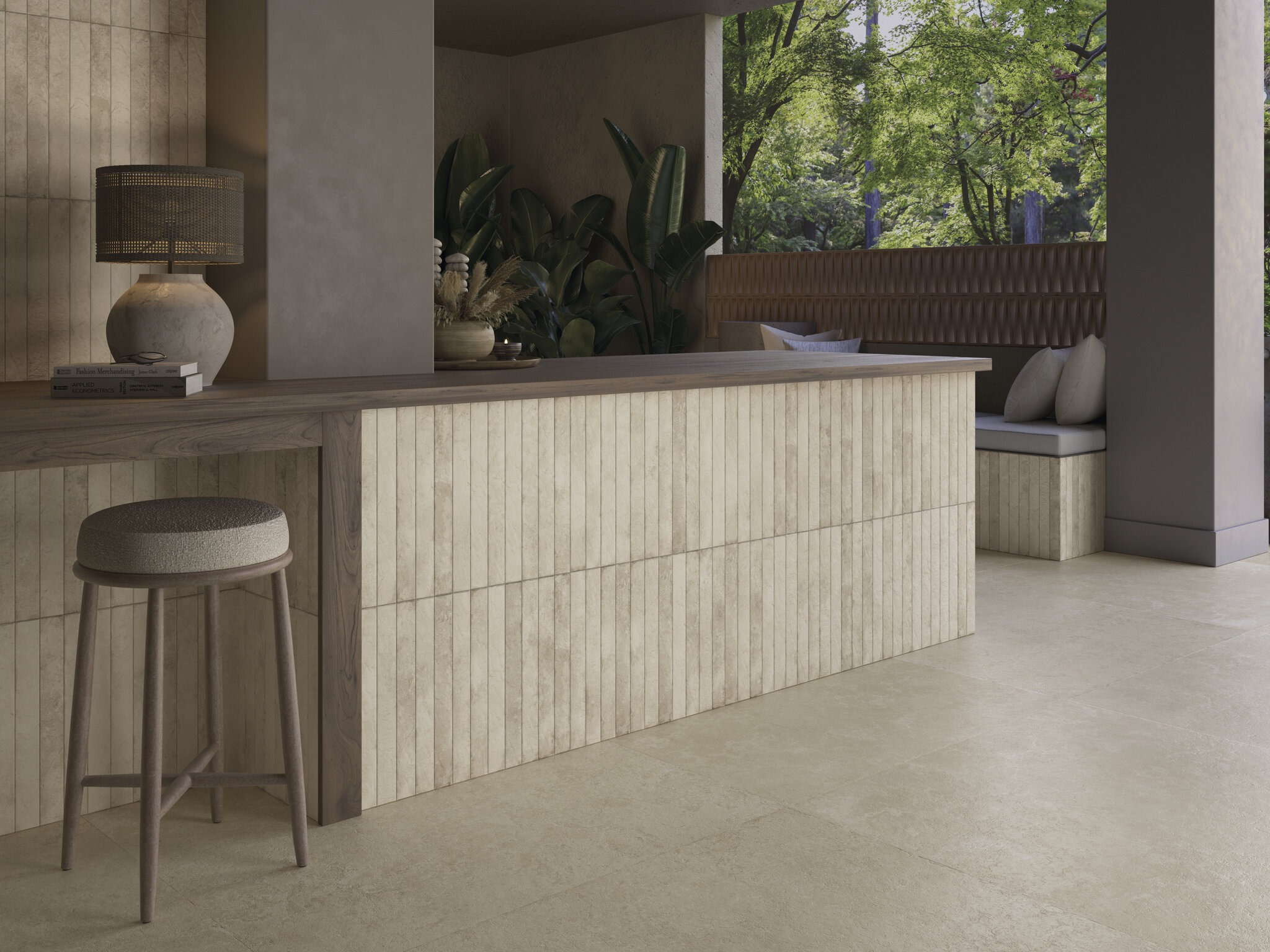 Join is a porcelain tile series designed for those seeking a matte finish and a greater effect of design continuity thanks to its rectified finish. It is part of the Brick&More small format tile collection, with a single size per piece of 4.8x45 cm. Join is available in three colors: White, Pearl, and Anthracite. Additionally, the Join Mix Matt option combines ochre tones for a more dynamic and attractive visual effect. Its neutral tones and textures perfectly reproduce the beauty of natural stone.