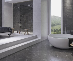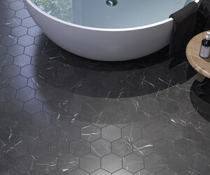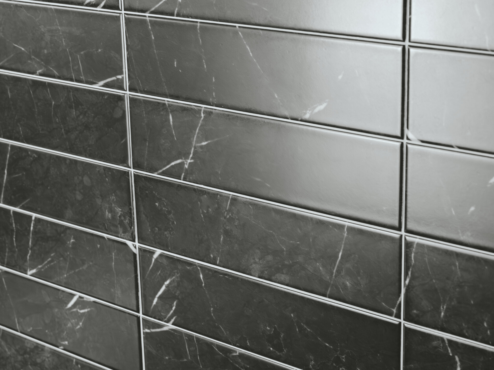 The delicate white veins that break the surface of these black marble effect tiles give it an almost fantastic charm. This material is ideal for interior decoration on floors, walls, bathrooms, kitchen worktops and ornamental pieces, as the combination of black with white brushstrokes is perfect and offers a multitude of possible aesthetic adaptations. This marble-style ceramics of elegant nobility leaves no one indifferent. It offers endless possibilities through its five formats and gloss, polished and matt finishes.
