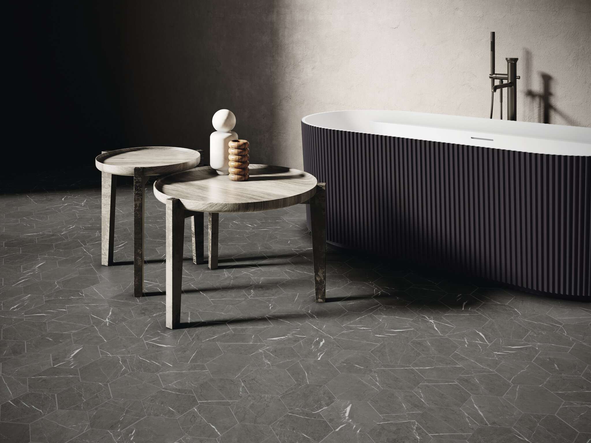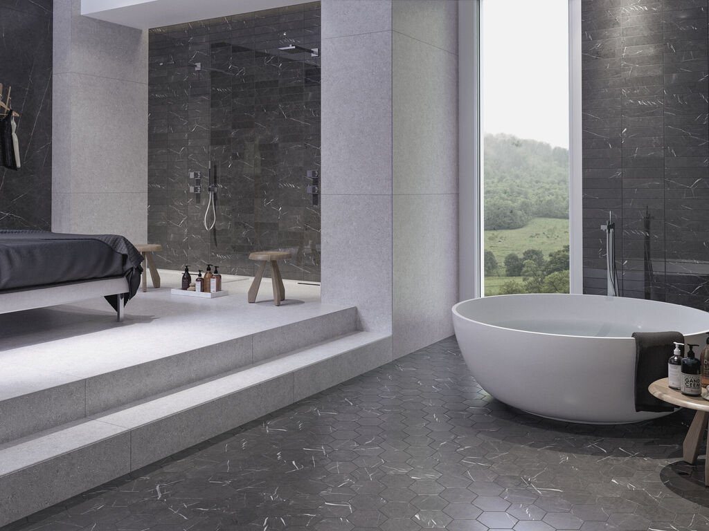 The absolute sophistication of black and the exclusive purity of white coexist in perfect balance in Marquina, a marble design ceramic collection.