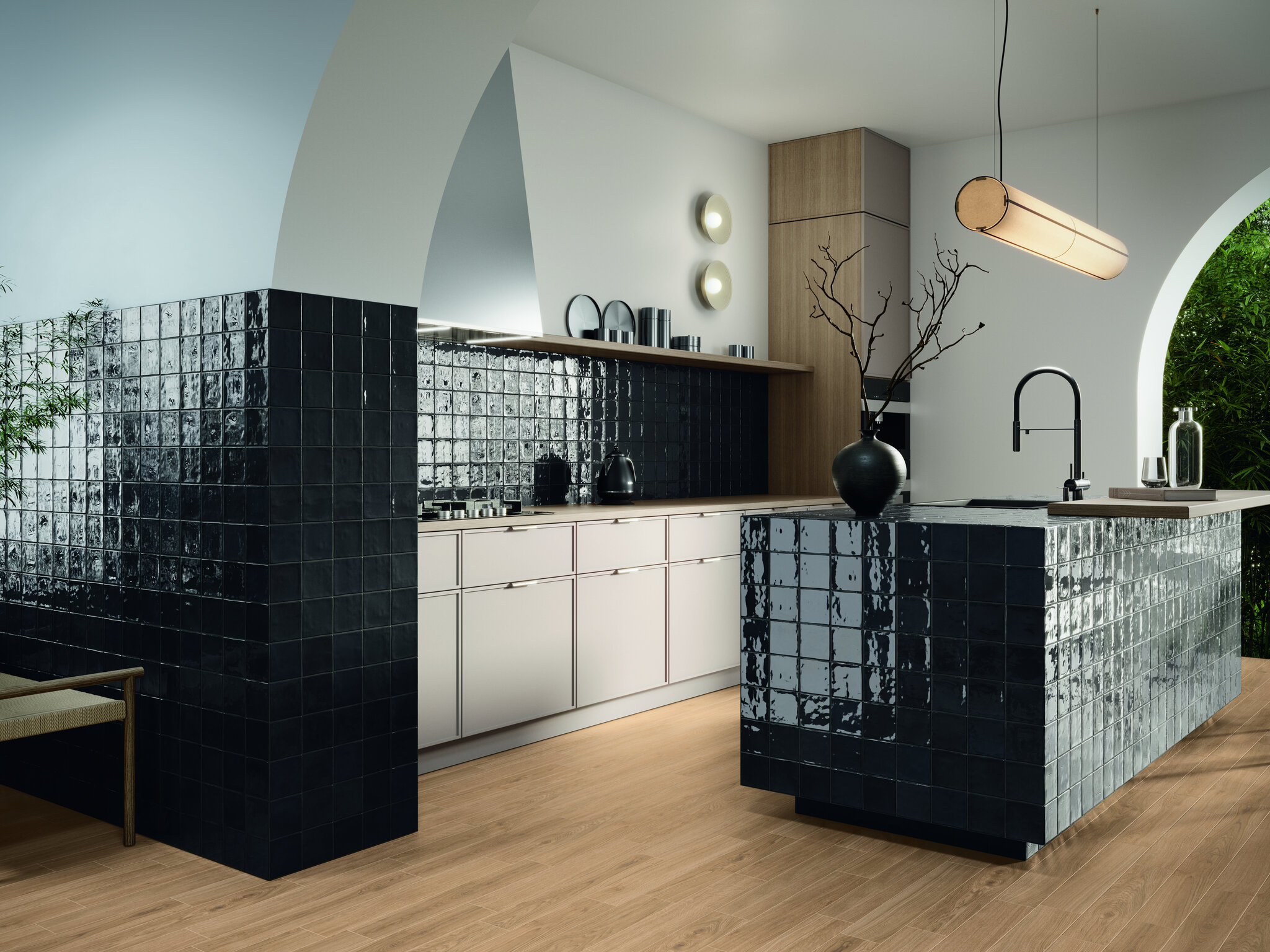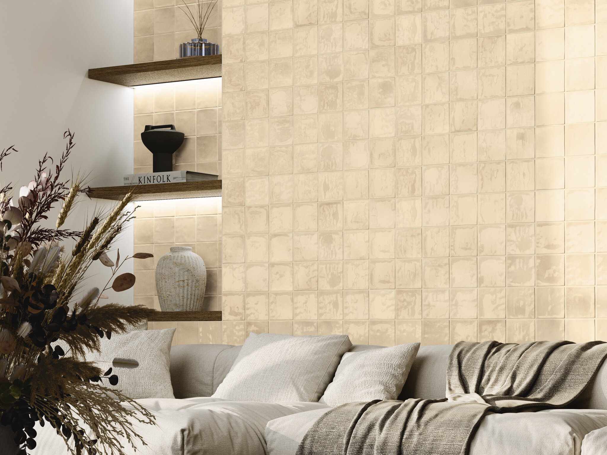Meknes is a collection that reinterprets the charm of traditional ceramics with a contemporary look. Its 10x10 porcelain stoneware pieces combine resistance and aesthetics, with a glossy finish that provides luminosity and chromatic depth. Each tile seems to capture the essence of a fire-baked pigment: intense, saturated tones full of nuances that invite emotional design. The collection consists of 12 colours — White, Sand, Caramel, Taupe, Coral, Sky, Turquoise, Mint, Marine, Ocean, Forest and Black — each with a unique character that allows you to create compositions rich in contrast or harmony. Perfect for coverings that seek personality, warmth and a touch of craftsmanship, Meknes finds its place in both contemporary interiors and classically inspired spaces. Its compact format and glossy finish enhance every colour, every joint, every texture. A ceramic designed to excite.