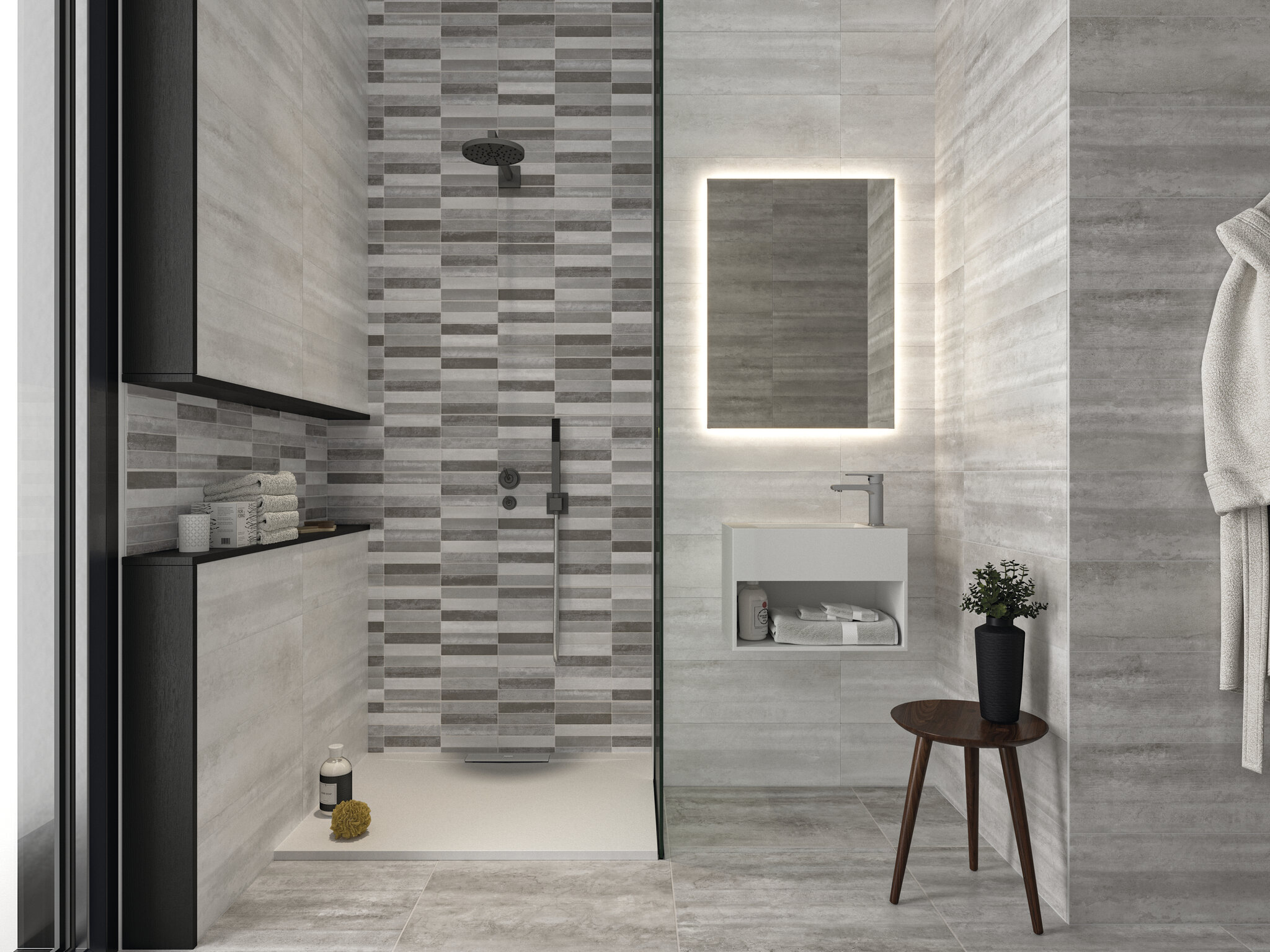 The tiles in the Oxygen collection for walls innovate on the classic design thanks to their slightly rusty appearance. Its white body version comes in five neutral colours: white, grey, beige, anthracite and mocha, in a matt finish that reinforces its natural appearance. The Stack Cold and Warm embossed options stand out for their decorative capacity. In its porcelain flooring version, the collection comes in beige, white and grey shades with technical specifications adapted for more challenging environments.